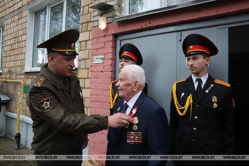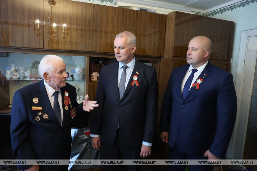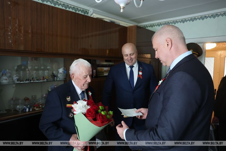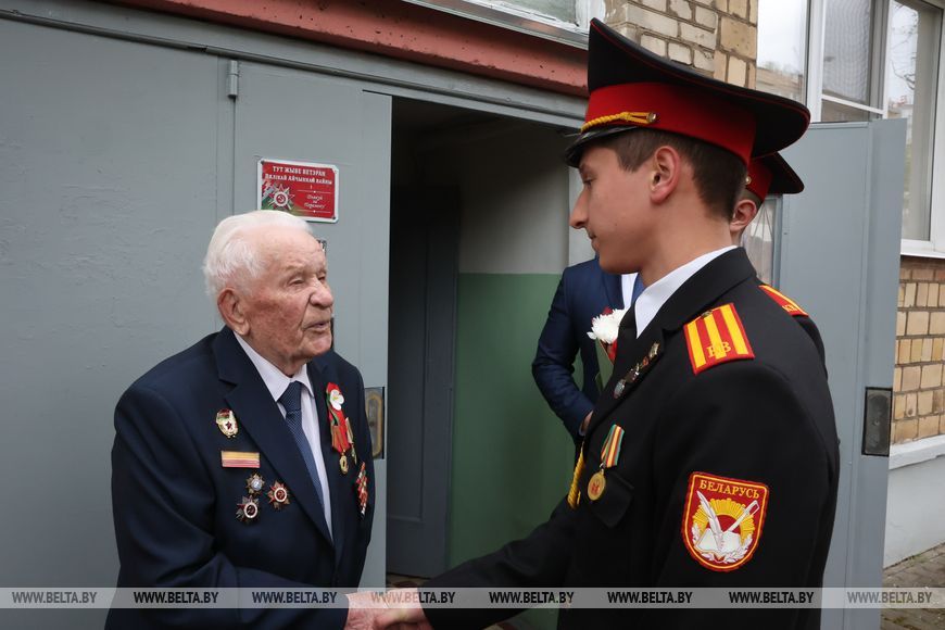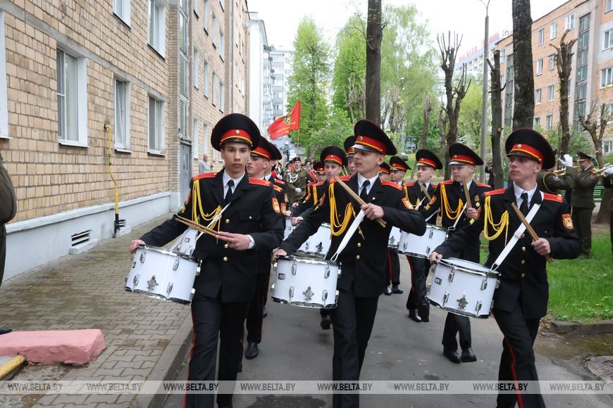 Оркестр, группа барабанщиков, парадный марш - в Могилеве ветеранов Великой Отечественной войны торжественно поздравили с Днем Победы. Теплые слова, награды и подарки очевидцы событий 80-летней давности принимали от председателя Могилевского горисполкома Сергея Черткова, военного комиссара Могилева и Могилевского района Максима Власова и молодежи.