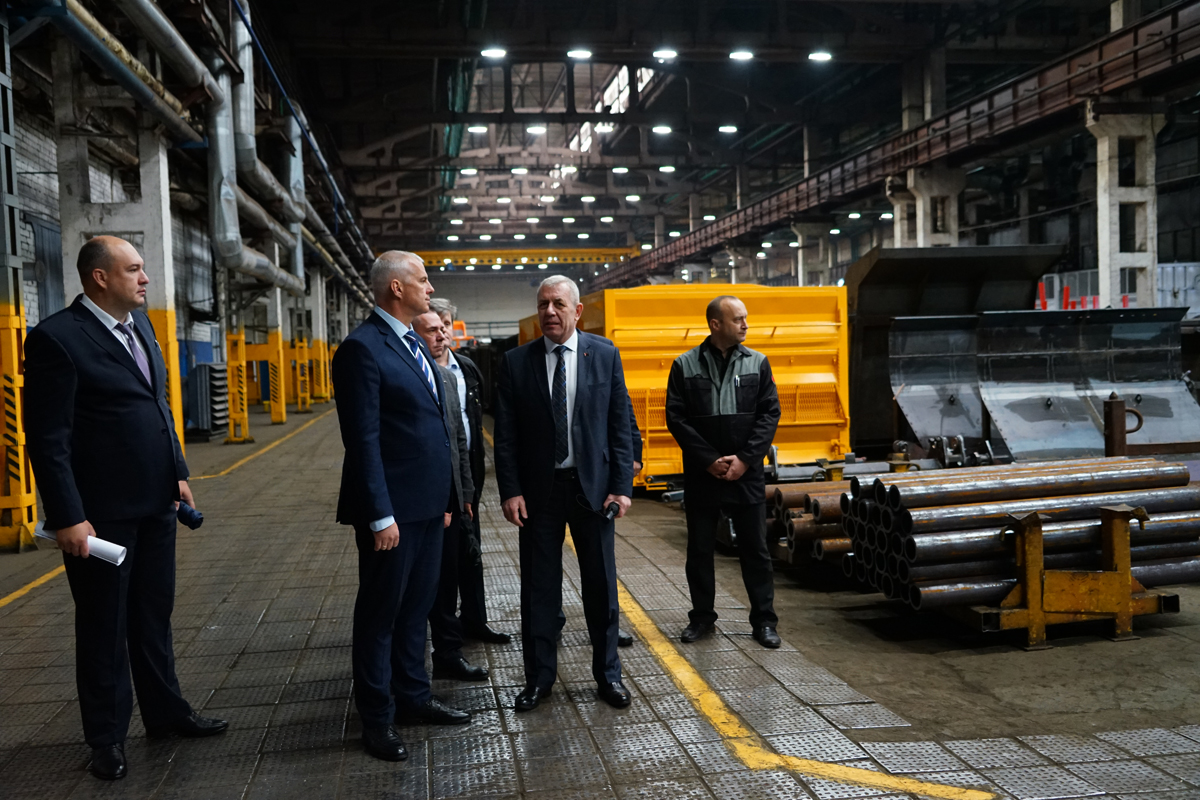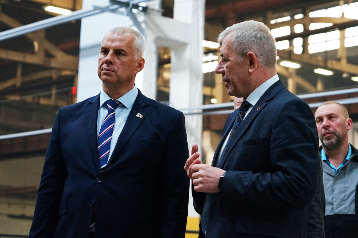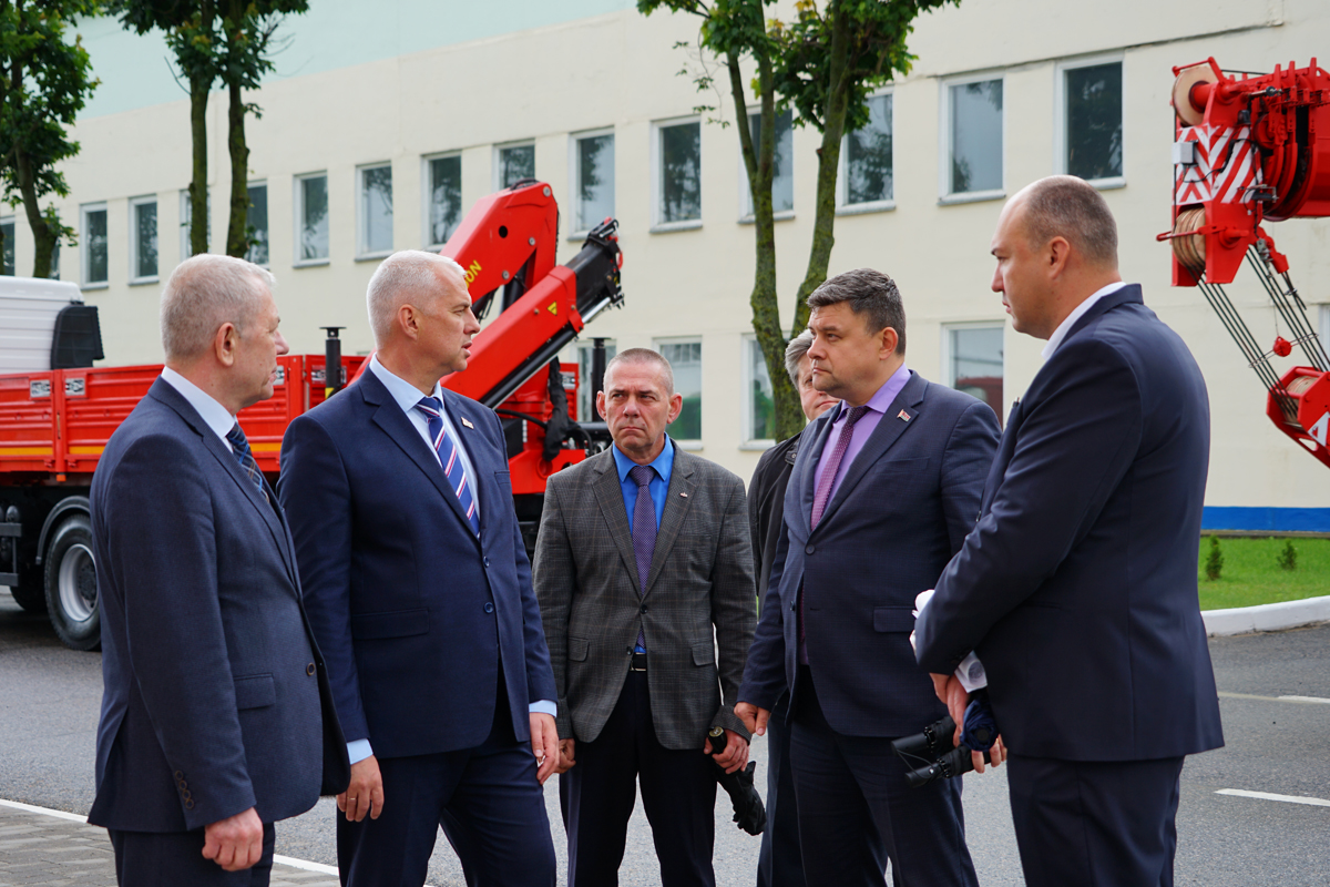 Председатель горисполкома Сергей Чертков сегодня посетил завод «Могилевтрансмаш» ОАО «МАЗ» - управляющая компания холдинга «БЕЛАВТОМАЗ». Директор предприятия Василий Хомяков провел экскурсию по производственным площадям, рассказал о промышленном потенциале одного из ведущих машиностроительных предприятий Беларуси, которое под брендом «МАЗ» выпускает широкую линейку автокрановой, коммунальной, самосвальной, специальной и прицепной техники.