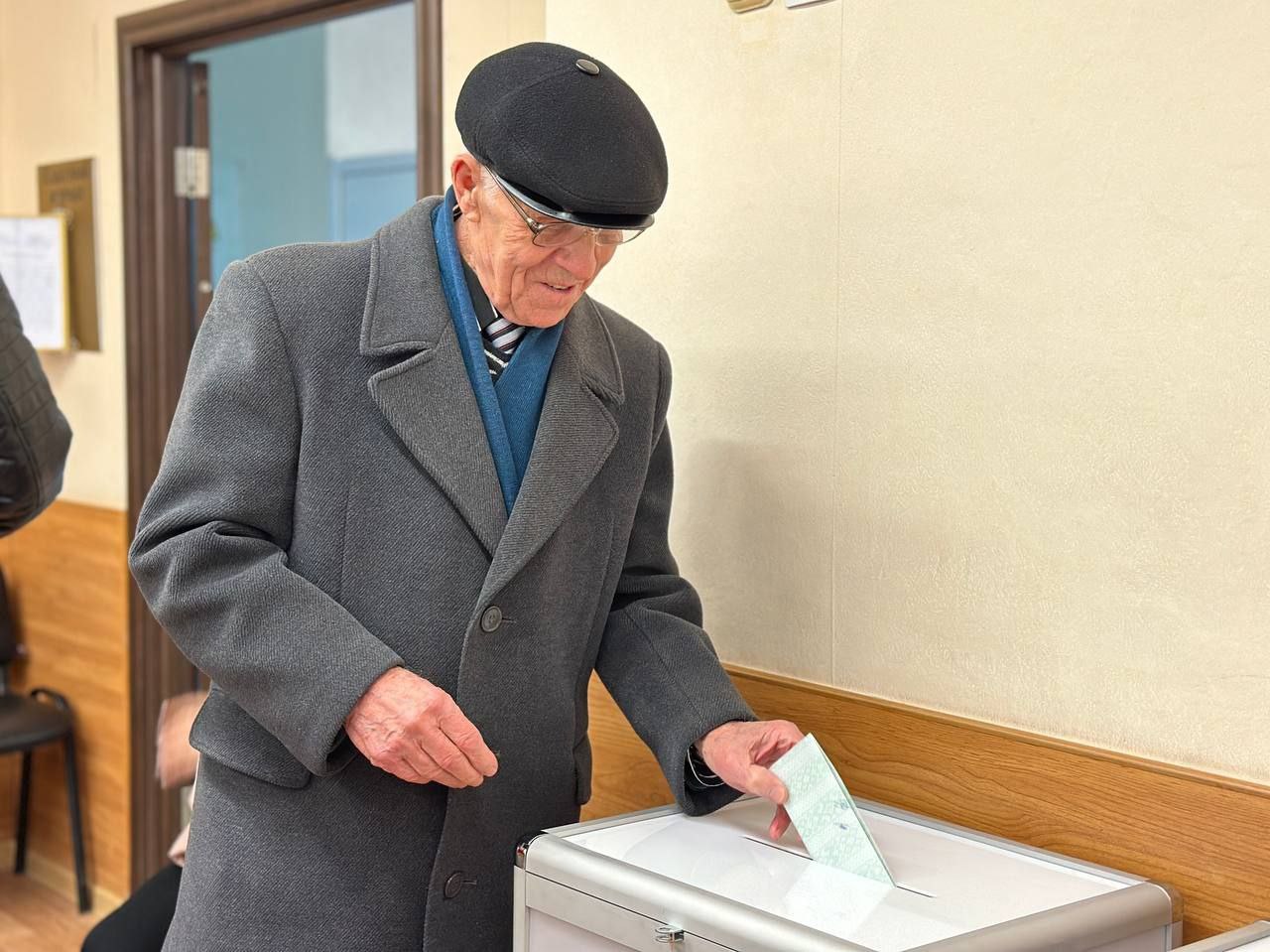 Ветеран труда, бывший узник фашистского концлагеря Владимир Штукарь сделал свой выбор на участке для голосования № 38, который разместился в гимназии № 2 Могилева.