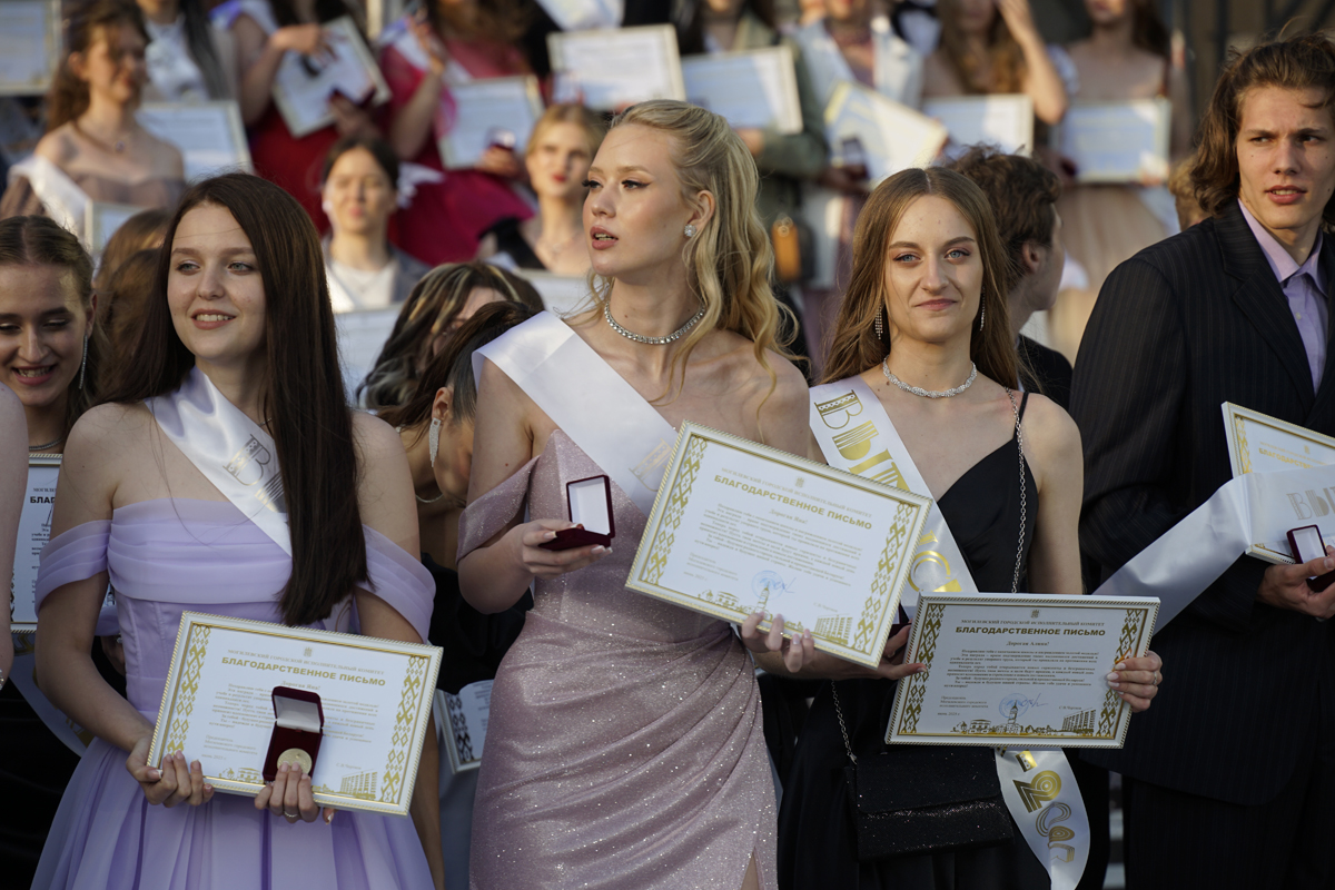 В торжественной обстановке 131 выпускнику золотые и серебряные медали вручил председатель Могилевского горисполкома Сергей Чертков. Пятничный день стал для них итогом многолетнего труда, настойчивости и веры в свои силы. За спиной у каждого - победы, упорные тренировки, интеллектуальные битвы, сцена, лаборатории, спортзалы, а еще - поддержка учителей и родителей.