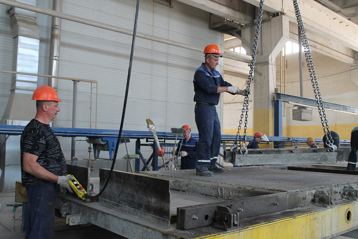 Так, в 2024 году здесь установили новую кассетную форму для производства внутренних стеновых панелей, плит перекрытия, что положительно сказывается на качестве и скорости производства. Появились и импортозамещающие формовочные паллеты для производства плит. Их модернизация позволяет достигнуть зеркальной поверхности изделий, сократить время и расходы на доводку отделочных работ.