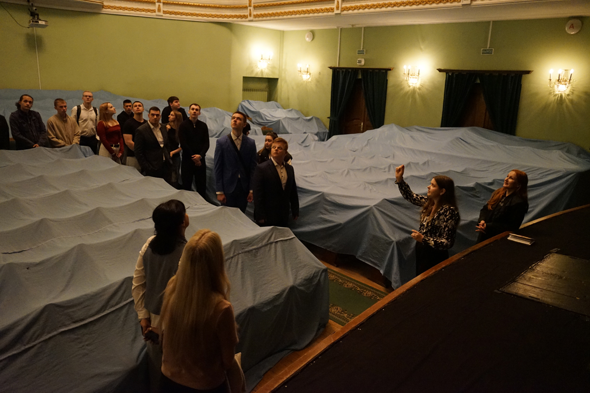 А еще накануне диалога парни и девушки познакомились с историей областного драматического театра во время экскурсии. Оказывается, зрительный зал учреждения культуры до сих пор остается одним из лучших в Европе по уровню акустики. И, несмотря на его малую вместимость (всего 307 мест), сцена здесь очень просторная, а высота потолков достигает 14 метров.