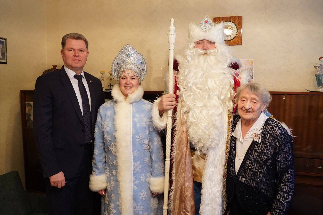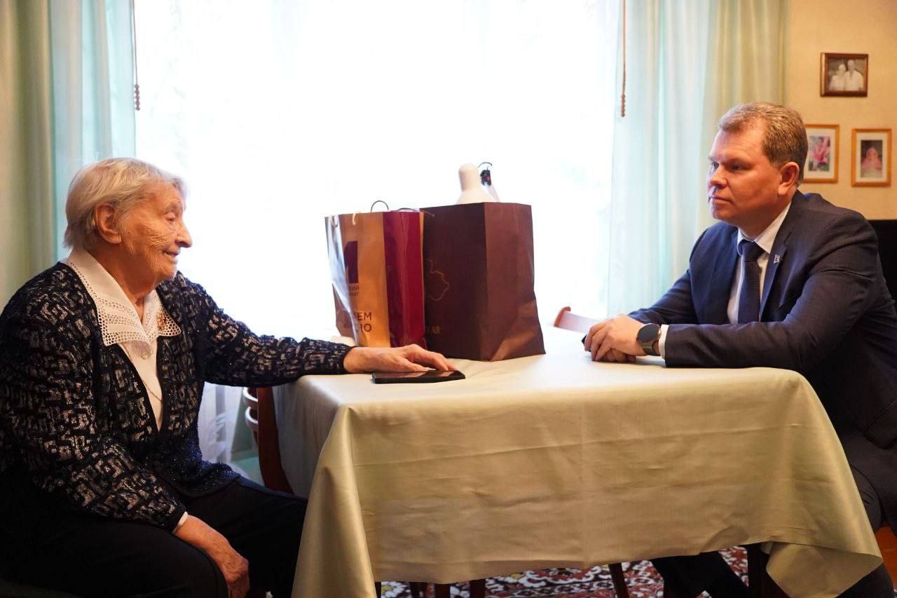 Александр Студнев тепло поздравил Надежду Евстратьевну с приближающимися праздниками, пожелал крепкого здоровья, долголетия, а также передал подарки от предприятий города.