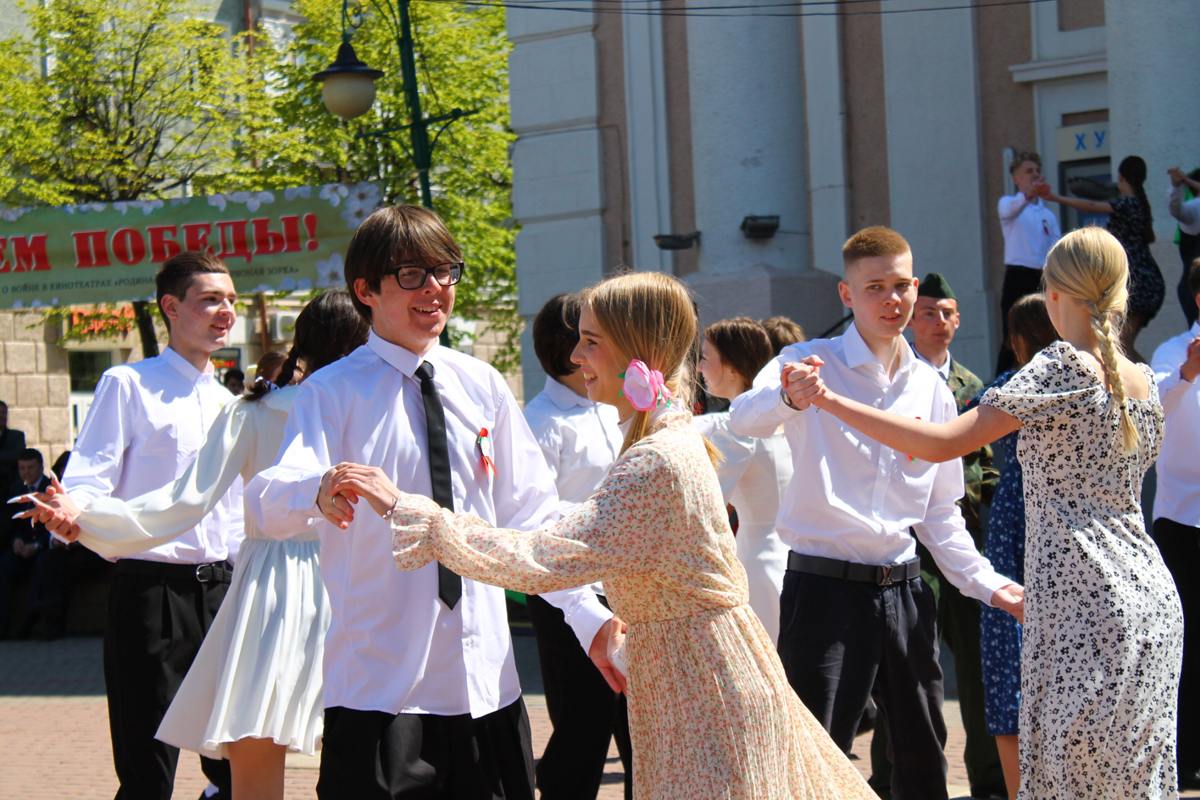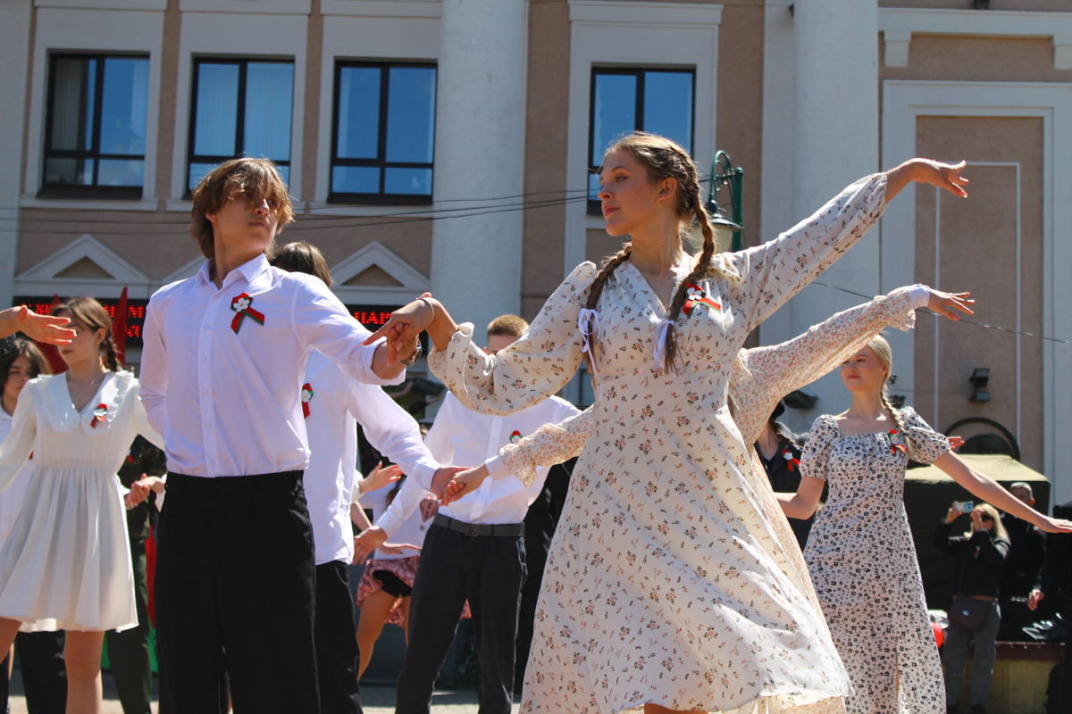 На площади Звезд старшеклассников собрала патриотическая акция «Вальс Победы».