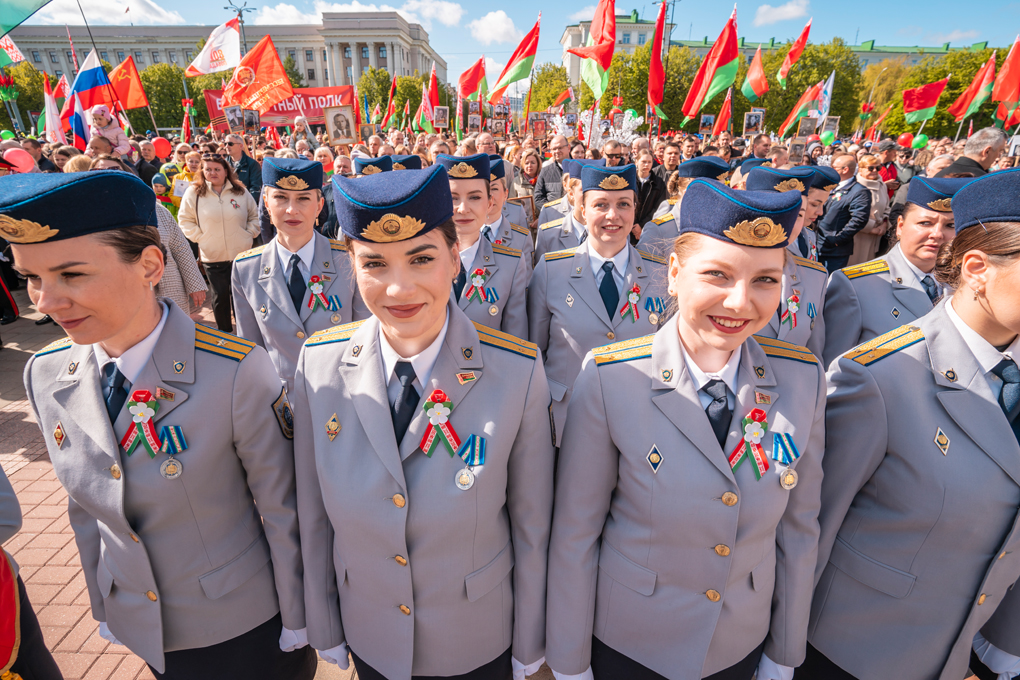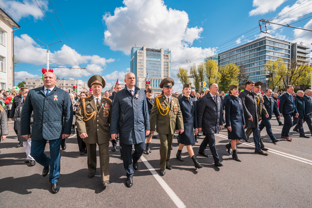 В городе на Днепре праздничный день начался с парада наследников Победы и торжественного марша парадных расчетов Могилевского гарнизона. Впервые в строю были воспитанники Могилевского специализированного лицея МВД, студенты военной кафедры БРУ и женская коробка - 24 представительницы УСК по Могилевской области. В качестве зрителей - ветераны, представители исполнительной власти области и города, силовых структур, общественных организаций, трудовые коллективы и молодежь.