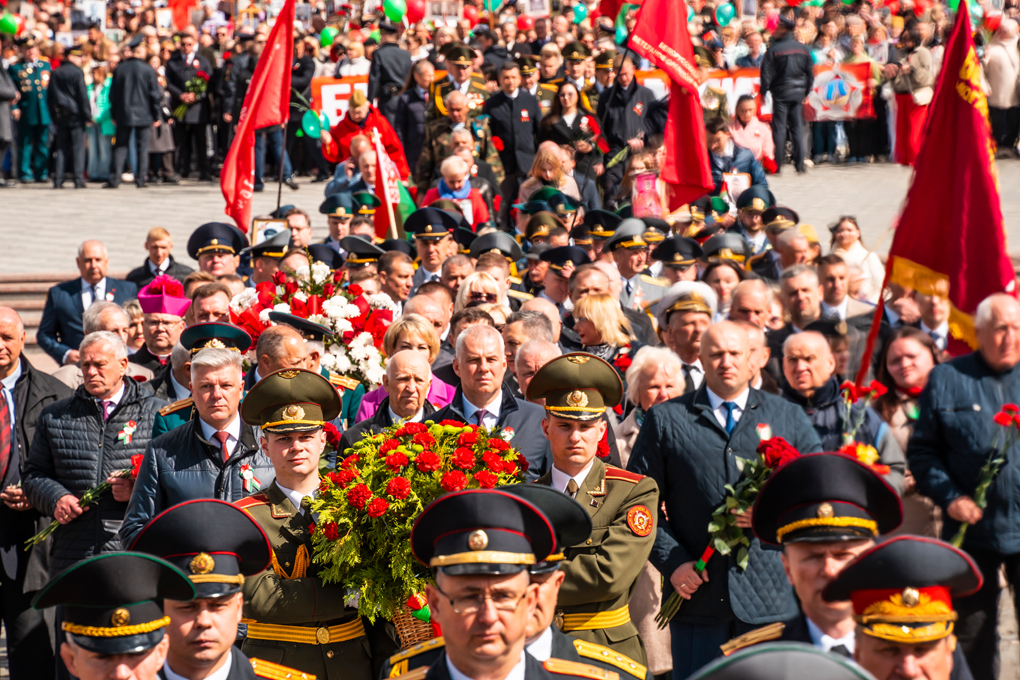 Шествие завершилось патриотической акцией «Народное возложение»: могилевчане несли цветы к Вечному огню, чтобы почтить память советских воинов, сражавшихся за освобождение Беларуси.