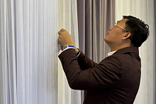 «Very beautiful! Очень красивые!» — именно так отреагировала прекрасная половина делегации из Мьянмы, увидев наши гардинные полотна.