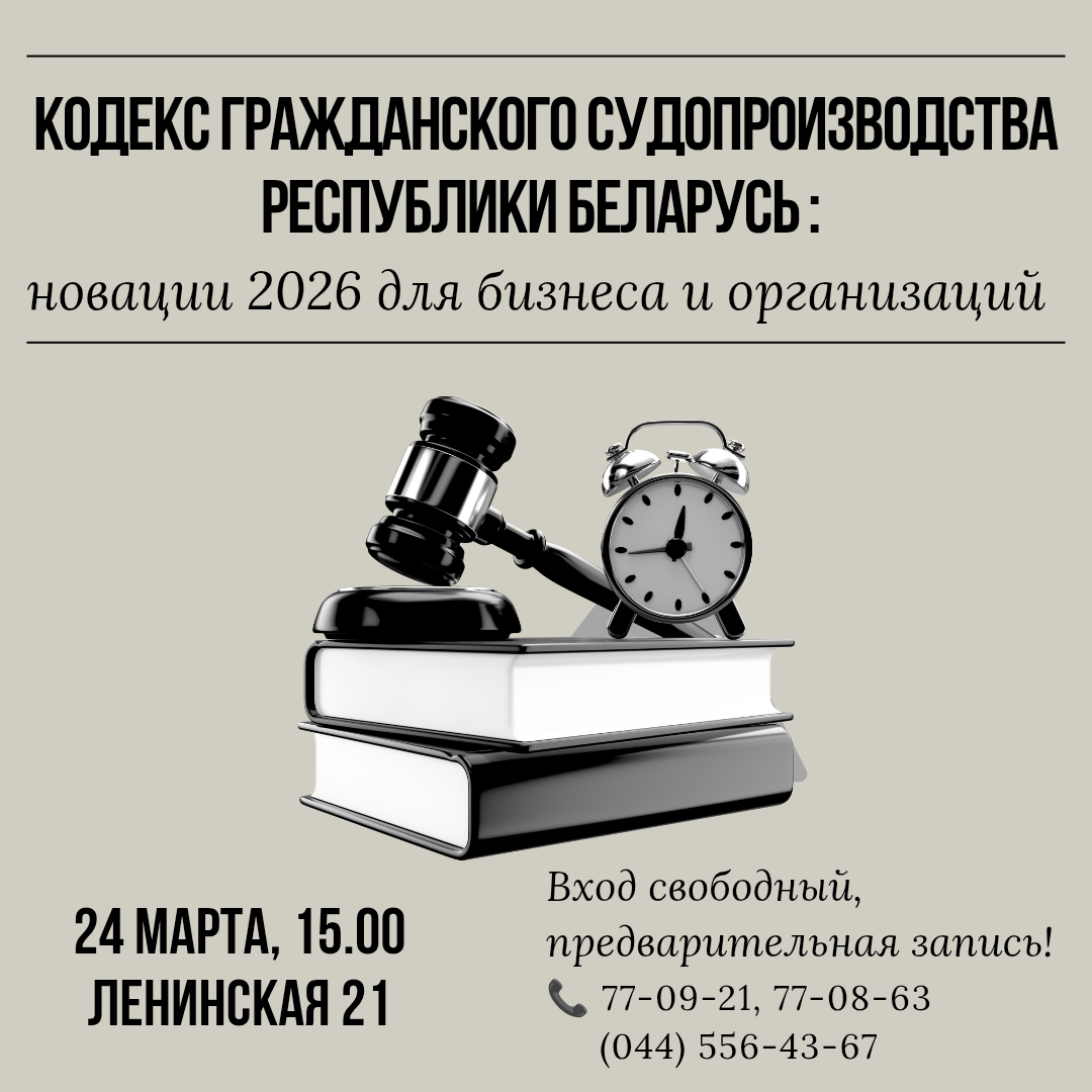 Могилевский городской центр развития малого предпринимательства 24 марта проведет семинар на тему «Кодекс гражданского судопроизводства Республики Беларусь: новации 2026 для бизнеса и организаций».