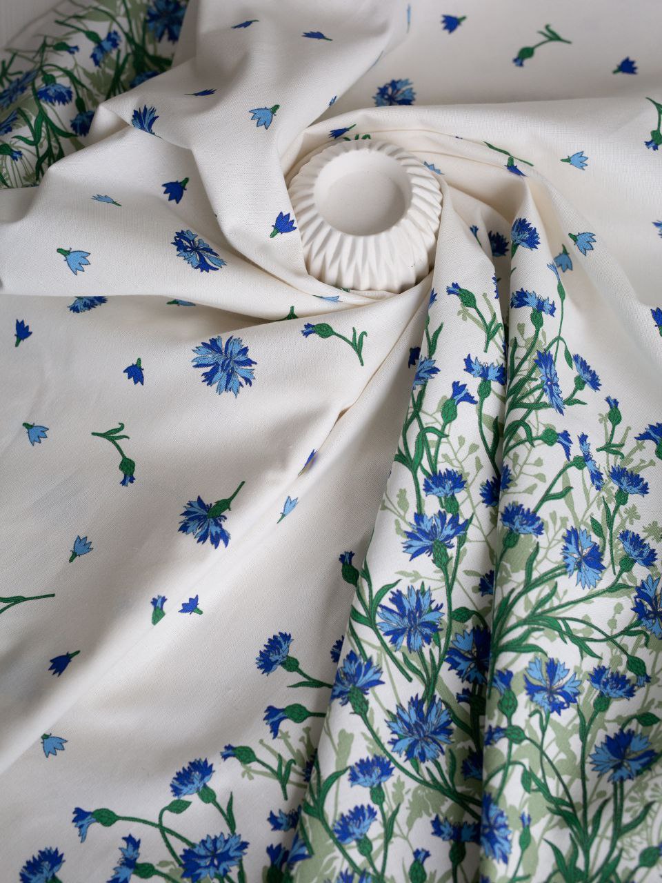 ОАО «Моготекс» выпустило настоящую белорусскую скатерть. Нежное полотно, украшенное небесного цвета васильками, словно сошедшими с летней поляны, станет изюминкой любого праздничного стола.