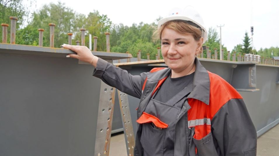 После того как все элементы мостовой металлоконструкции подготовлены и собраны в один элемент, наступает еще один этап работ — покраска. Ею занимается отдельная смена, руководит которой Татьяна Сапранкова.