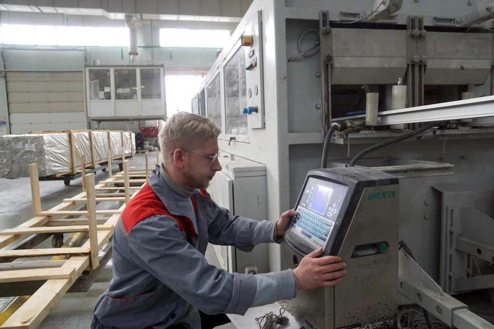 Машинист экструдера Евгений Москалев контролирует экструзионные линии: от запуска до выхода готовой продукции. Работает более 5 лет. Говорит, что все устраивает.