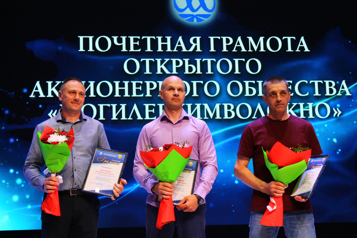 Во время торжественного мероприятия почетные грамоты и благодарности от администрации родного завода, концерна «Белнефтехим», облисполкома и горисполкома, областного и отраслевого профсоюзов получили лучшие работники, которые своим трудом вносят вклад в развитие градообразующего предприятия. Они – честь и гордость ОАО «Могилевхимволокно».