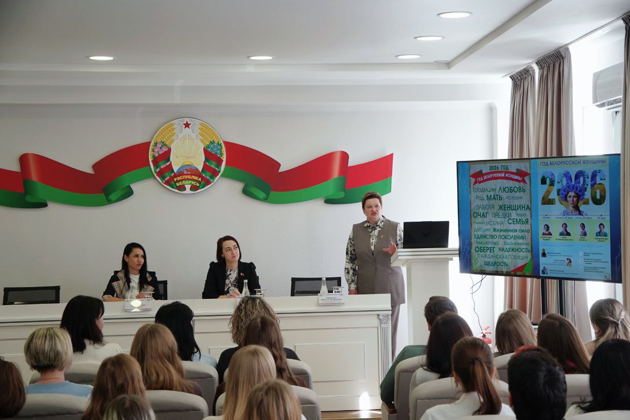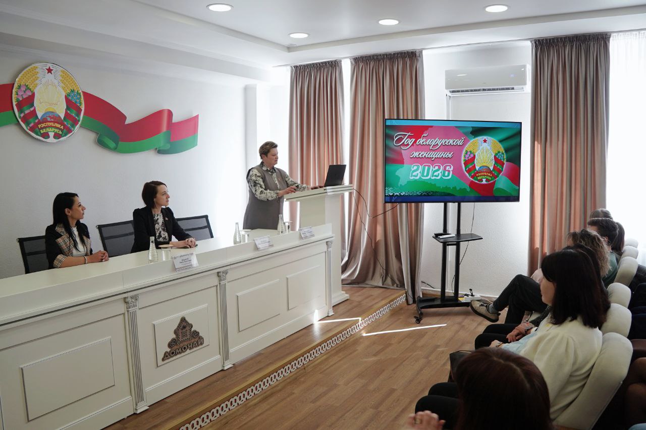 Повод для встречи с коллективом, который здесь преимущественно женский, – обсуждение роли женщины в современной Беларуси, ее вклада в семью, экономику и историю страны, что особенно символично в Год белорусской женщины.