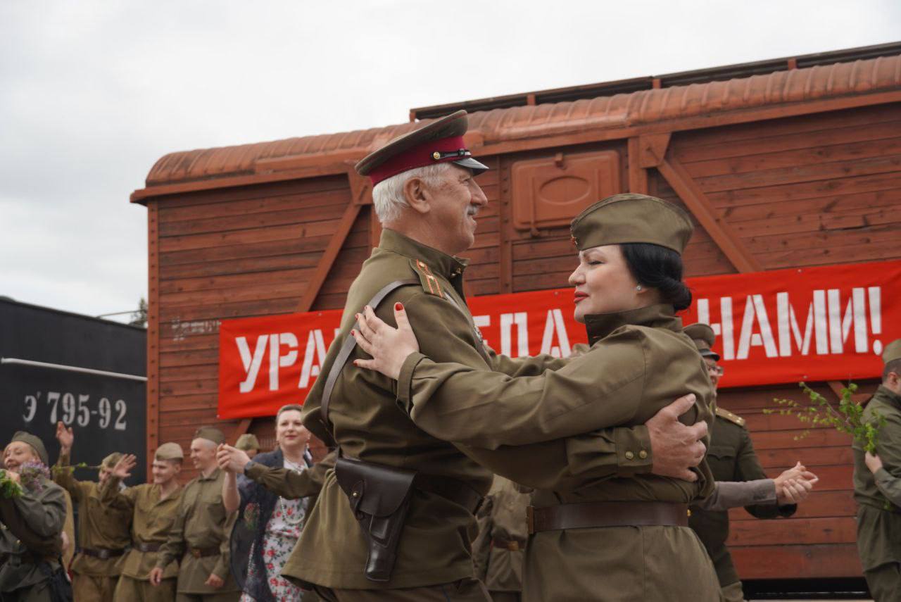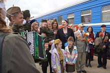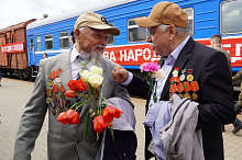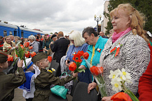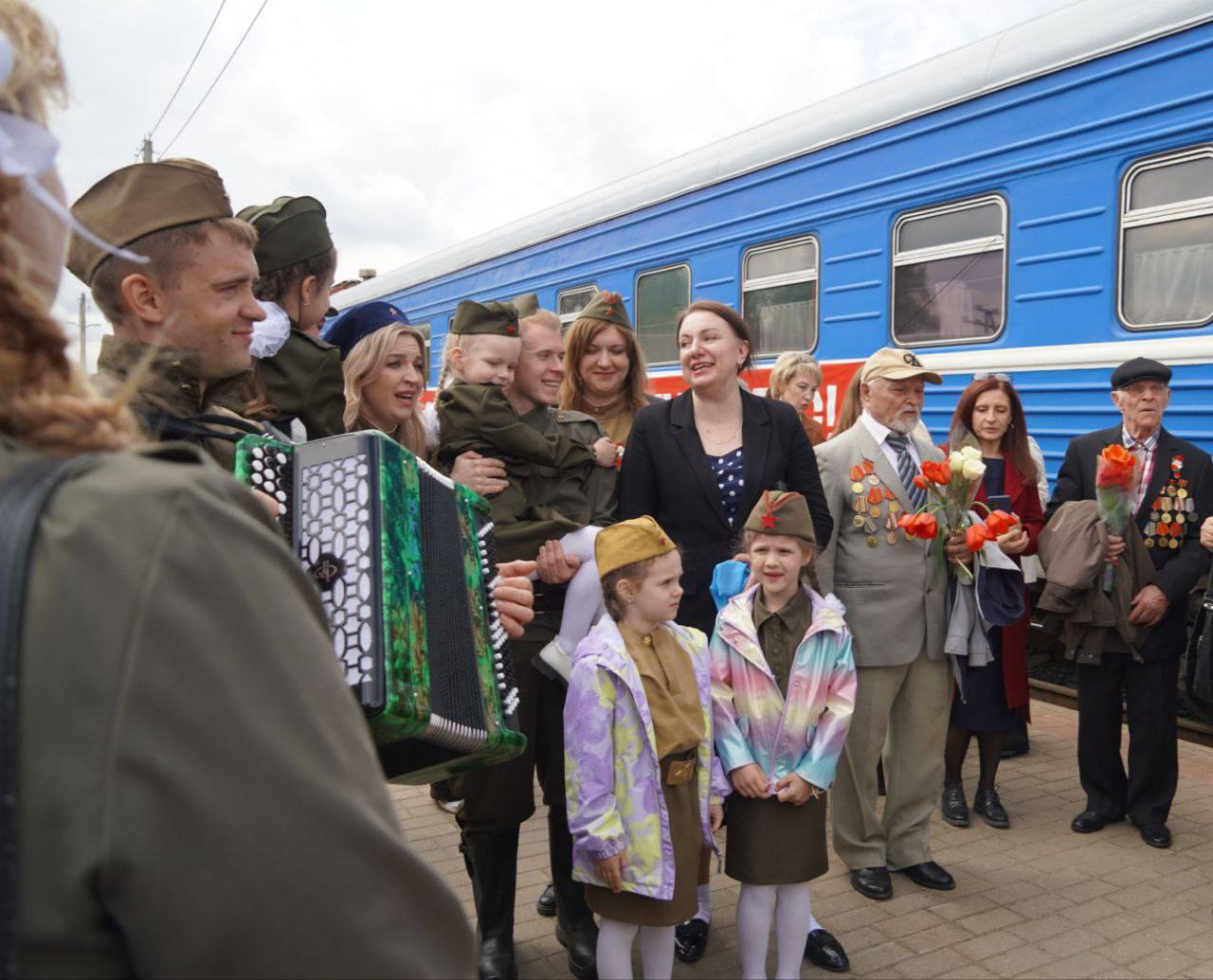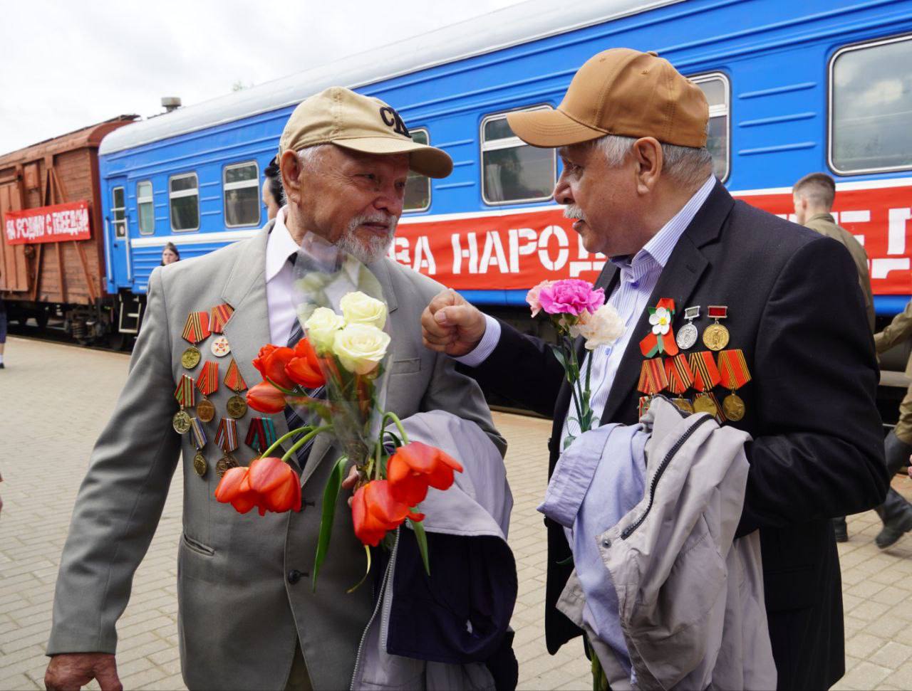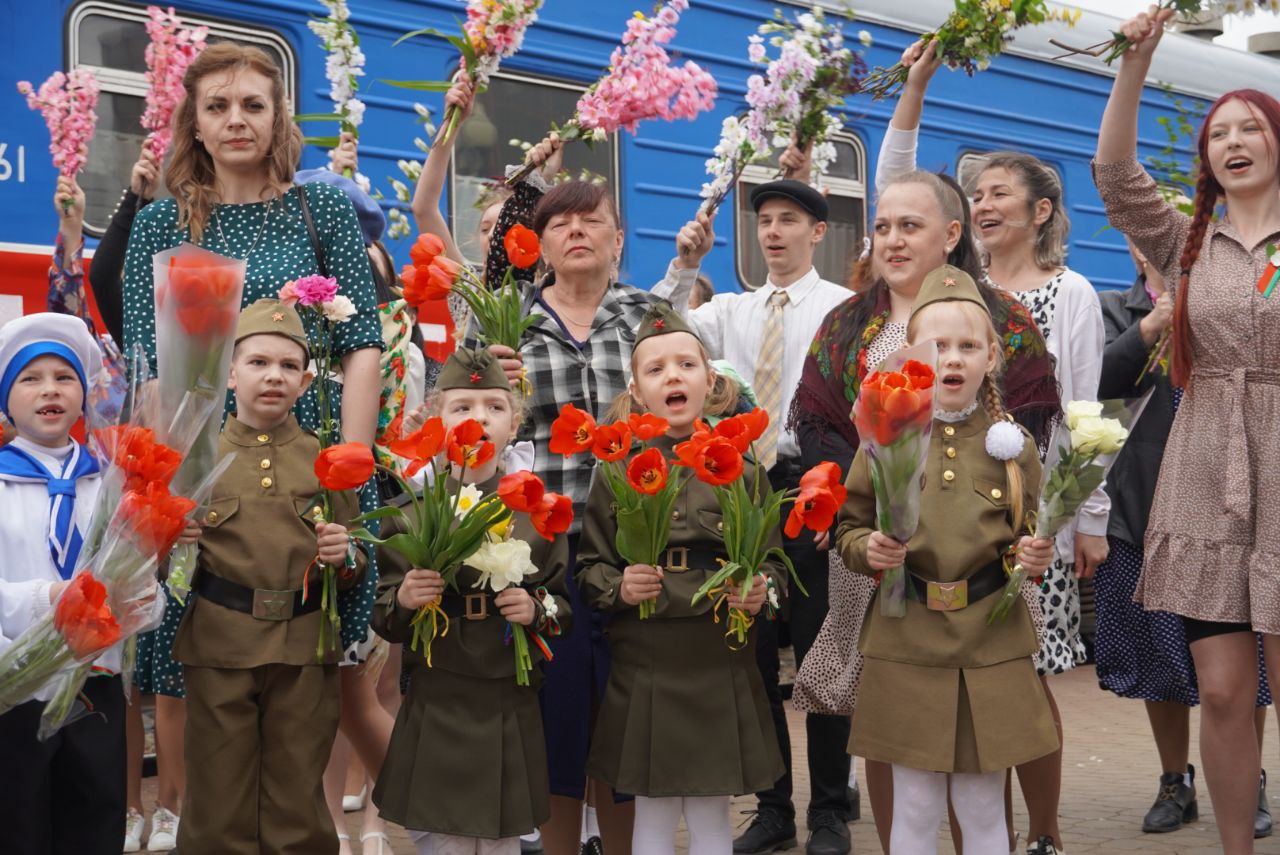 Старт мероприятиям, приуроченным к празднованию 80-летия Победы советского народа в Великой Отечественной войне, дан. На перроне железнодорожной станции «Могилев-1» тепло встретили пассажиров «Поезда Победы»: ветеранов Великой Отечественной войны, бывших малолетних узников фашистских концлагерей. На привокзальной площади было многолюдно. Здесь собрались учащиеся учреждений образования, представители общественных объединений и трудовых коллективов. Участники акции «Навстречу Победе» посетили место памяти, боли и гордости – мемориальный комплекс «Буйничское поле». Они возложили цветы к подножию каплицы в знак вечного уважения к подвигу и благодарности за Победу.