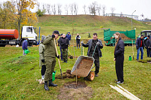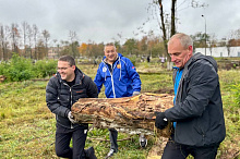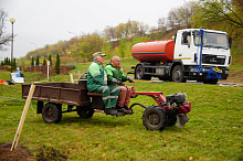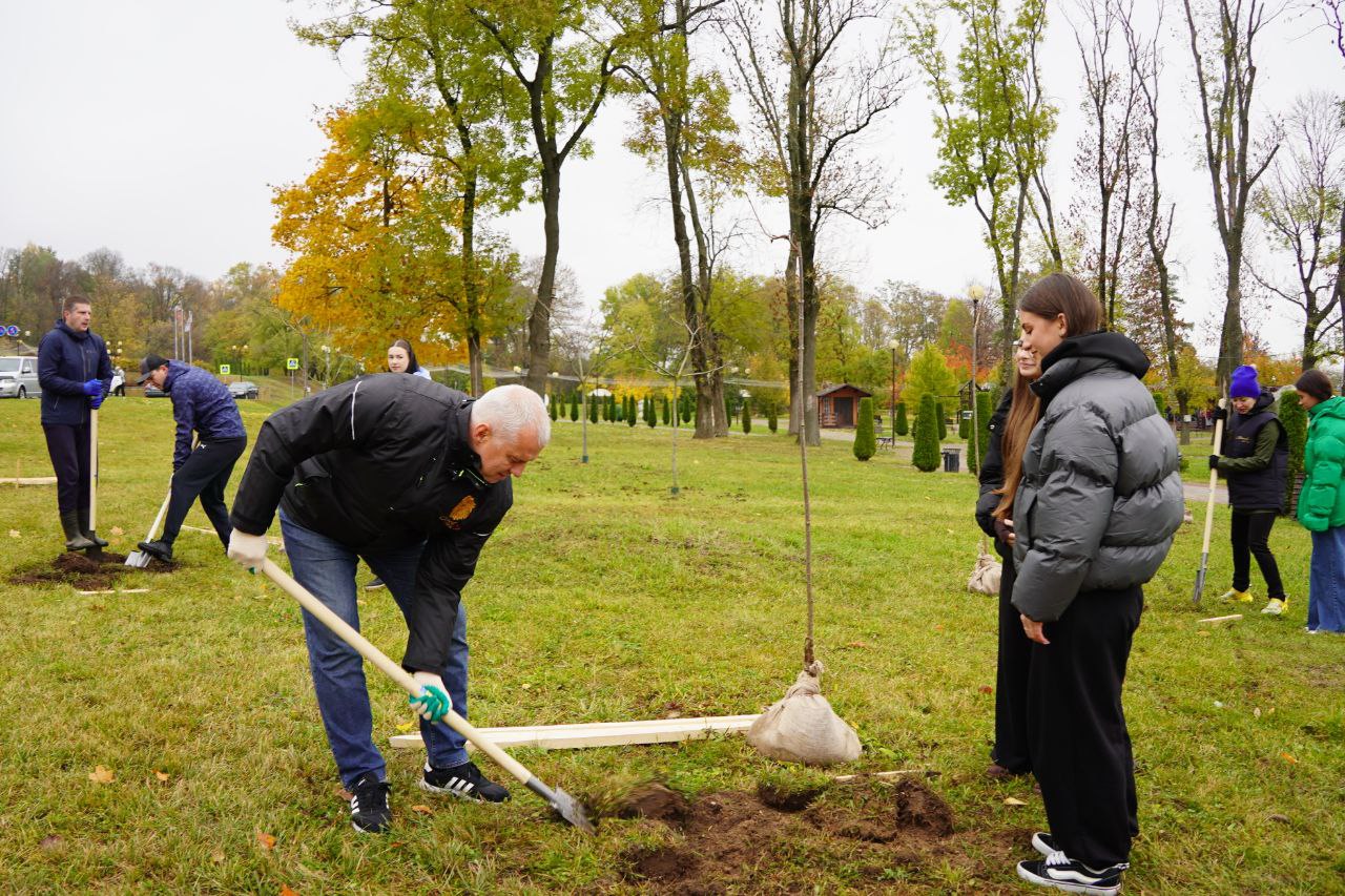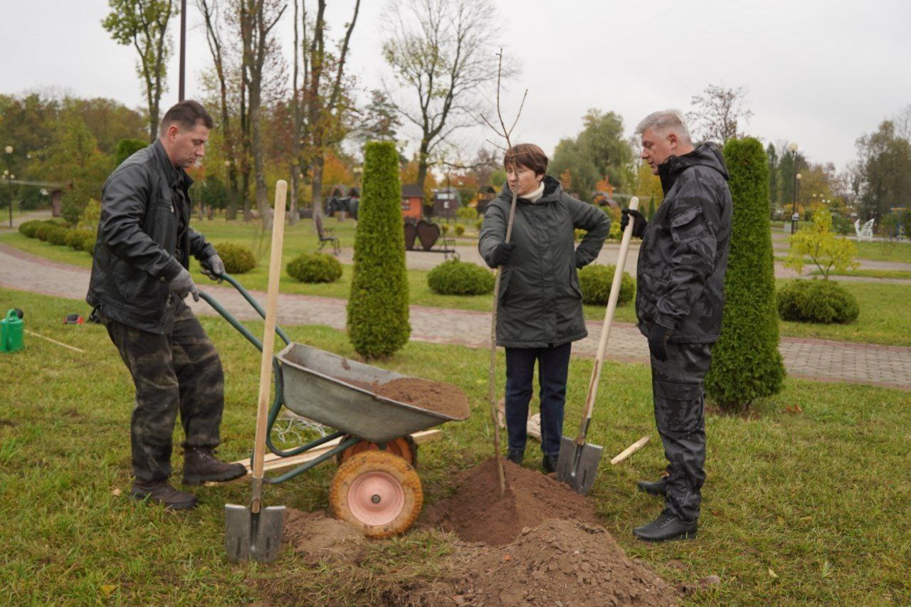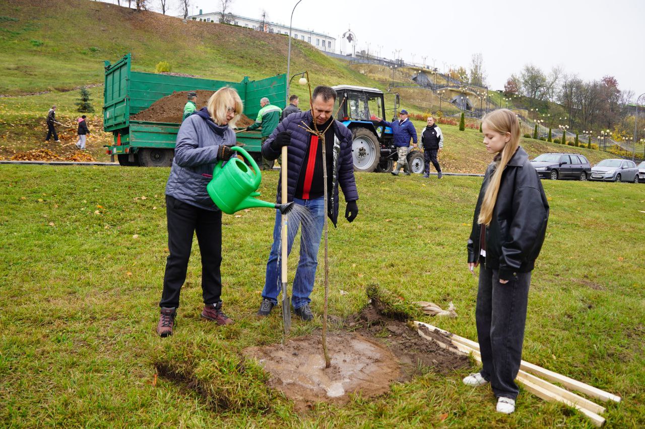 Одной из локаций городского субботника стал парк Подниколье. Там было высажено два десятка шаровидных кленов. Активно участвовал и помогал разобраться в этом процессе молодежи председатель Могилевского горисполкома Сергей Чертков.