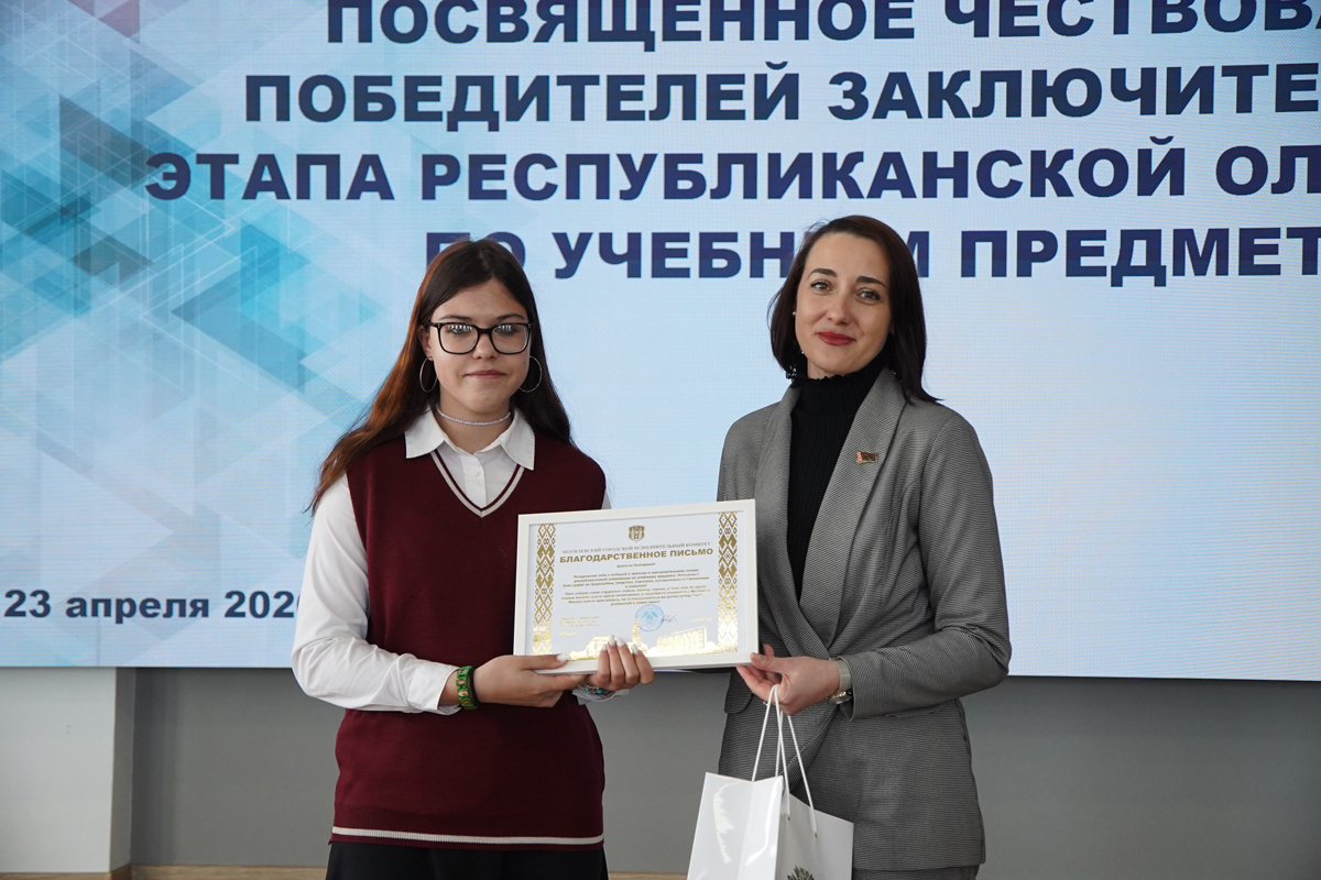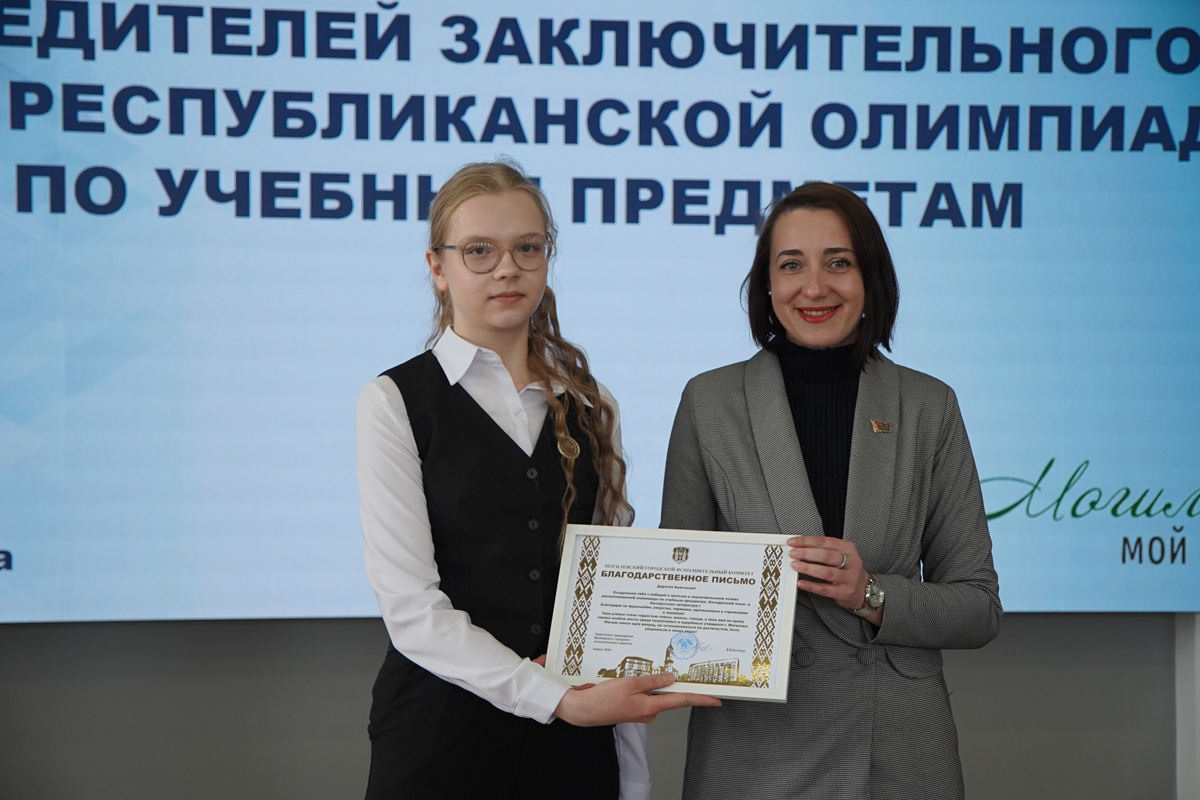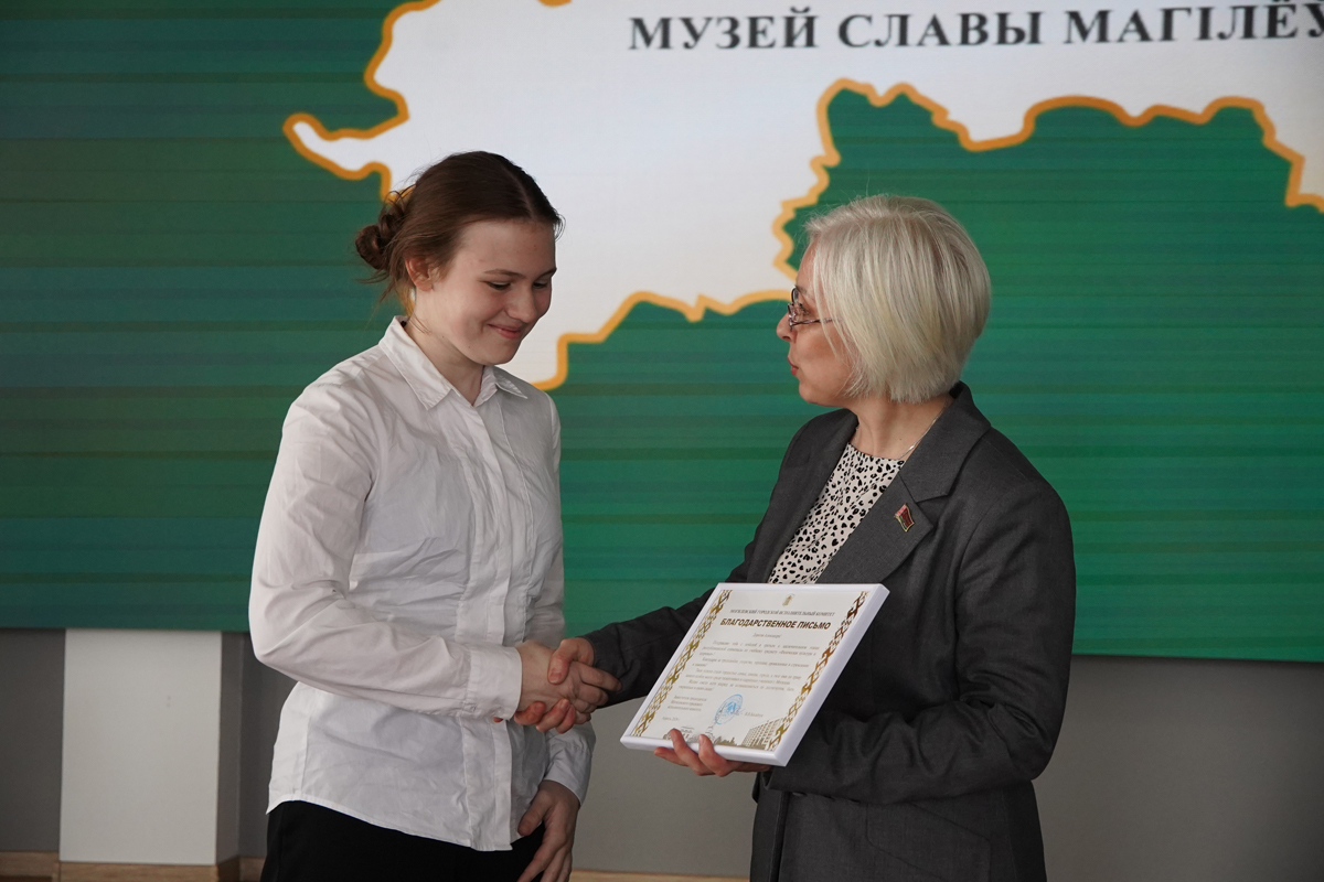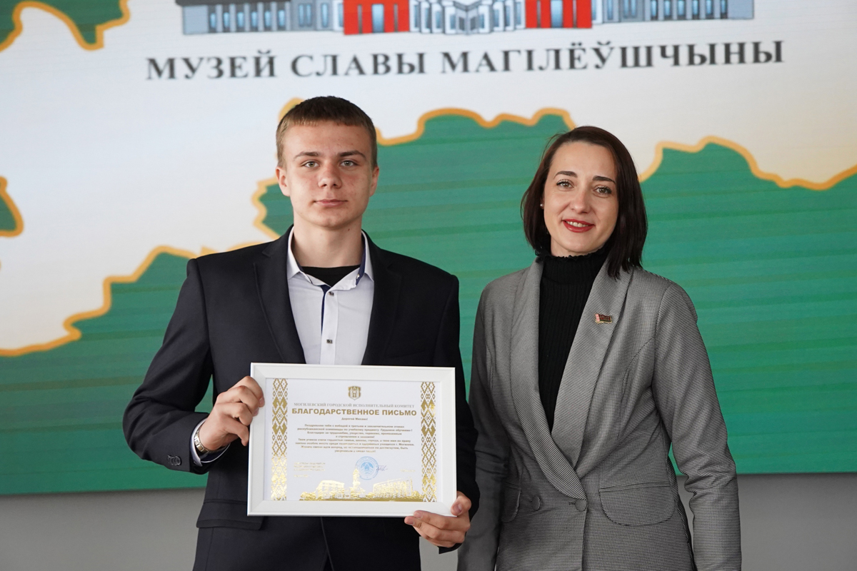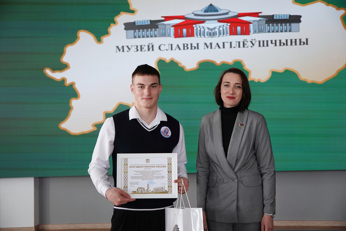 В Музее Славы Могилевщины звучали аплодисменты победителям интеллектуальных баталий. В знаменательный год 85-летия героической обороны Могилева в стенах, хранящих подвиг предков, чествовали тех, кто сегодня прославляет наш город в науке и спорте - победителей и призеров заключительного этапа республиканской олимпиады по учебным предметам. Перед началом мероприятия для ребят организовали экскурсию в могилевский зоосад. Молодежь и педагоги также возложили цветы к каплице на Буйничском поле в память о героях.