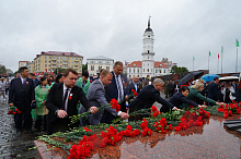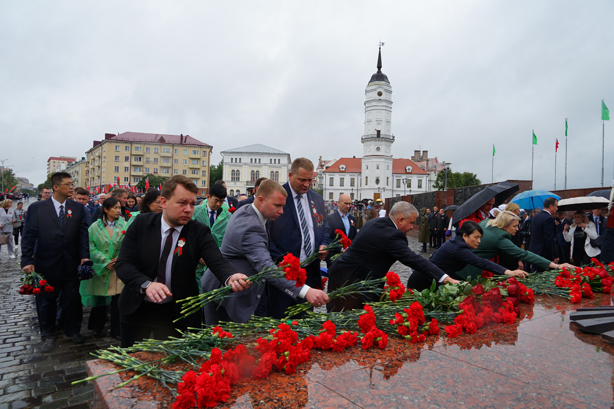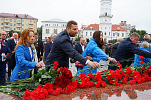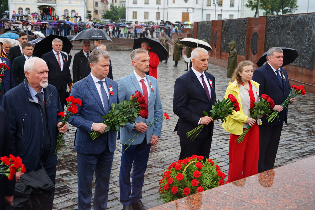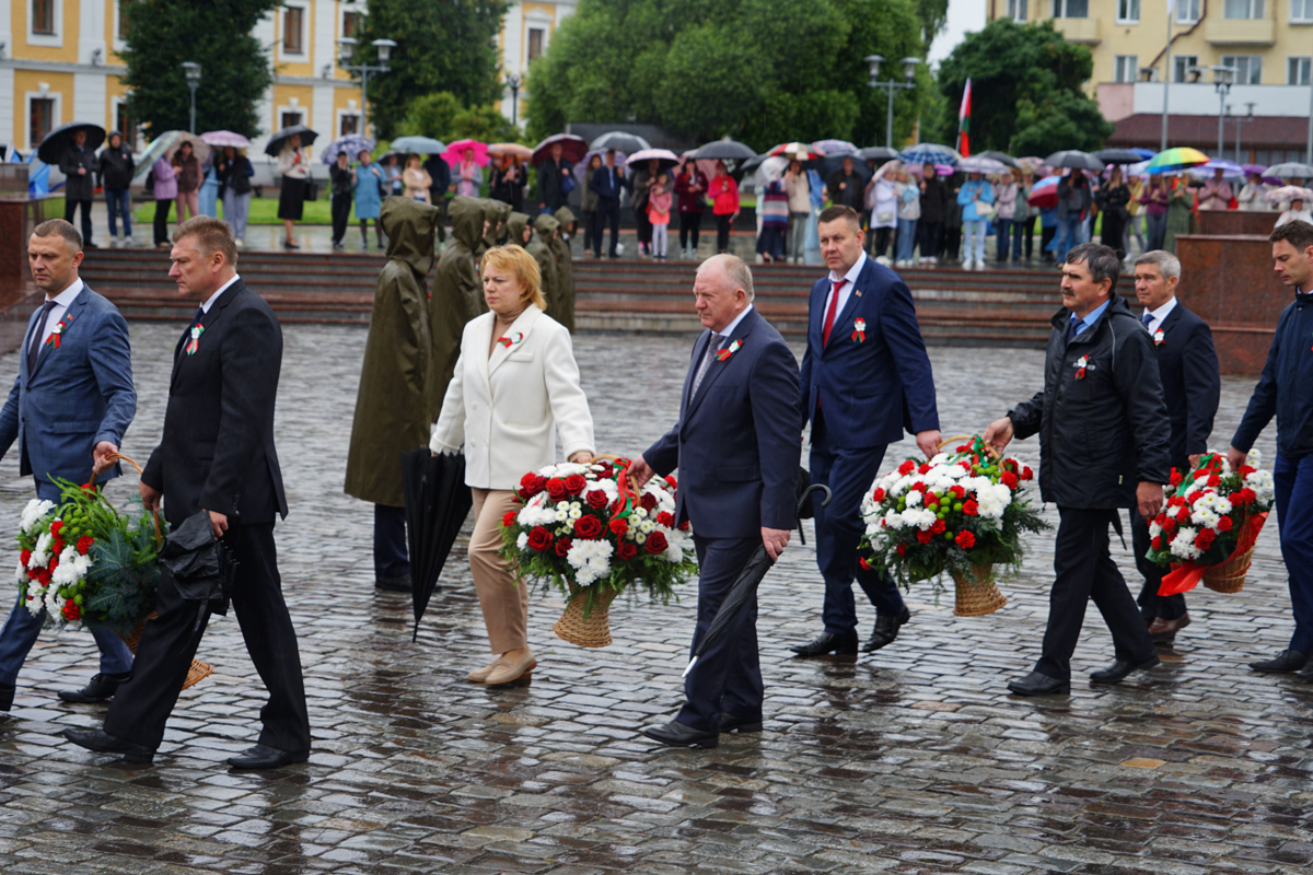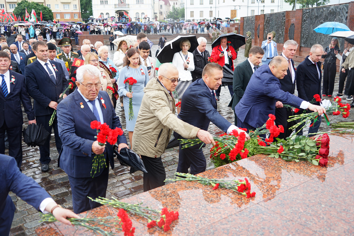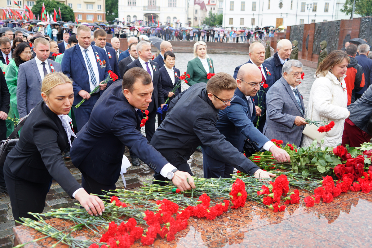 В Могилеве состоялось возложение цветов и венков к Вечному огню на площади Славы, посвященное 80-летию Победы советского народа в Великой Отечественной войне и 81-ой годовщине освобождения города от немецко-фашистских захватчиков. В церемонии приняли участие председатель Могилевского горисполкома Сергей Чертков, председатель Могилевского горсовета депутатов Светлана Сташевская, делегации городов-побратимов и городов-партнеров, другие официальные лица и почетные гости, представители депутатского корпуса, силовых структур, трудовых коллективов, учреждений и организаций, общественных объединений, жители Могилева. Память воинов, погибших за освобождение Могилева, и мирных жителей, ставших жертвами фашистского террора, участники торжественного митинга почтили минутой молчания.