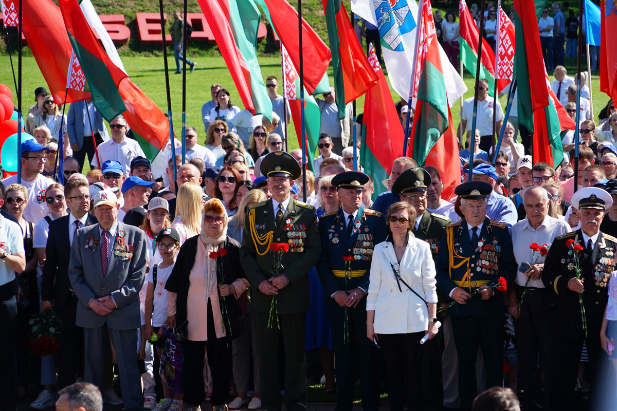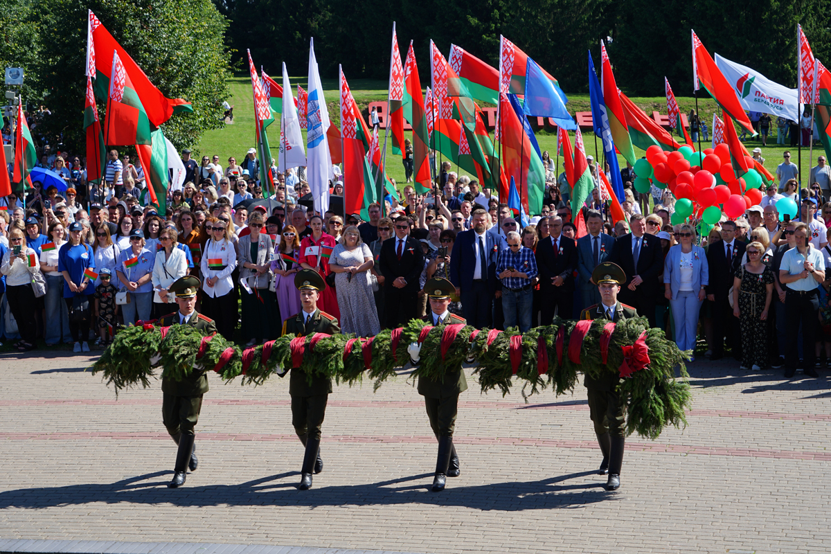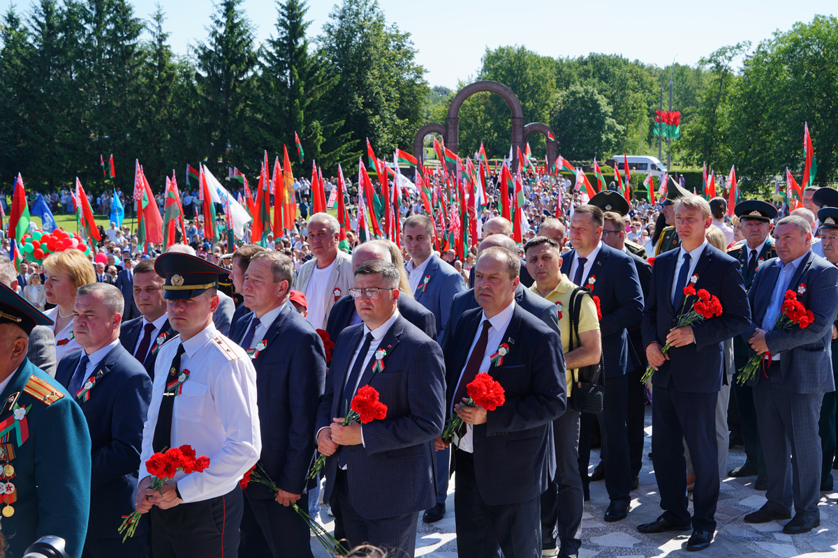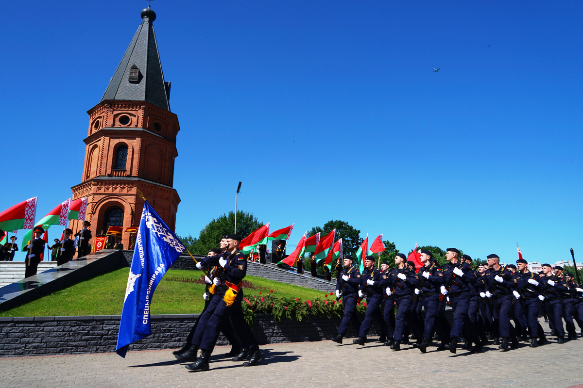 В Могилеве праздничные мероприятия, посвященные Дню Независимости, начались с митинга на Буйничском поле. В мероприятии приняли участие более 5 тыс. человек - представители исполнительной власти, депутатского корпуса, силовых ведомств, общественных объединений, трудовых коллективов, молодежь. Они пришли сюда, чтобы сказать спасибо тем, благодаря кому живут сегодня в мирной, свободной и процветающей стране, возложить цветы и венки к подножию каплицы. Собравшиеся почтили минутой молчания память погибших солдат, в их честь прозвучал оружейный салют. Торжественным маршем прошла колонна парадных расчетов военнослужащих Могилевского гарнизона, а в небе развевался государственный флаг - авиашоу от Могилевского аэроклуба ДОСААФ.