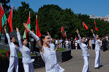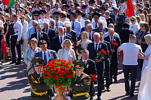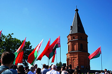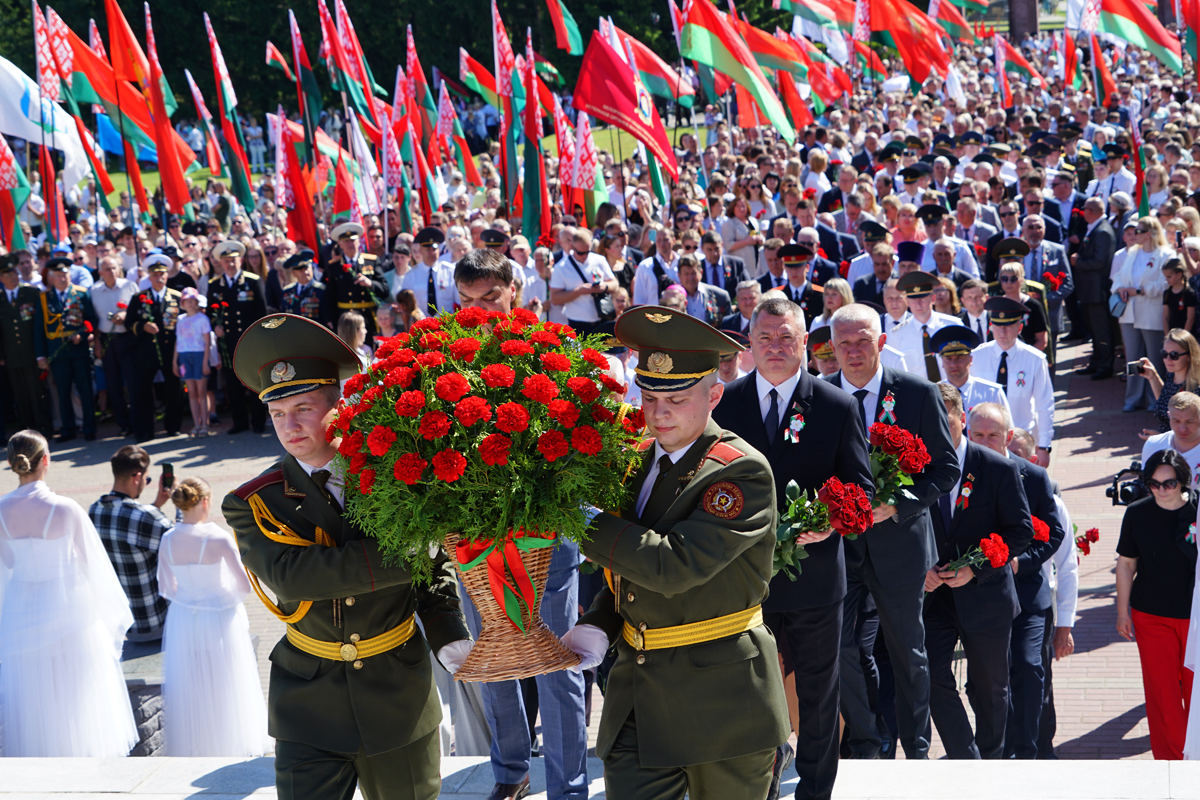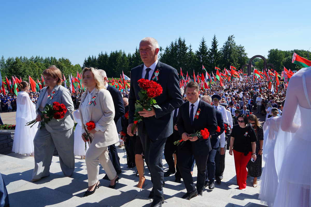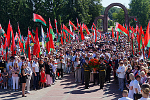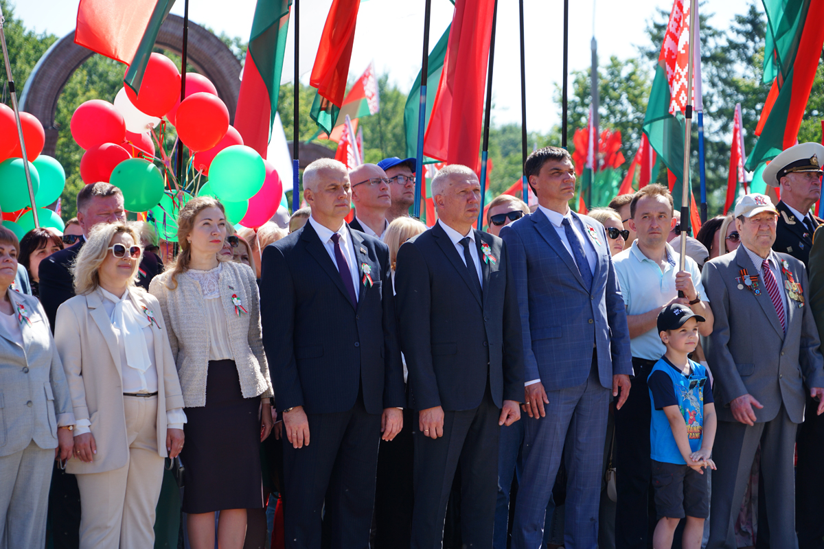 В Могилеве праздничные мероприятия, посвященные Дню Независимости, начались с митинга на Буйничском поле. В мероприятии приняли участие более 5 тыс. человек - представители исполнительной власти, депутатского корпуса, силовых ведомств, общественных объединений, трудовых коллективов, молодежь. Они пришли сюда, чтобы сказать спасибо тем, благодаря кому живут сегодня в мирной, свободной и процветающей стране, возложить цветы и венки к подножию каплицы. Собравшиеся почтили минутой молчания память погибших солдат, в их честь прозвучал оружейный салют. Торжественным маршем прошла колонна парадных расчетов военнослужащих Могилевского гарнизона, а в небе развевался государственный флаг - авиашоу от Могилевского аэроклуба ДОСААФ.