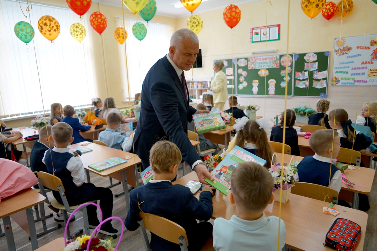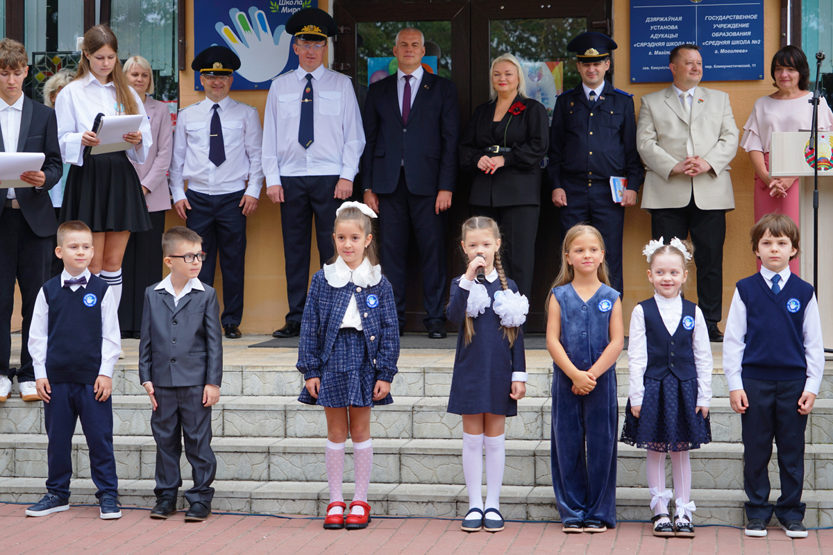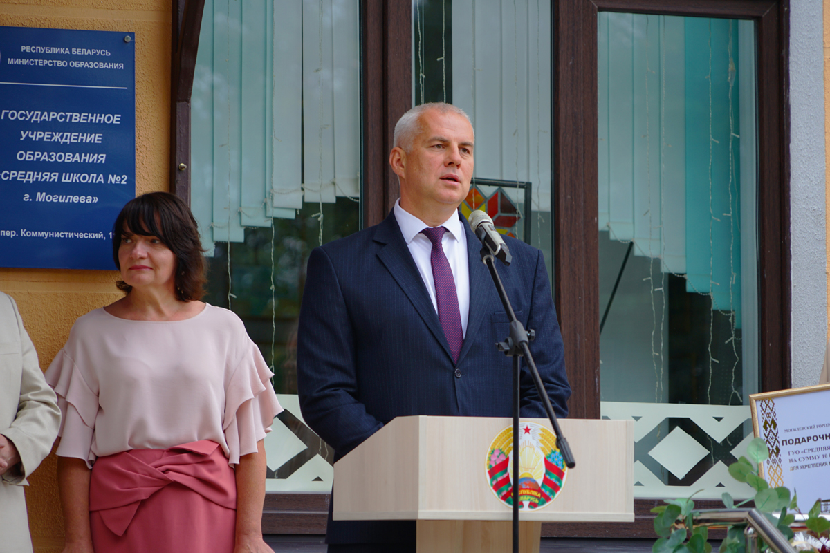 Белые банты, пышные букеты, волнующиеся школьники: 1 сентября во всех учреждениях образования Могилева прошли линейки, посвященные Дню знаний. Председатель Могилевского горисполкома Сергей Чертков посетил среднюю школу №2 и поздравил ребят, педагогов и родителей с началом нового учебного года. Мэр передал школе подарочный сертификат на укрепление материально-технической базы, а также прошелся по коридорам учебного заведения, вручил первоклассникам книги «Беларусь – наша Радзіма».