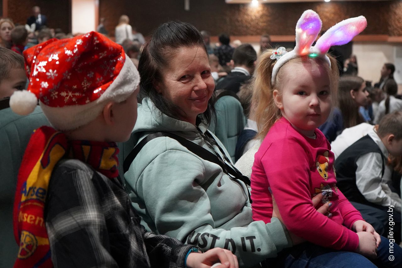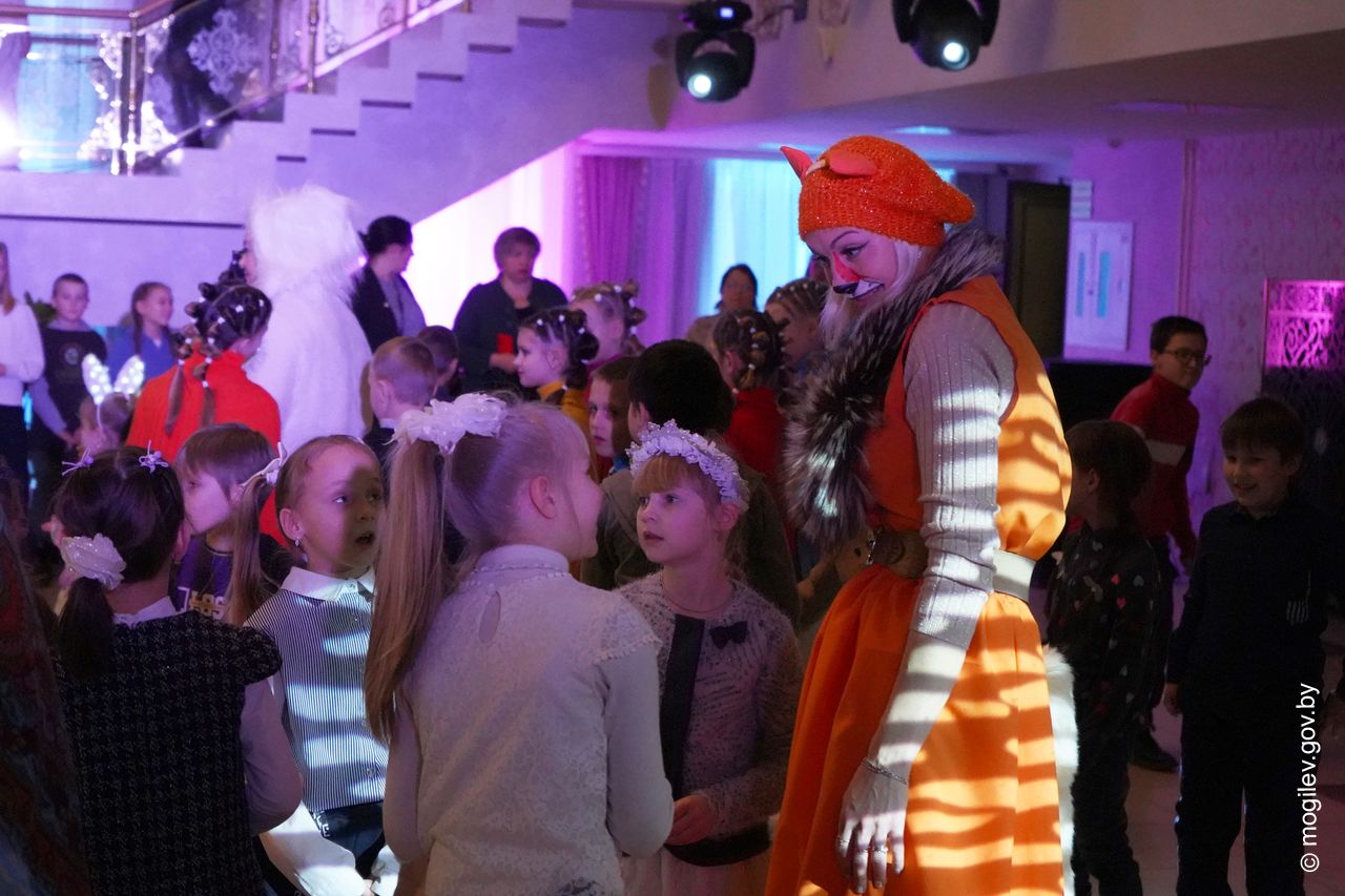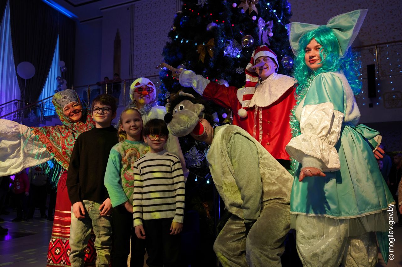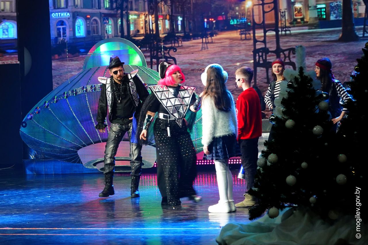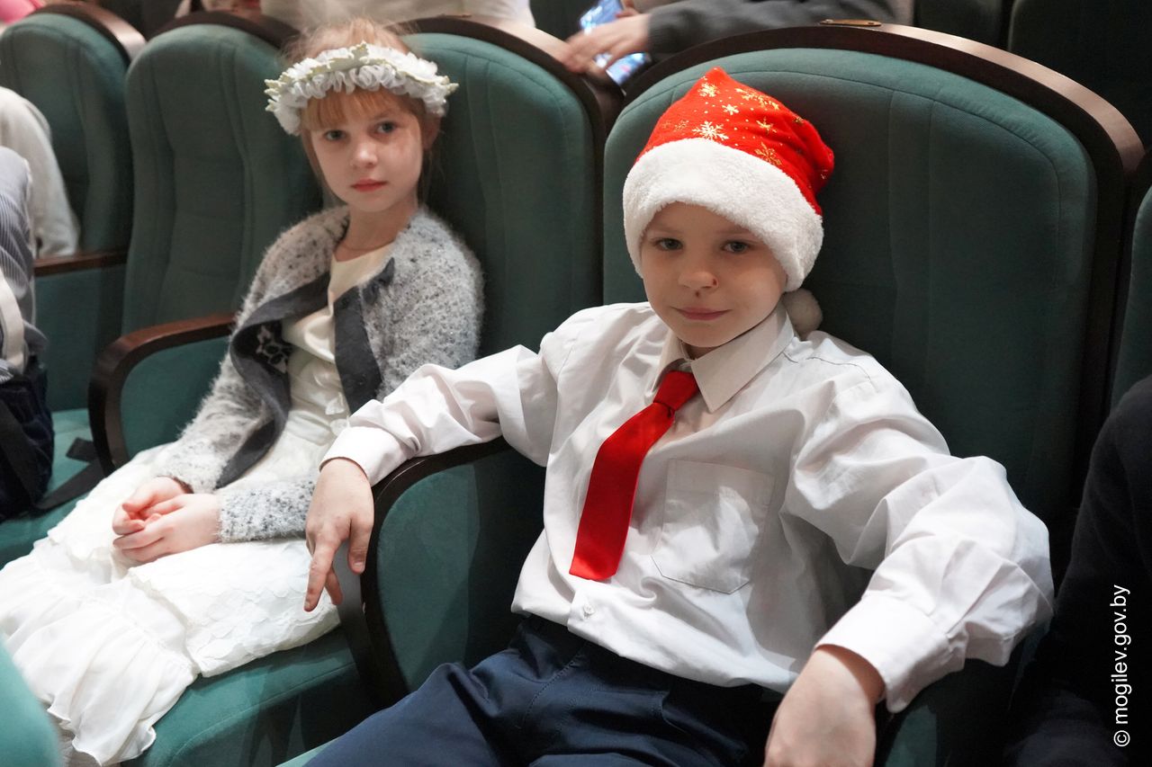 Новогодний праздник в рамках акции «Наши дети» прошел во Дворце культуры области. В этот день юные горожане принимали поздравления с наступающими праздниками и подарки от председателя Могилевского горисполкома Александра Студнева. Затем ребята посмотрели представление «Звездные приключения Снегурочки и ее друзей».