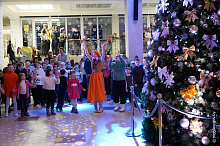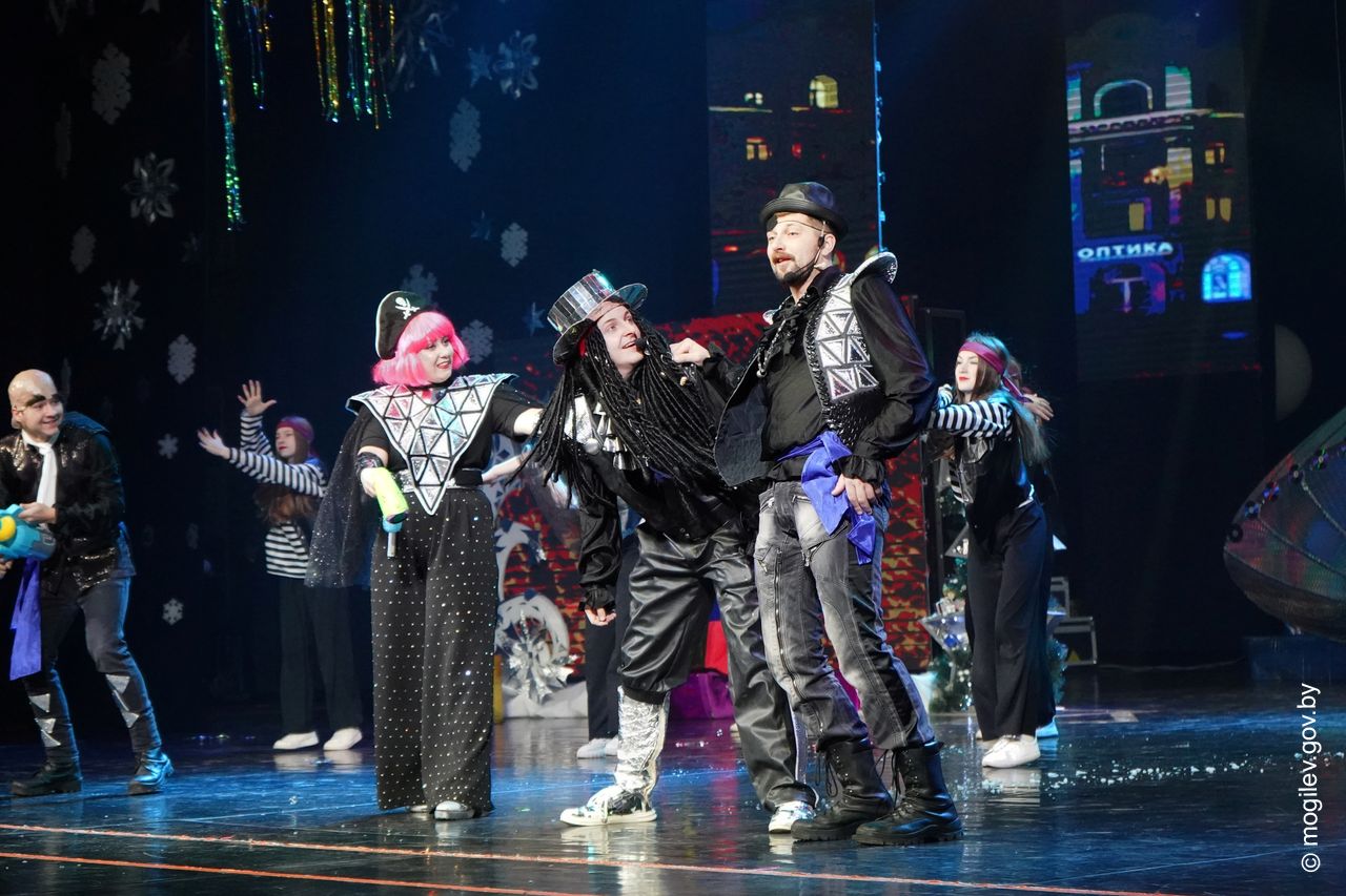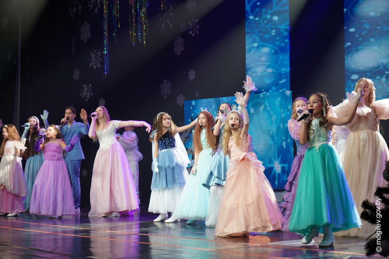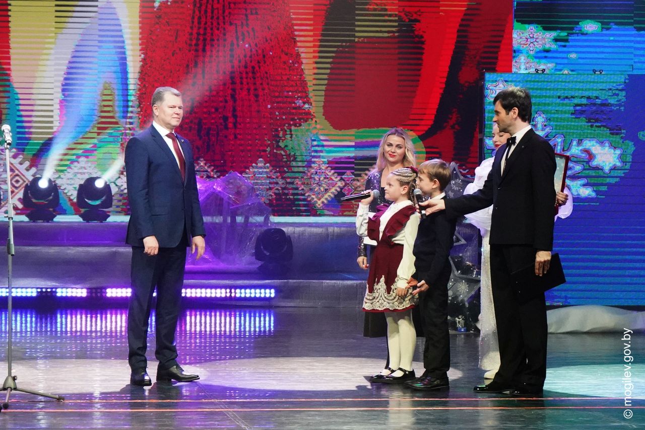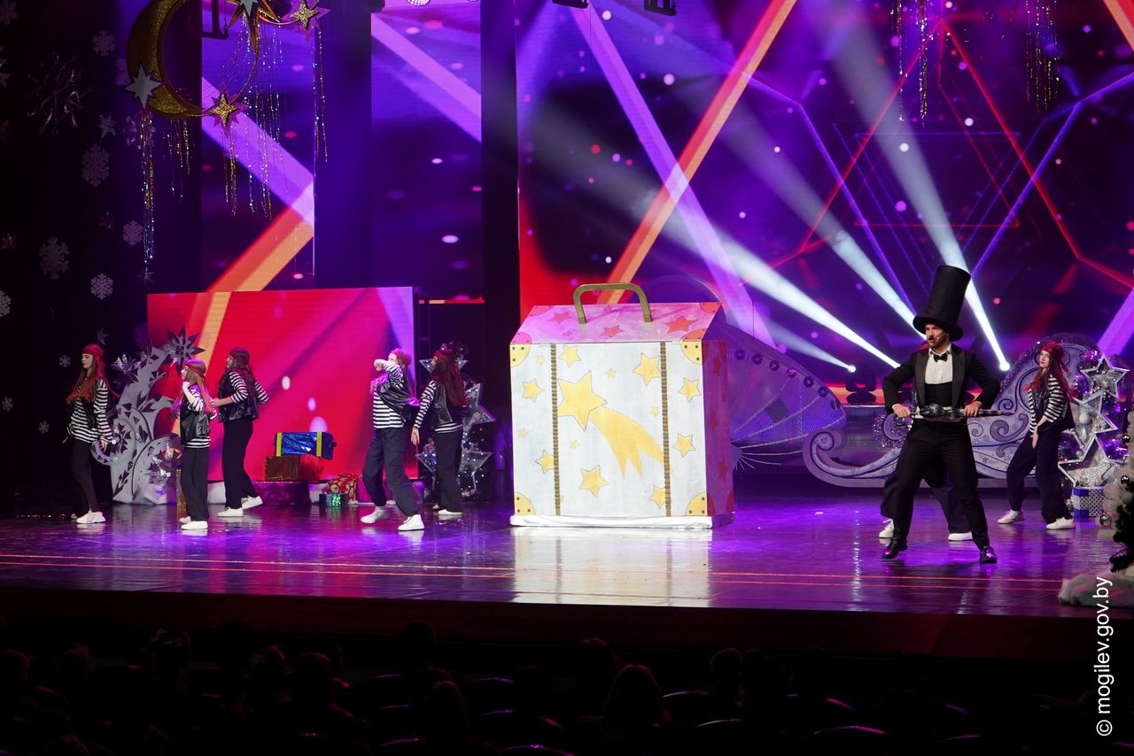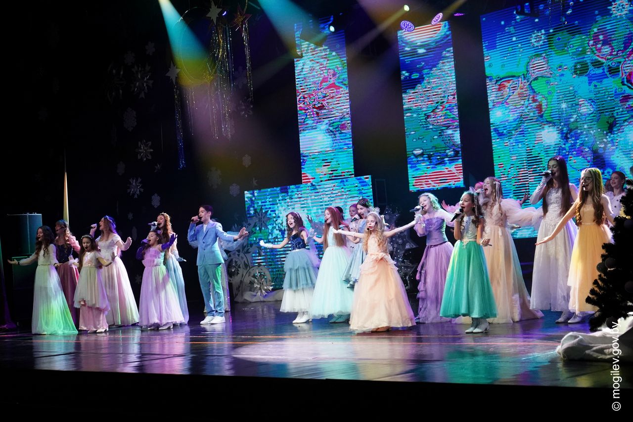 Новогодний праздник в рамках акции «Наши дети» прошел во Дворце культуры области. В этот день юные горожане принимали поздравления с наступающими праздниками и подарки от председателя Могилевского горисполкома Александра Студнева. Затем ребята посмотрели представление «Звездные приключения Снегурочки и ее друзей».