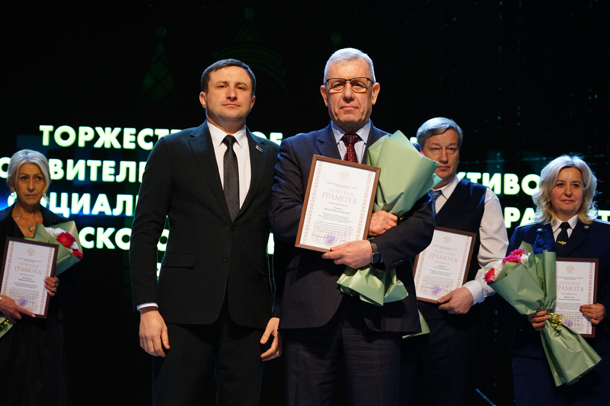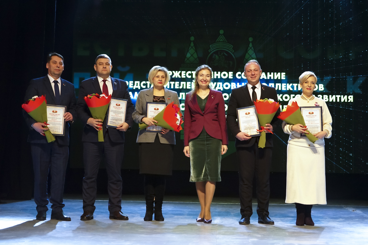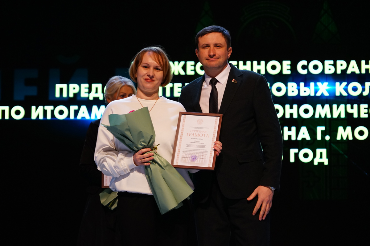Церемония награждения представителей трудовых коллективов по итогам социально-экономического развития Ленинского района за 2025 год прошла сегодня в филиале УК «Могилевский городской Центр культуры и досуга». Торжественное мероприятие собрало руководство города, района, а также представителей трудовых коллективов, правоохранительных органов и общественных объединений.