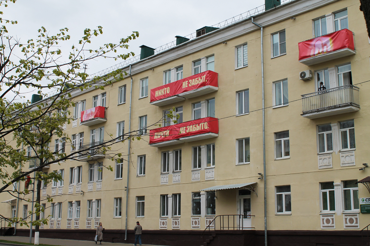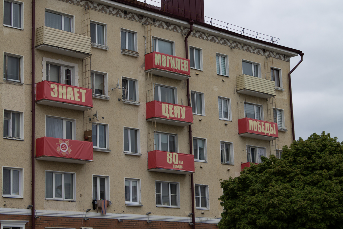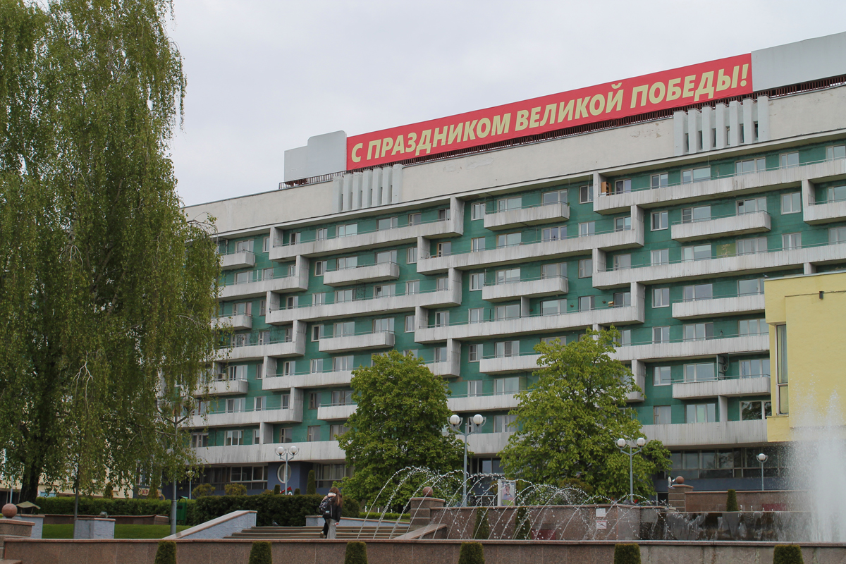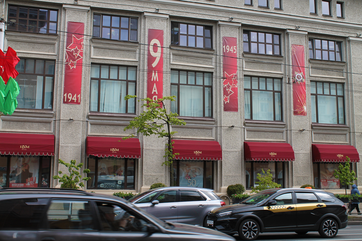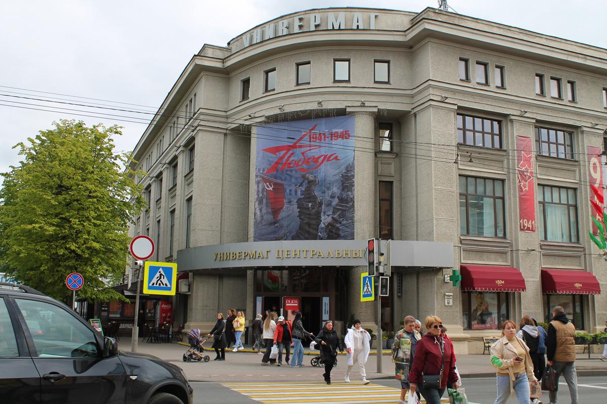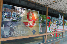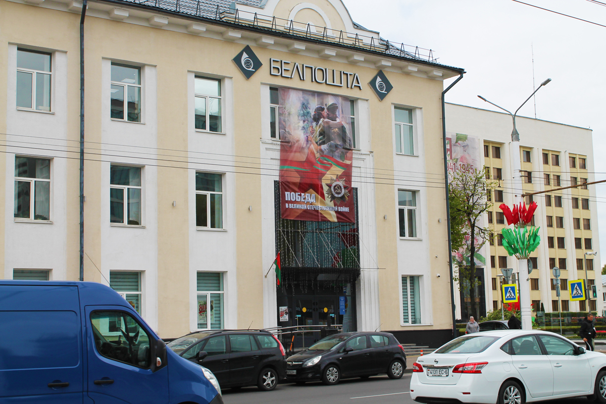 Могилев украсили ко Дню Победы. На улицах появились тематические стенды, фотозоны, панно, растяжки.