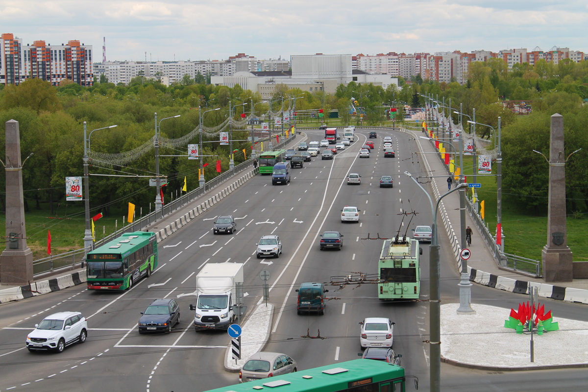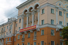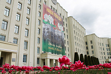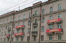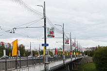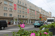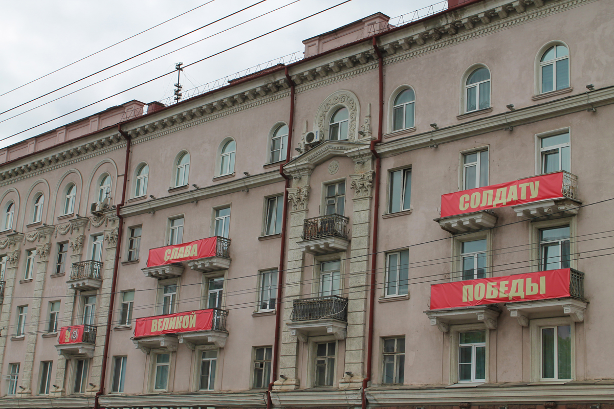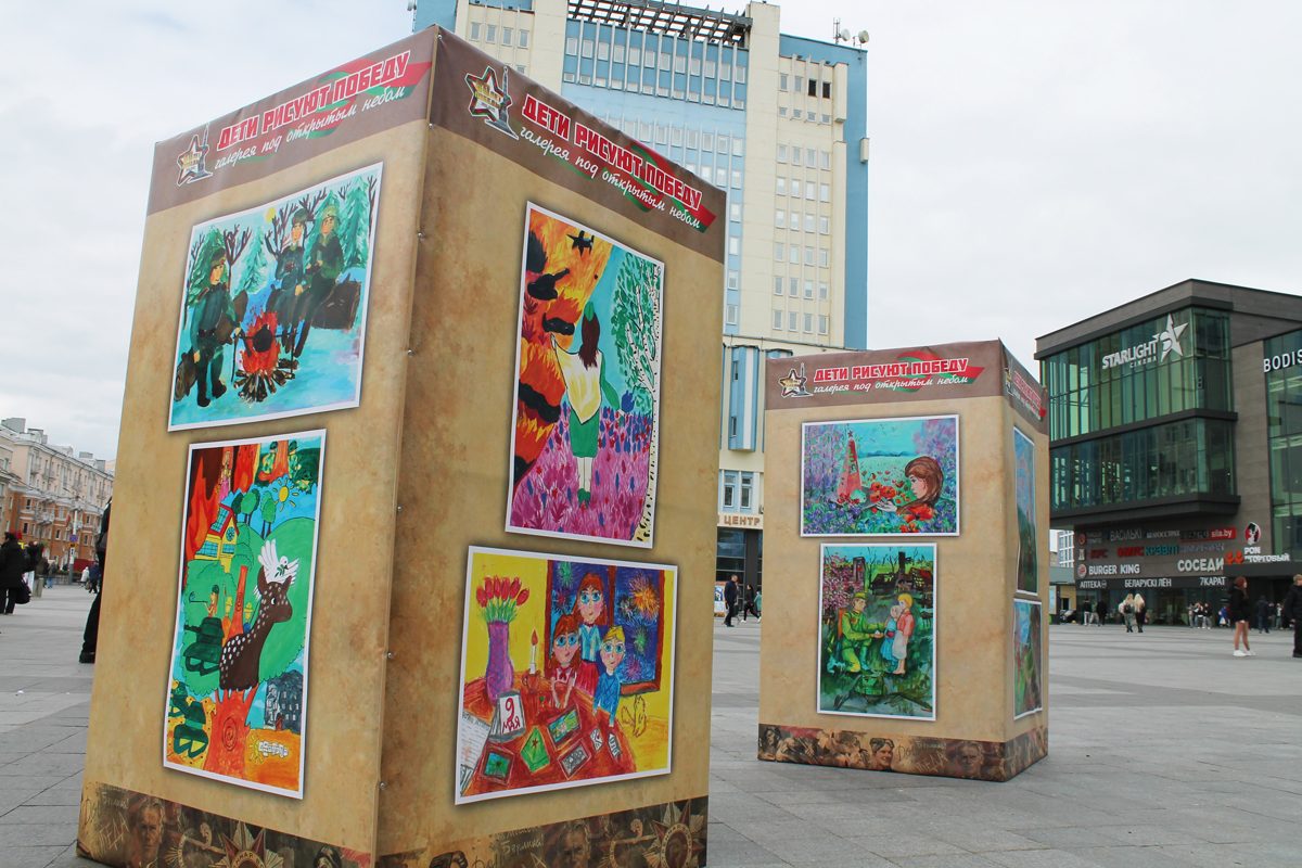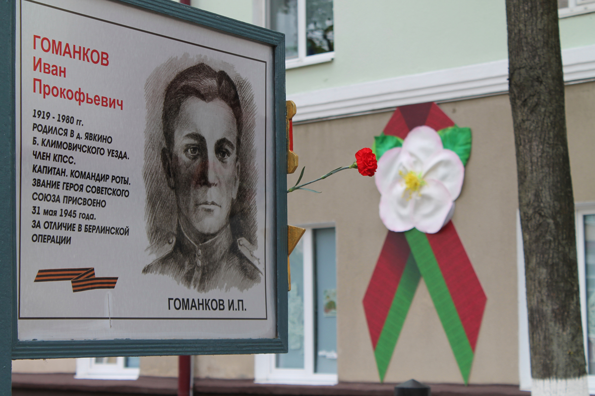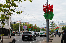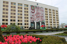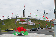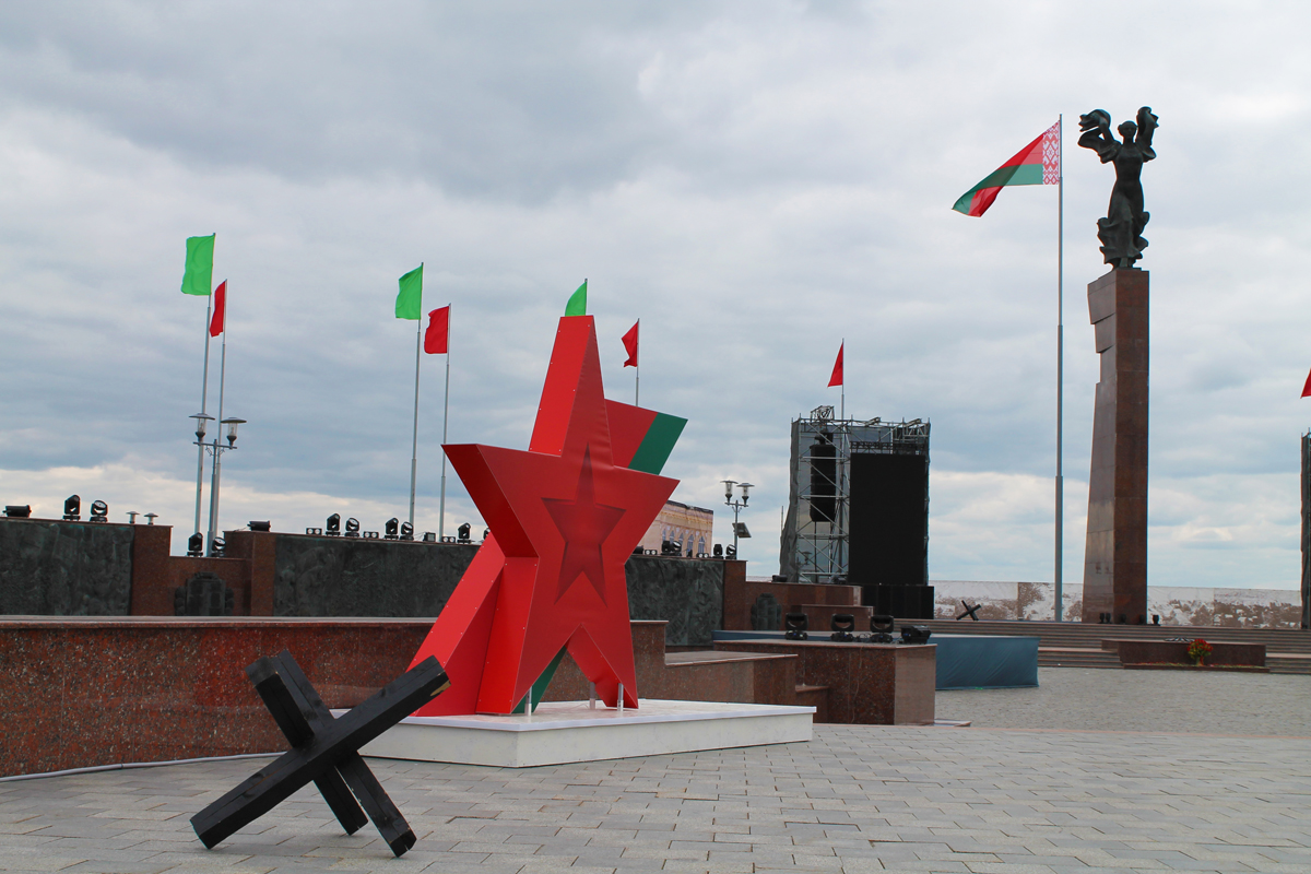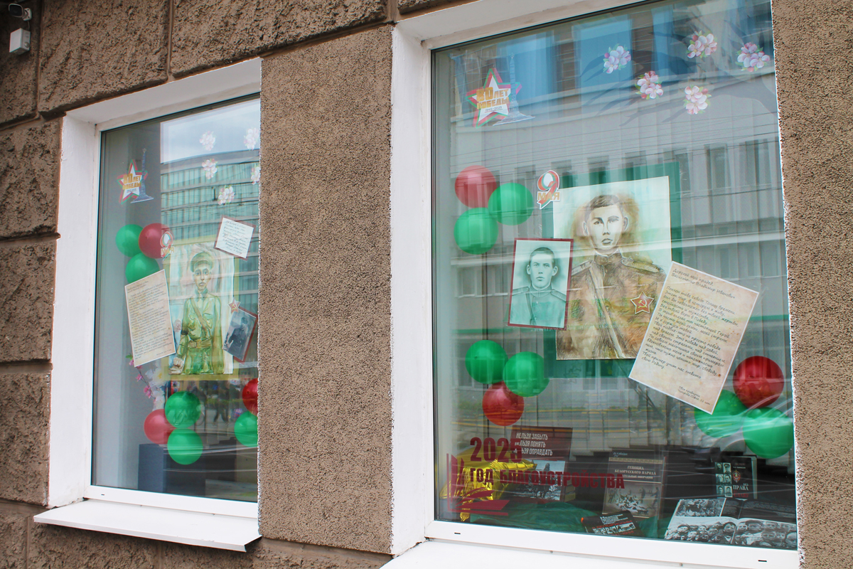 Могилев украсили ко Дню Победы. На улицах появились тематические стенды, фотозоны, панно, растяжки.