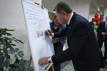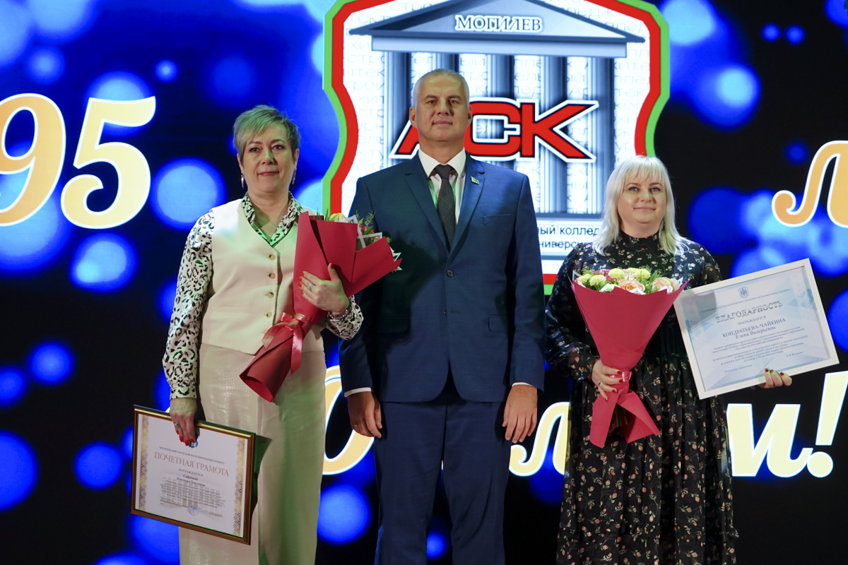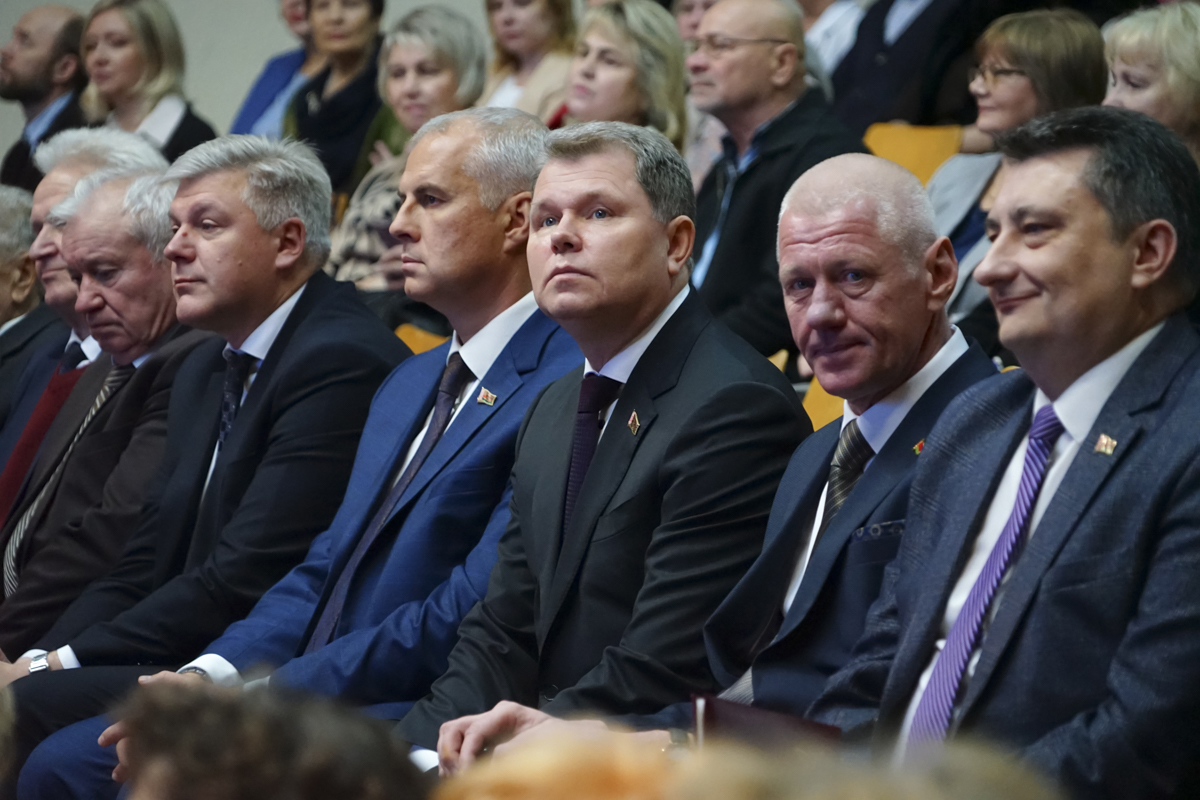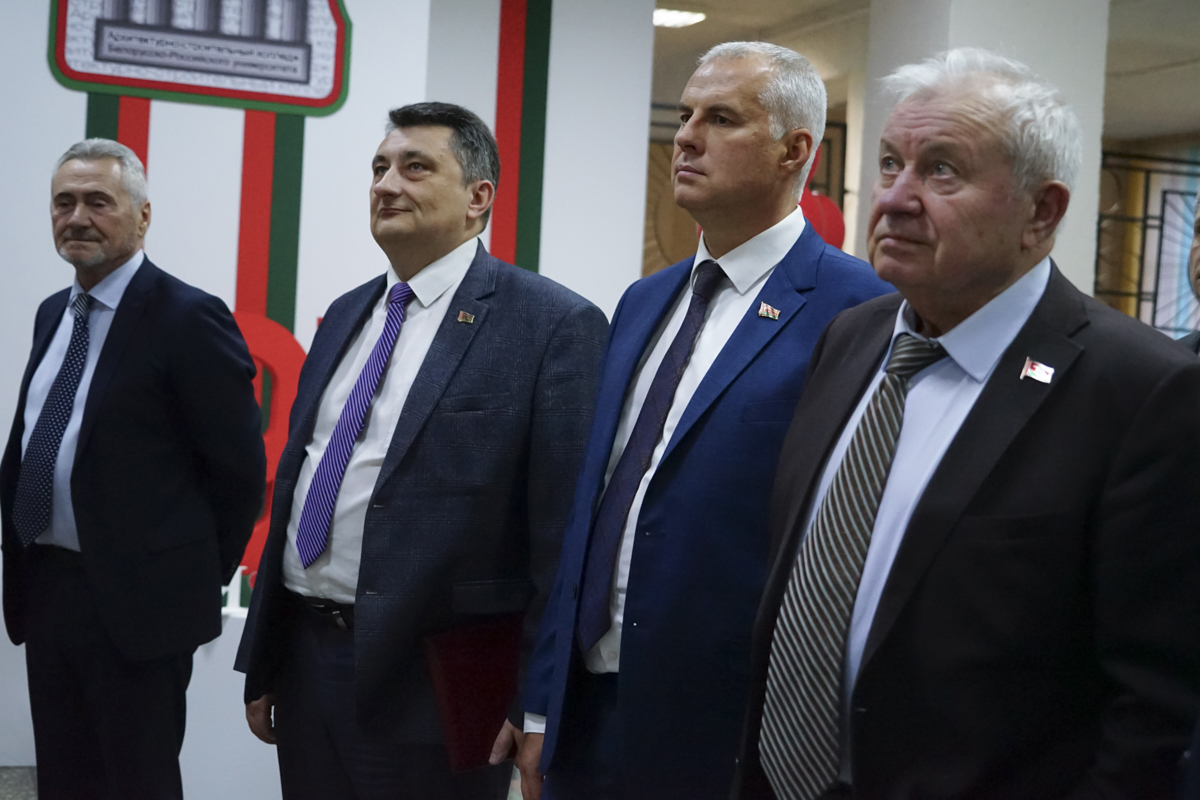Коллектив и учащихся приехали поздравить многочисленные гости. Среди них - министр архитектуры и строительства Беларуси Александр Студнев, также выпускник колледжа, и председатель Могилевского горисполкома Сергей Чертков.