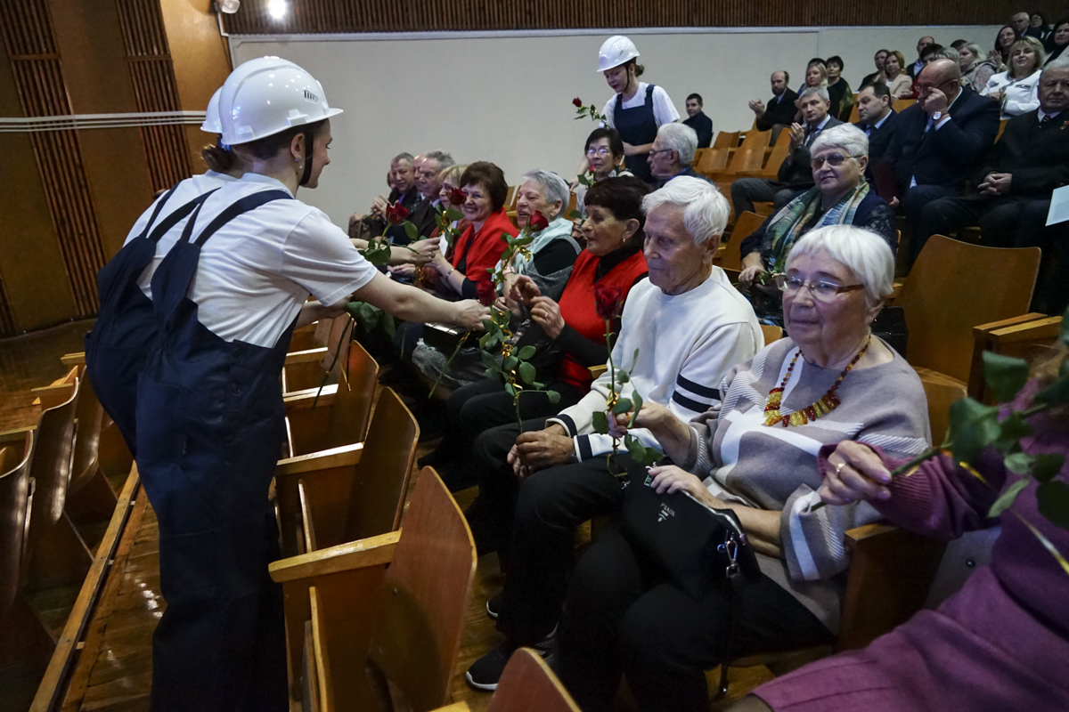 Атмосфера праздника чувствовалась уже в фойе. Преподаватели и выпускники разных лет не скрывали эмоций: радовались встрече, вспоминали времена учебы. Особое внимание в этот день уделили ветеранам, которые на протяжении долгих лет воспитывали молодое поколение.