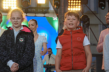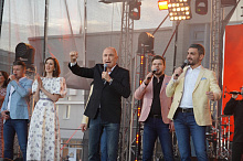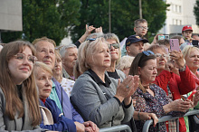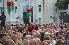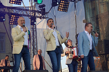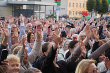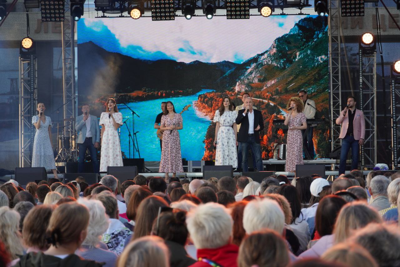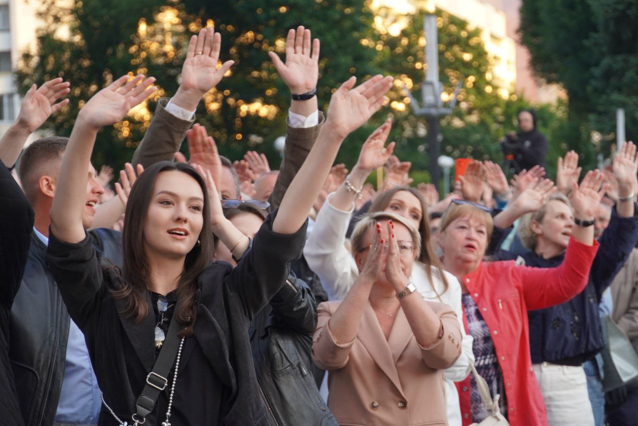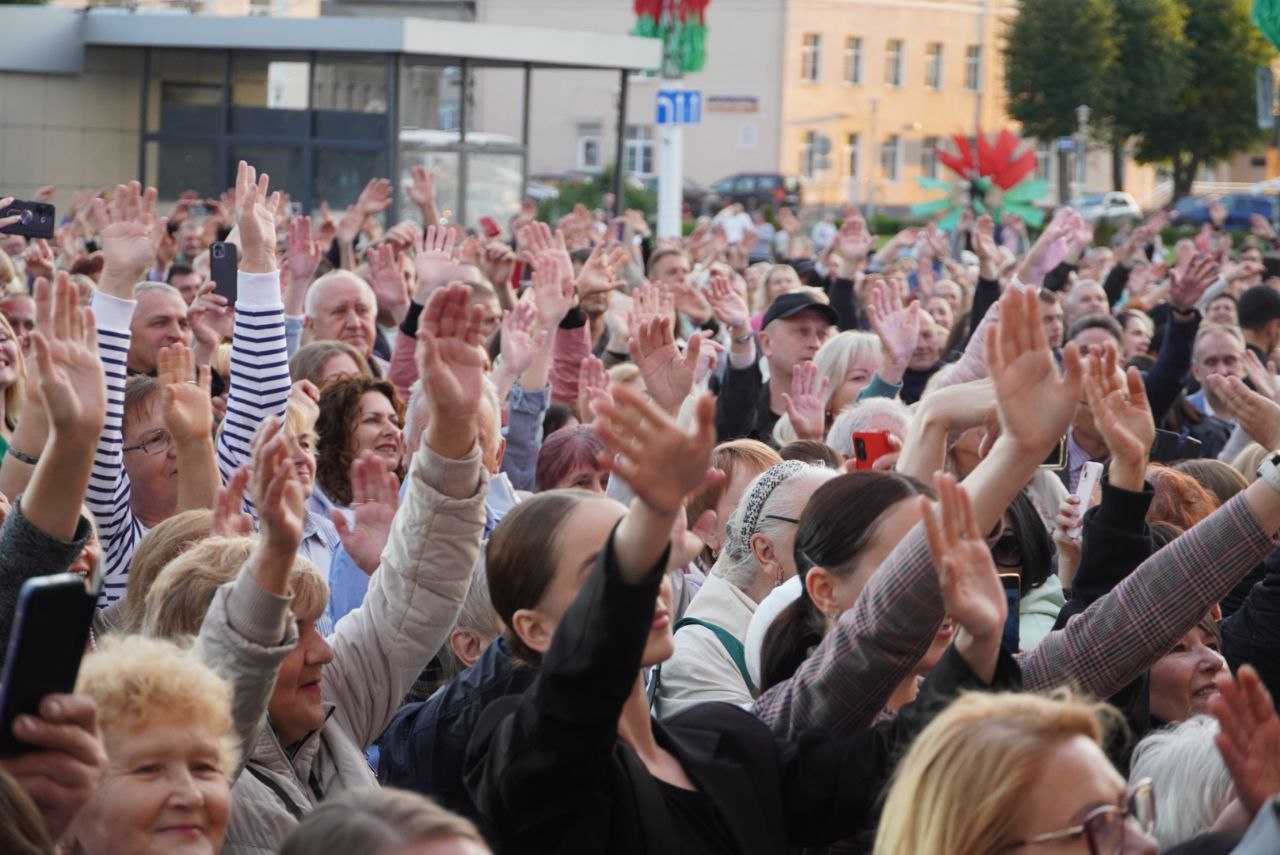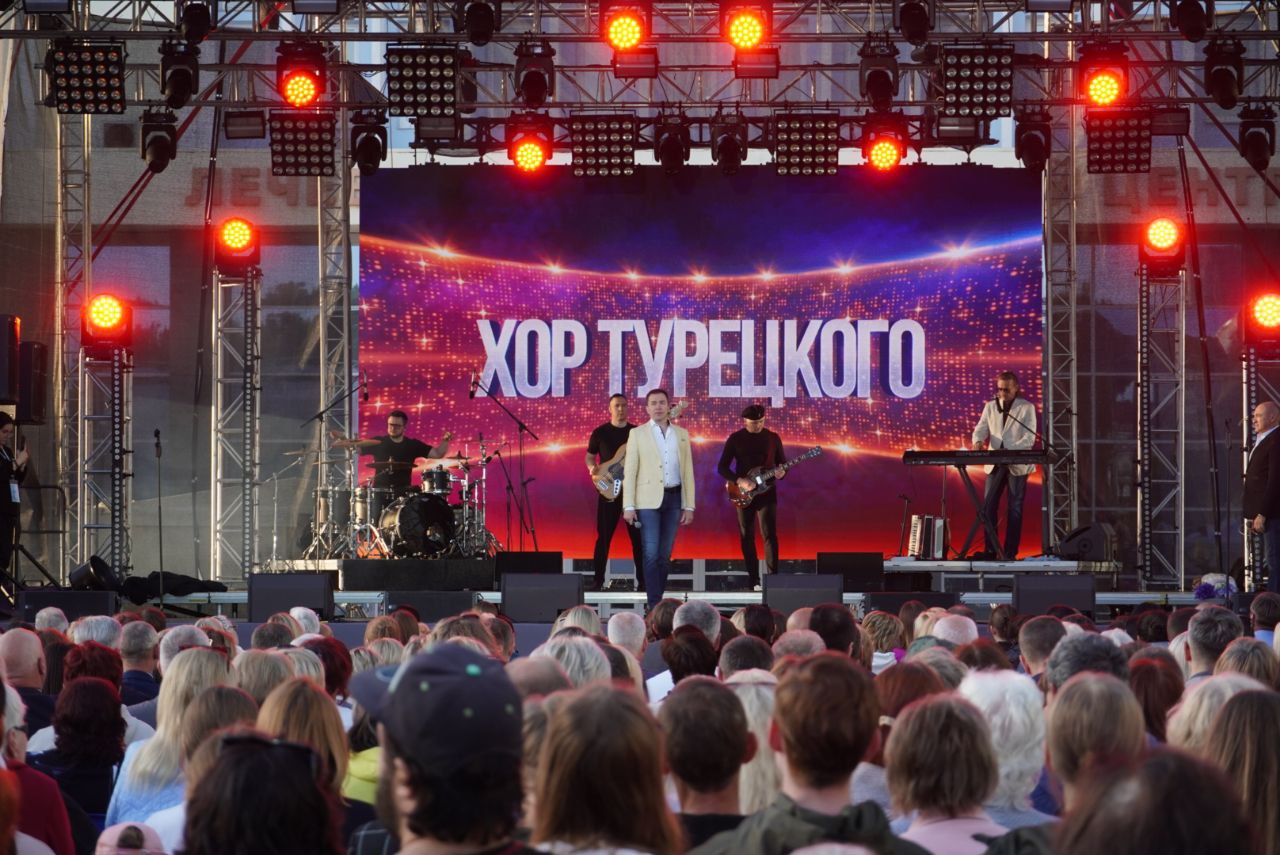 Музыкальный коллектив «Хор Турецкого» выступил на площади Единства в Могилеве с концертной программой «Песни Победы». Со сцены прозвучали искренние и трогательные композиции о мире, подвиге и любви: от пронзительного «Бухенвальдского набата» до всеми любимых «Катюши» и «Смуглянки». Специальным гостем мероприятия стало шоу женских голосов SOPRANO.