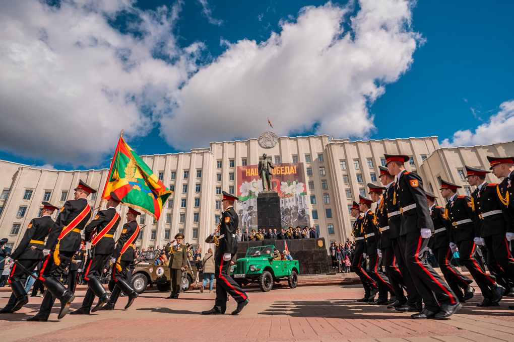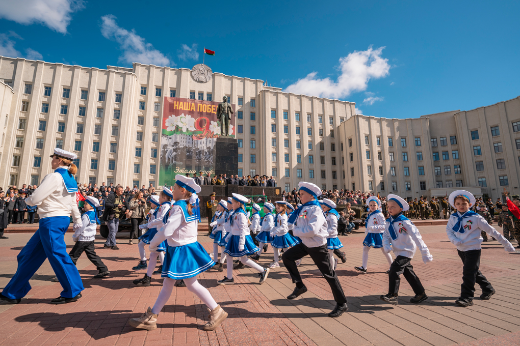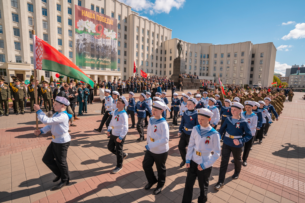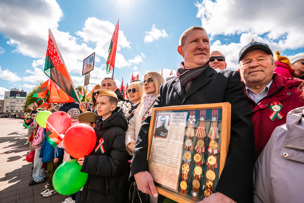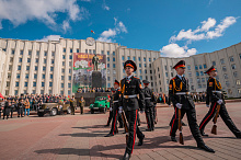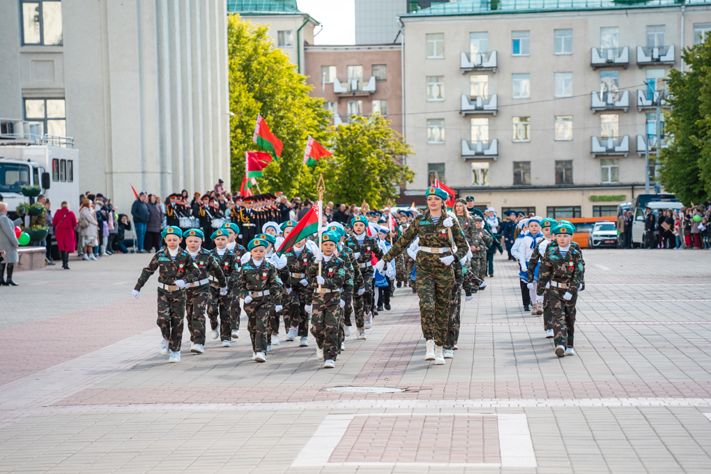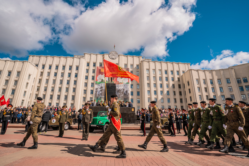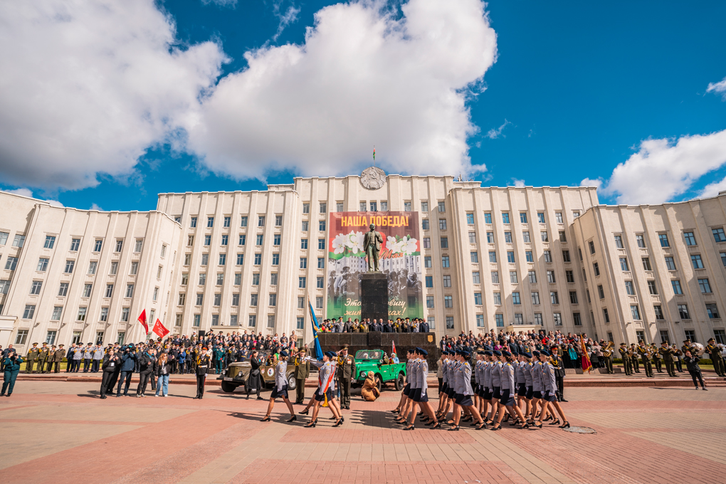 Праздник 9 Мая в городе на Днепре стартовал с парада наследников Великой Победы на площади Ленина. Здесь же состоялся торжественный марш воинских частей Могилевского гарнизона, демонстрирующий преемственность ратных традиций и готовность защищать родную землю.