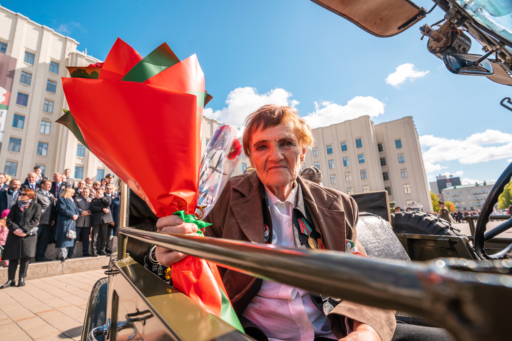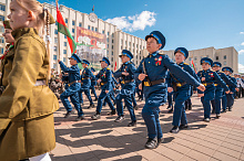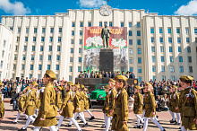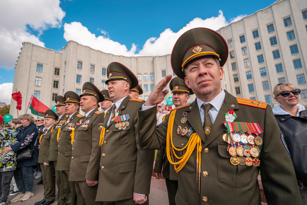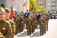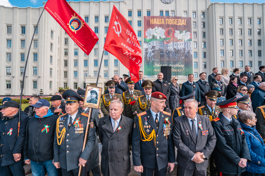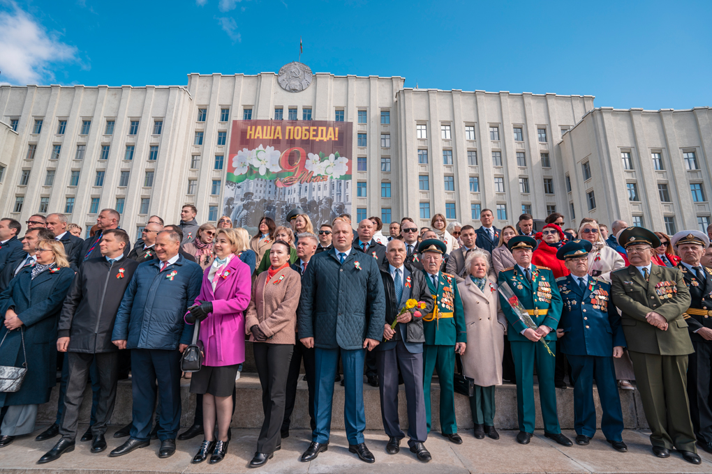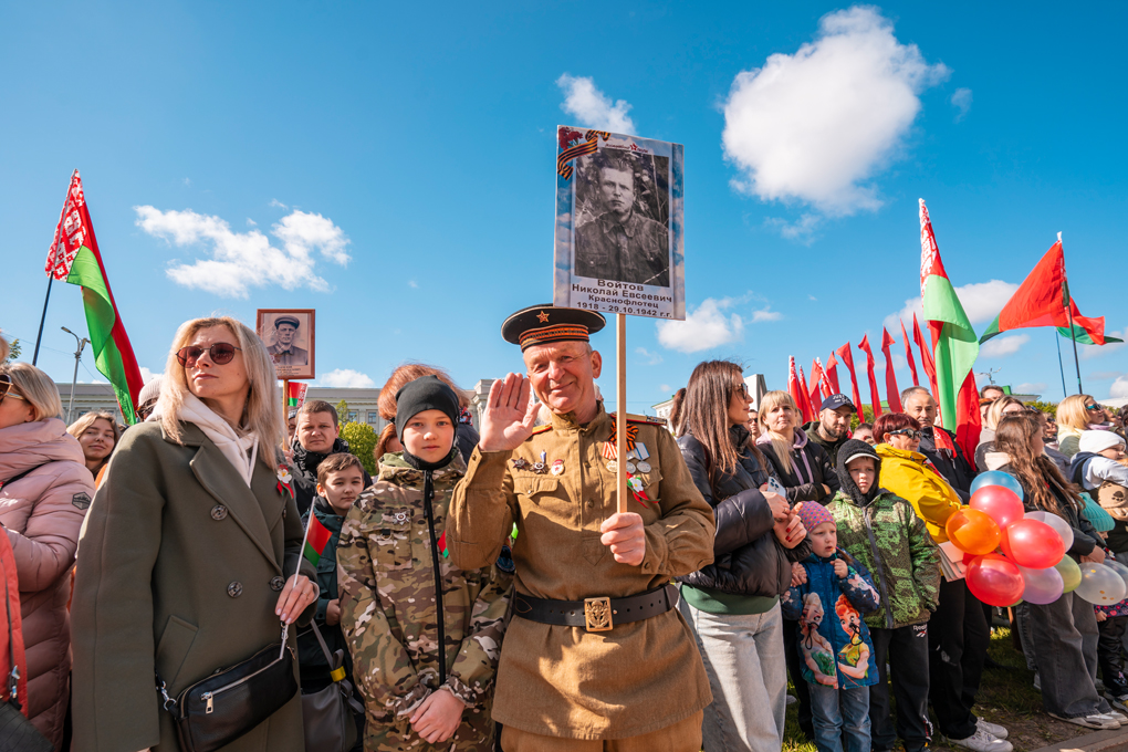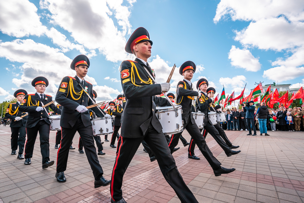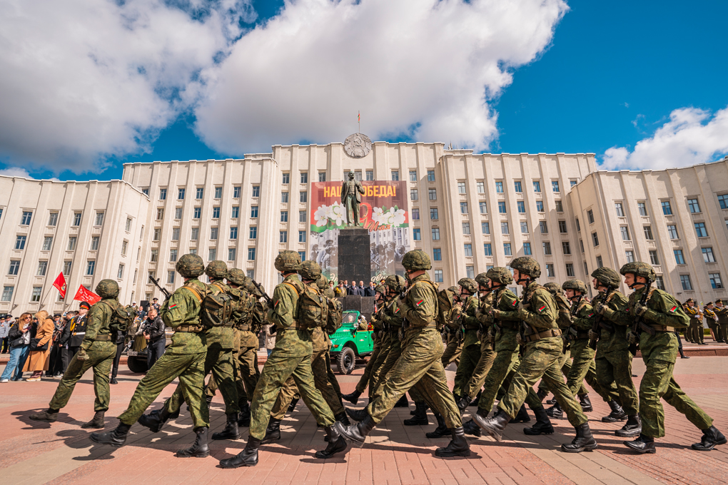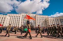 Праздник 9 Мая в городе на Днепре стартовал с парада наследников Великой Победы на площади Ленина. Здесь же состоялся торжественный марш воинских частей Могилевского гарнизона, демонстрирующий преемственность ратных традиций и готовность защищать родную землю.