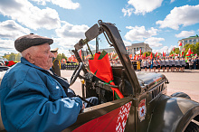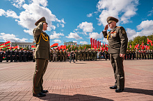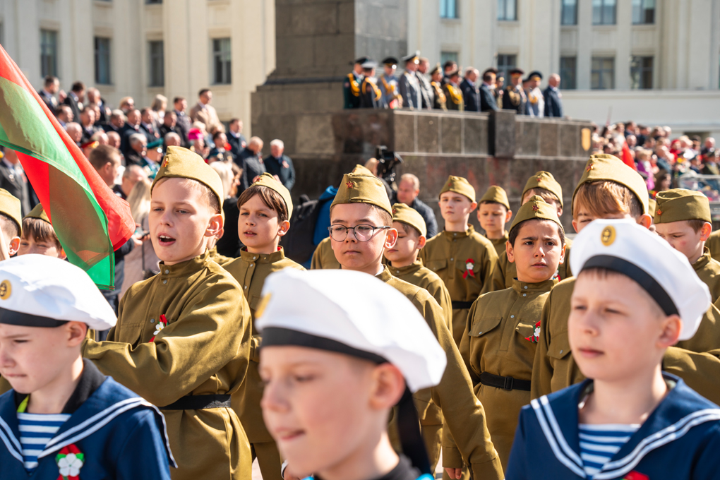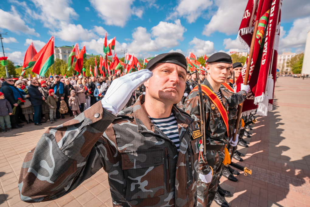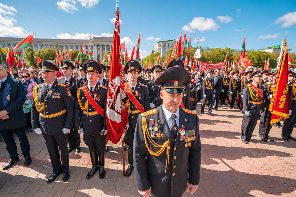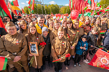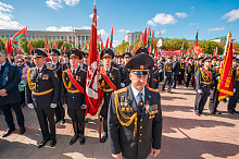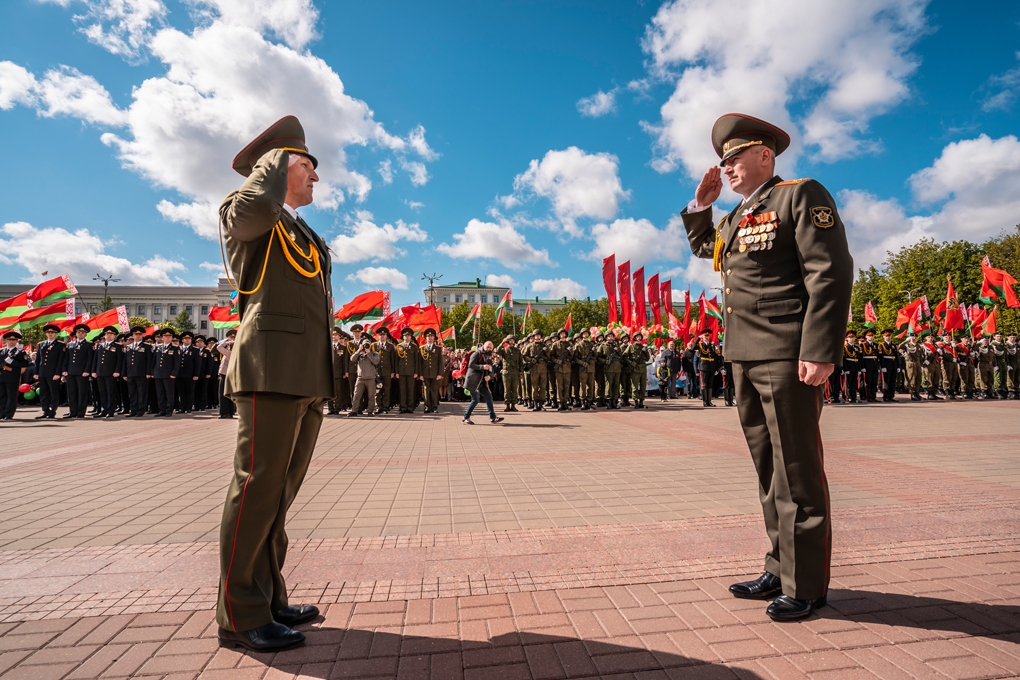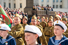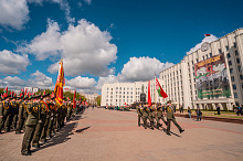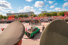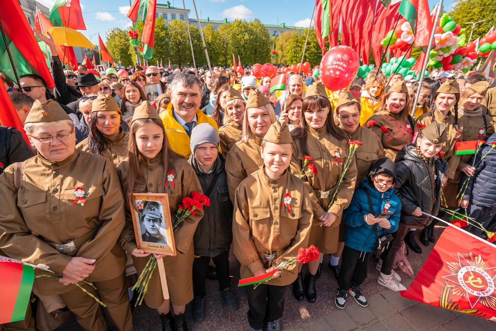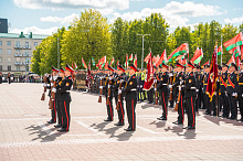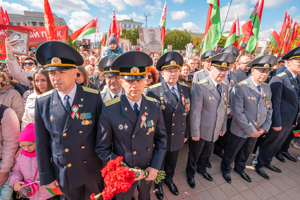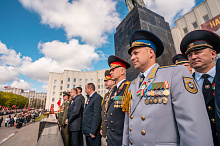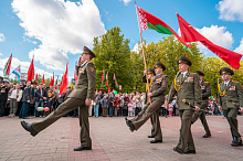 Праздник 9 Мая в городе на Днепре стартовал с парада наследников Великой Победы на площади Ленина. Здесь же состоялся торжественный марш воинских частей Могилевского гарнизона, демонстрирующий преемственность ратных традиций и готовность защищать родную землю.