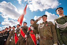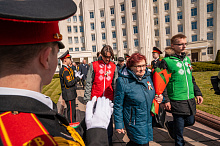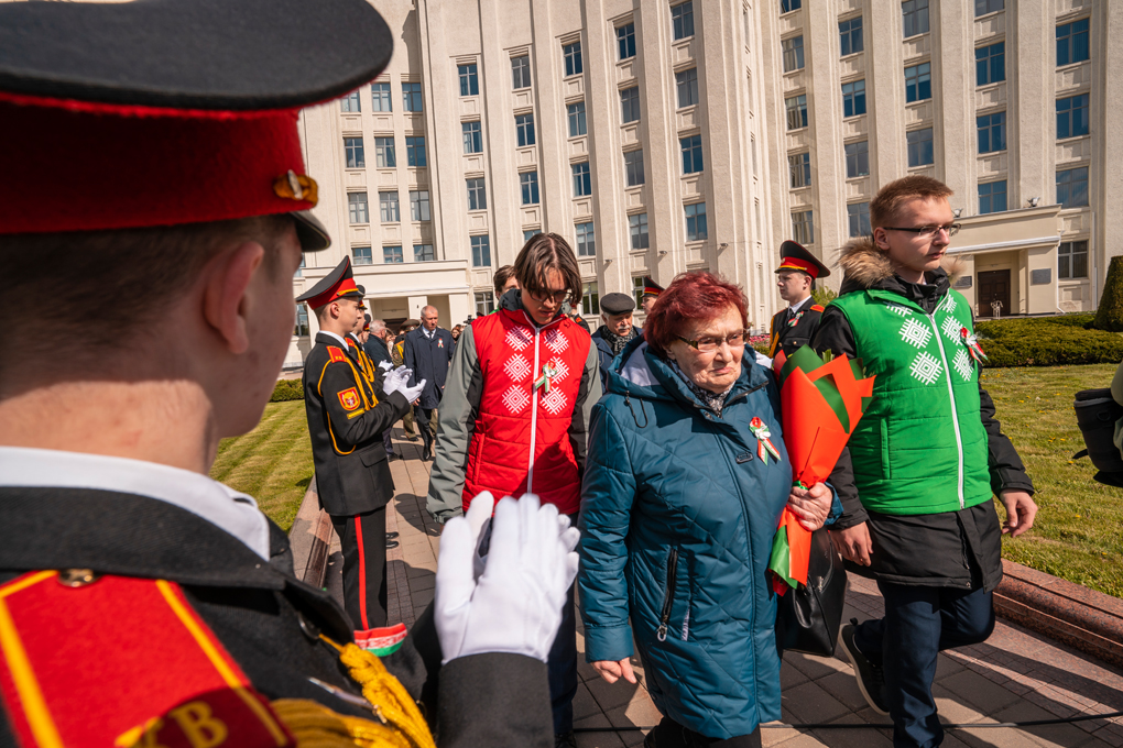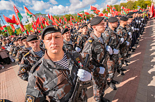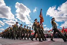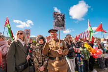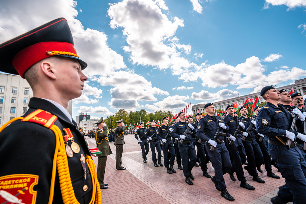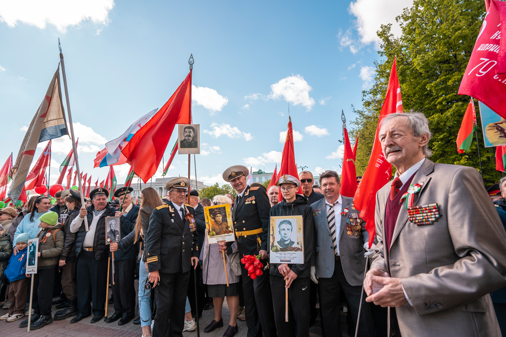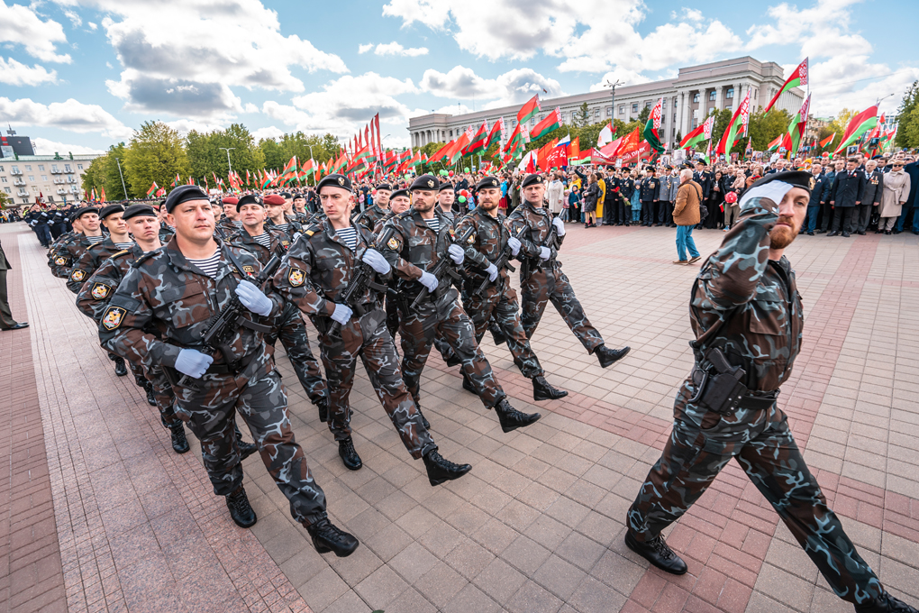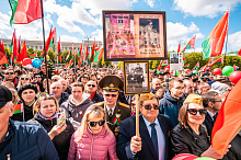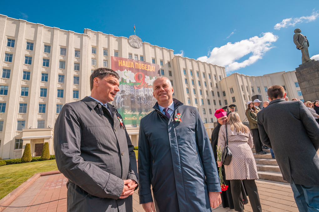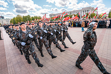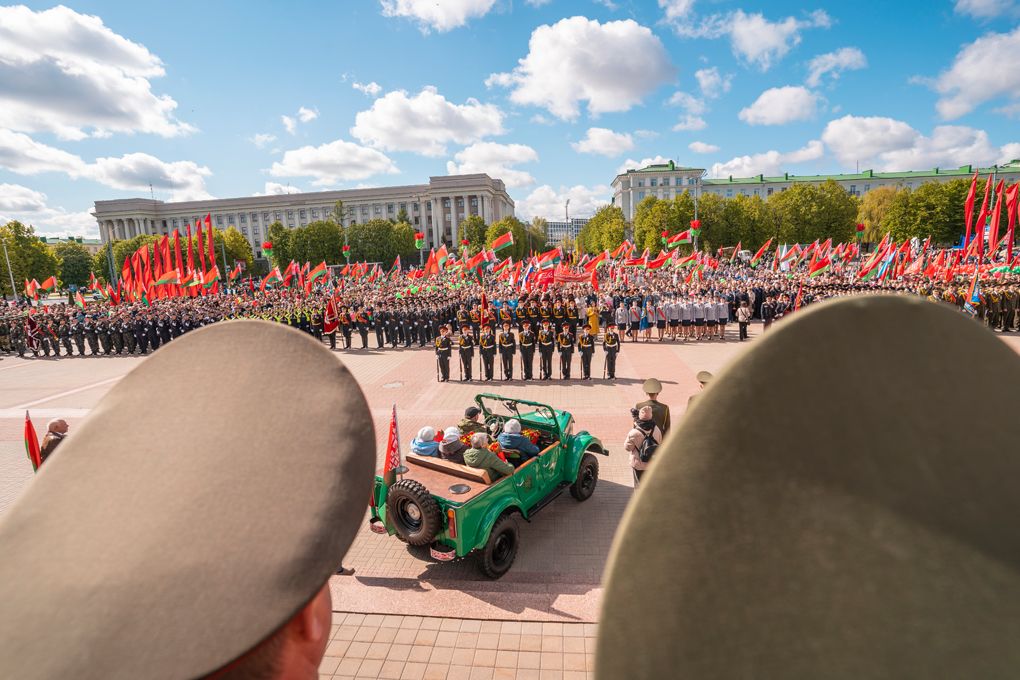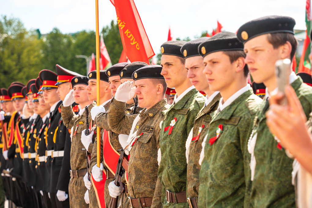 Праздник 9 Мая в городе на Днепре стартовал с парада наследников Великой Победы на площади Ленина. Здесь же состоялся торжественный марш воинских частей Могилевского гарнизона, демонстрирующий преемственность ратных традиций и готовность защищать родную землю.