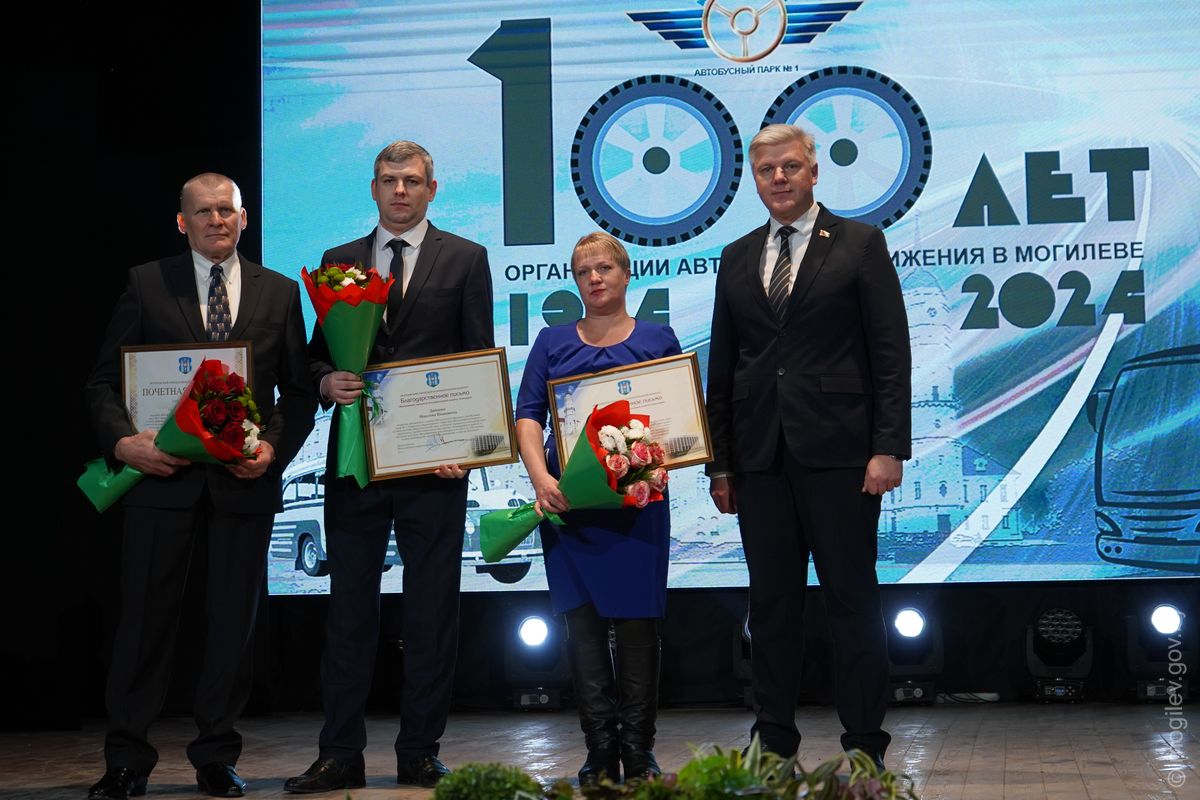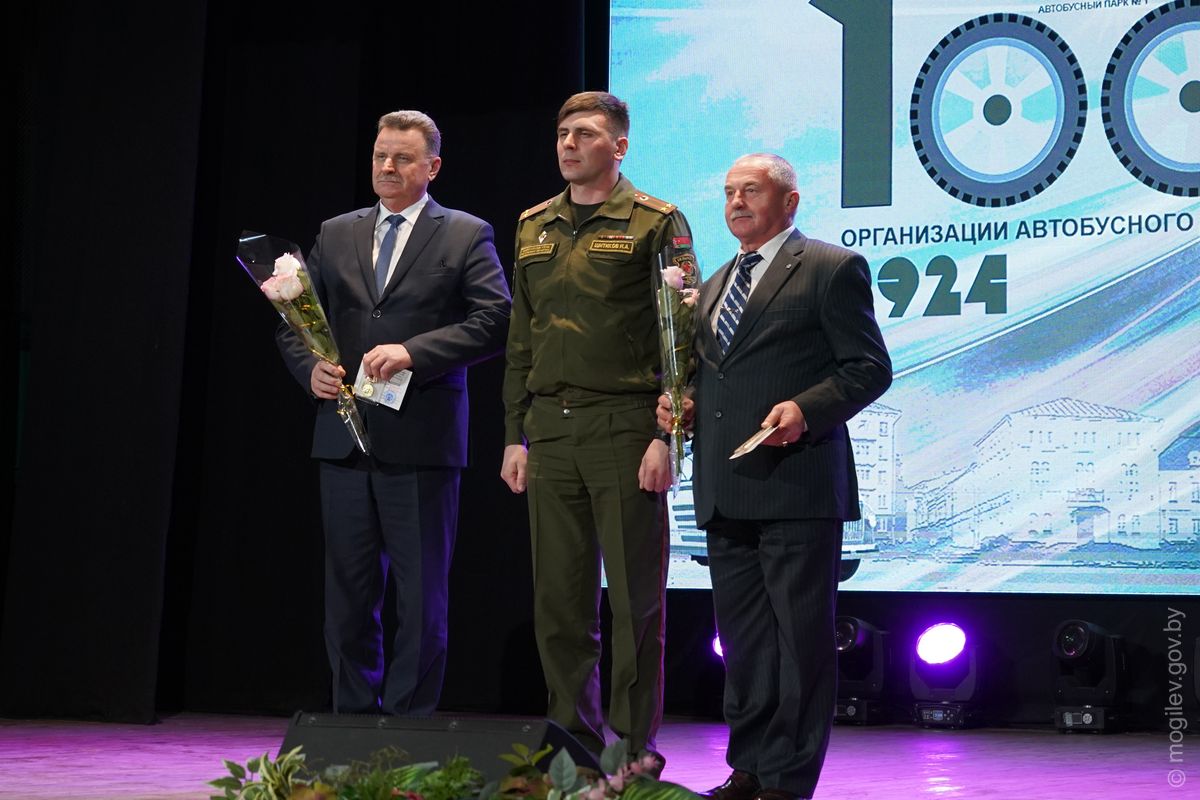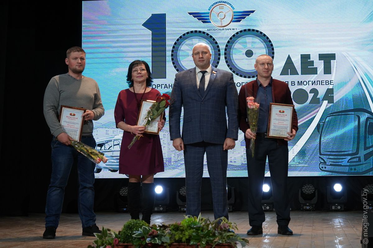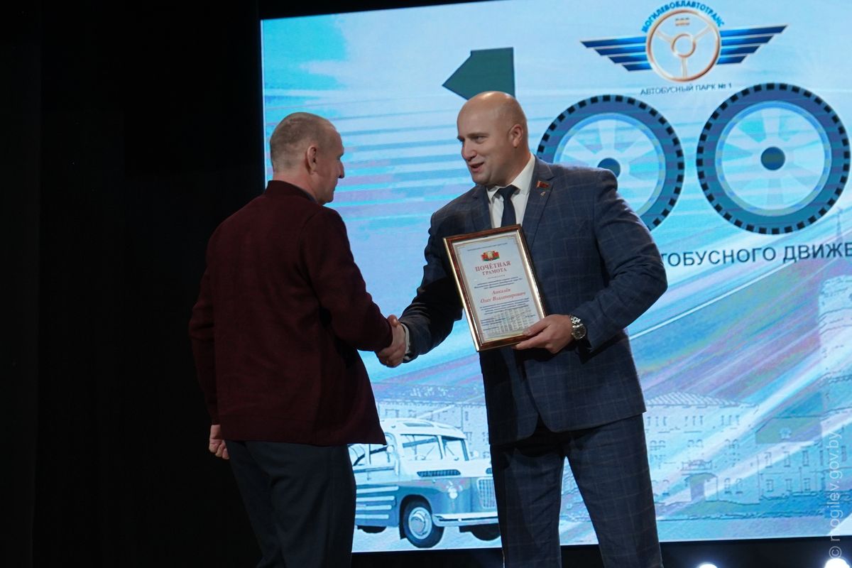Праздничное мероприятие, посвященное 100-летию организации автобусного движения в Могилеве, прошло в областном центре. С вековым юбилеем коллектив Автобусного парка №1 поздравили почетные гости, в числе которых – председатель Могилевского городского Совета депутатов Максим Гурин и первый заместитель председателя Могилевского горисполкома Игорь Бушлеков.
