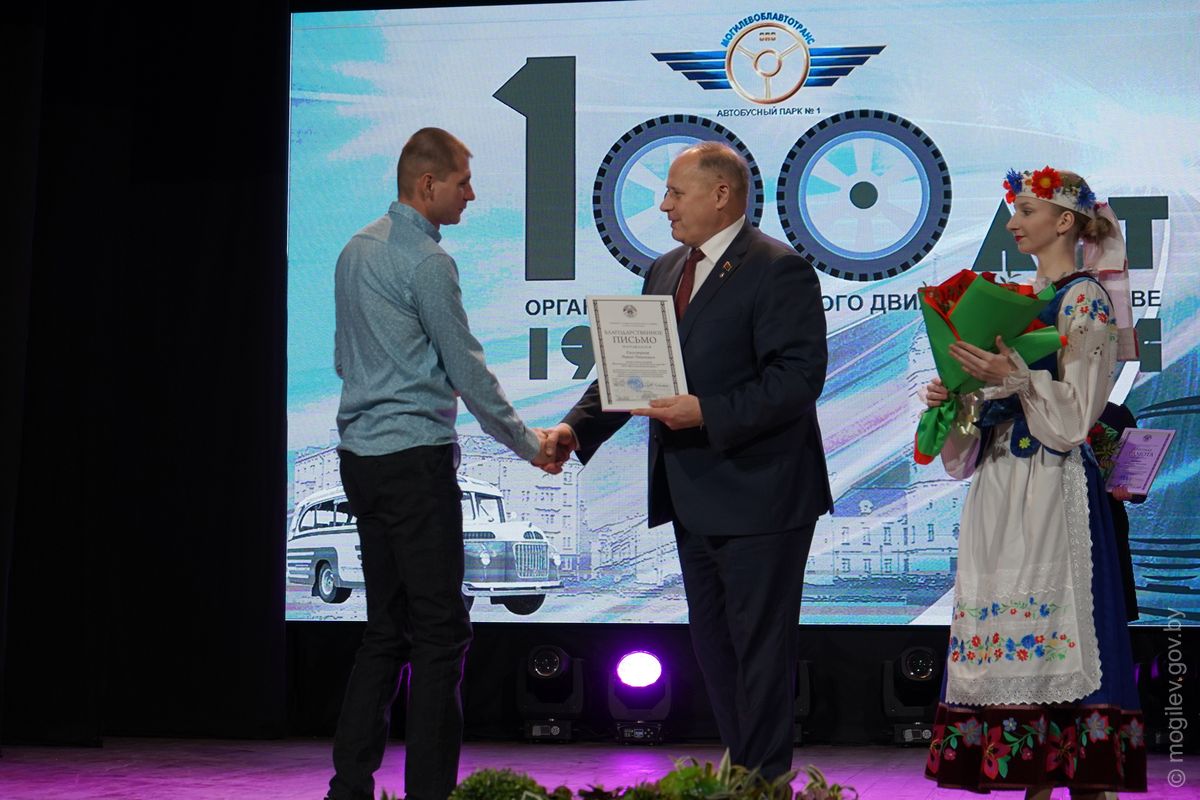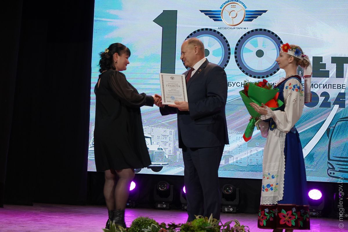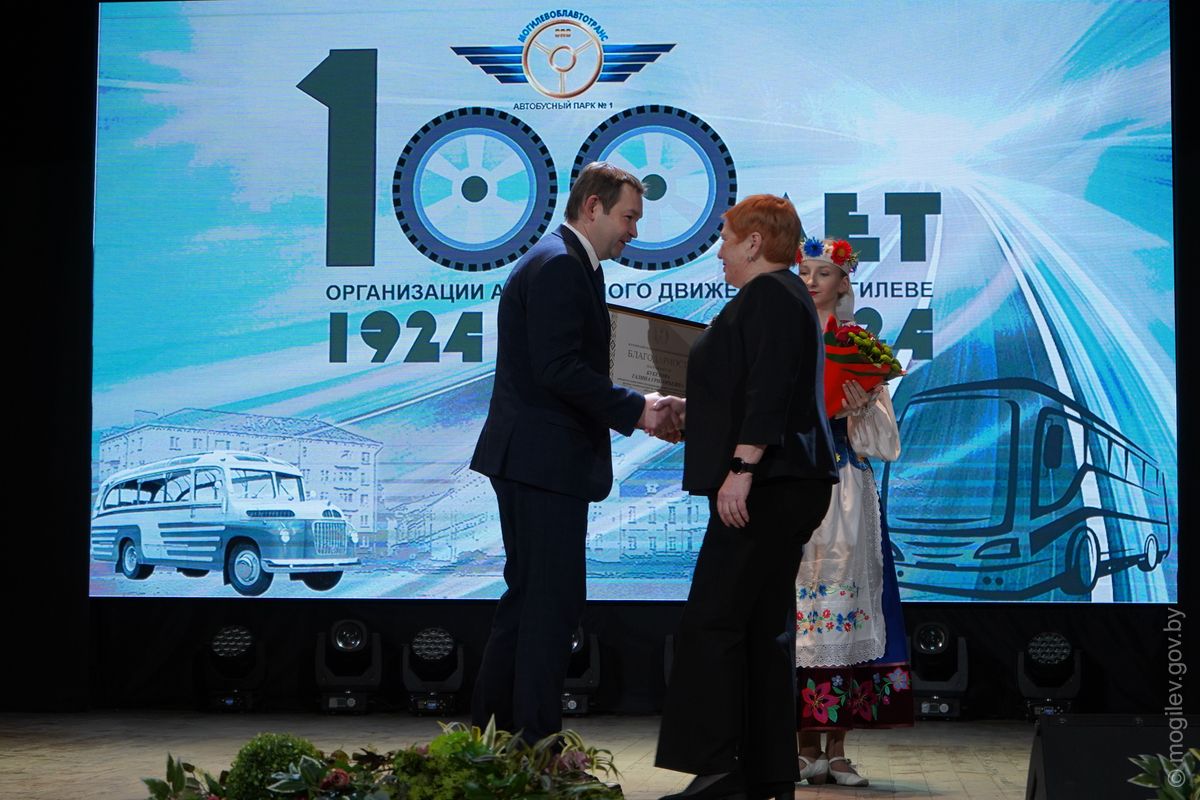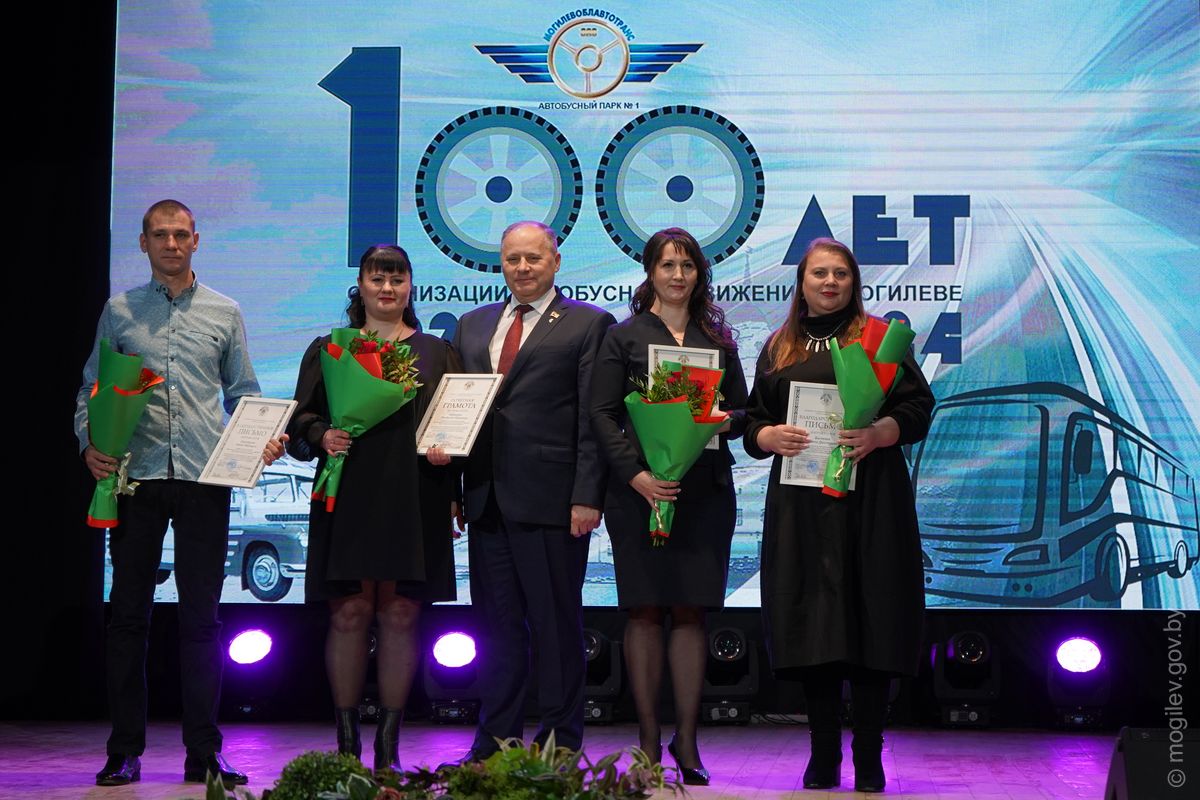 Праздничное мероприятие, посвященное 100-летию организации автобусного движения в Могилеве, прошло в областном центре. С вековым юбилеем коллектив Автобусного парка №1 поздравили почетные гости, в числе которых – председатель Могилевского городского Совета депутатов Максим Гурин и первый заместитель председателя Могилевского горисполкома Игорь Бушлеков.
