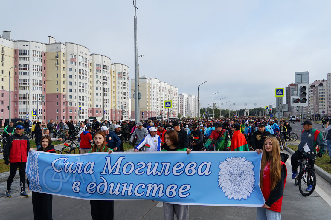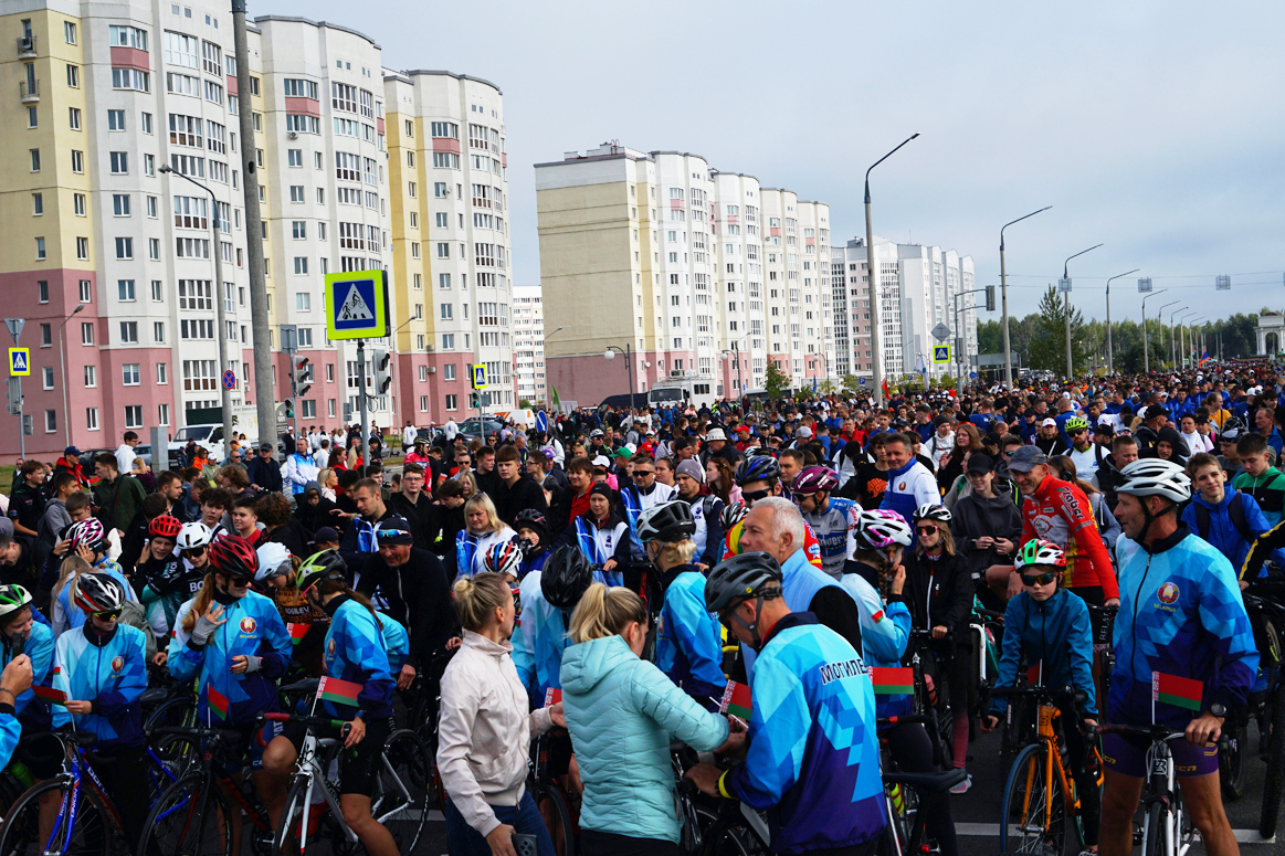 В Могилеве около 17 тыс. человек вышли сегодня на старт велопробега, посвященного Дню народного единства. Солнечным субботним утром на улицу Грюнвальдскую съехались велосипедисты из разных точек областного центра. Демонстрируя любовь к активному образу жизни и единство поколений, в одну колонну выстроились представители руководства области и города, трудовых коллективов, общественных объединений, учреждений образования, молодежь. Атмосфера была теплой и вдохновляющей – звучала музыка, развевались флаги, а участники обменивались улыбками и словами поддержки.