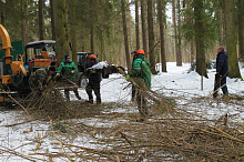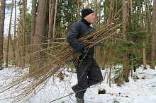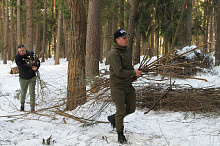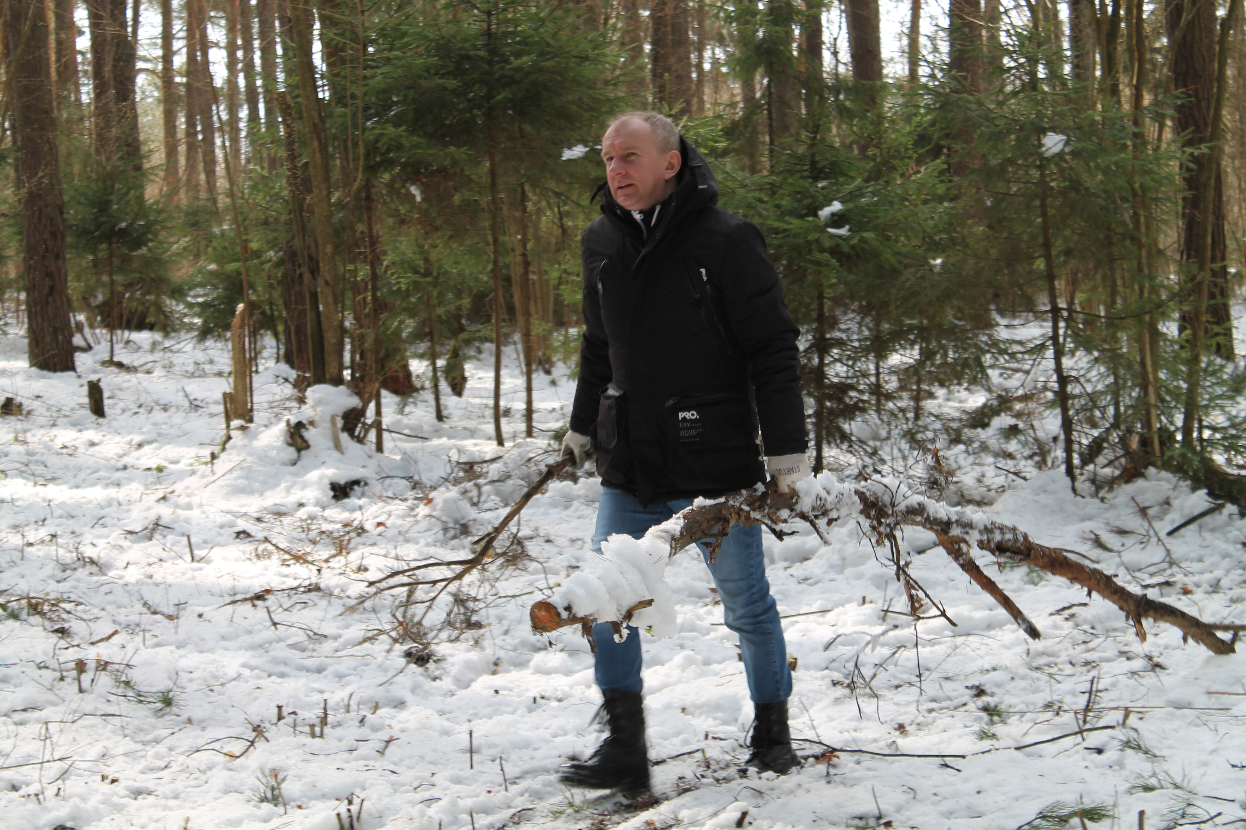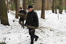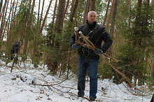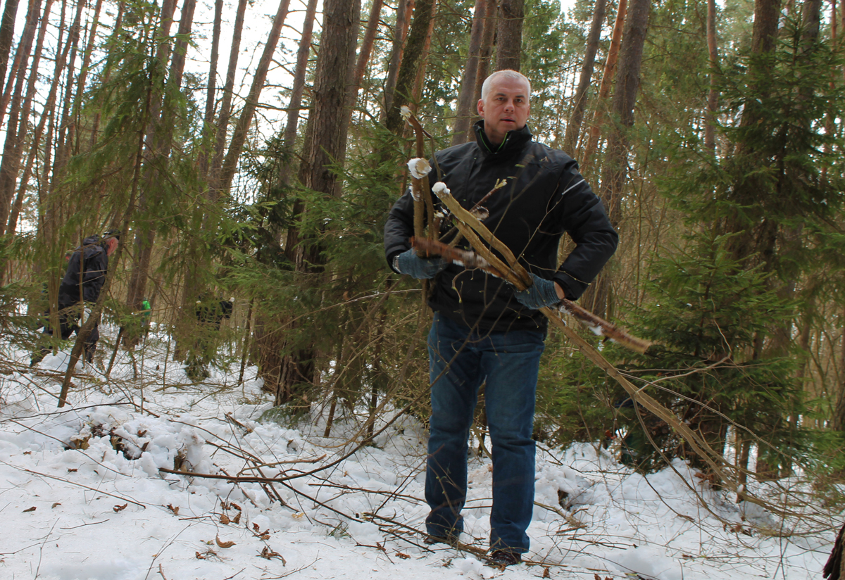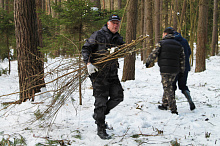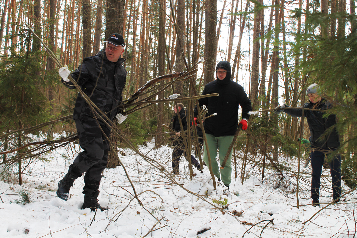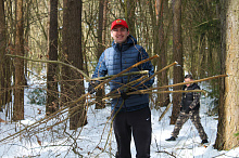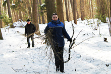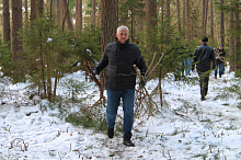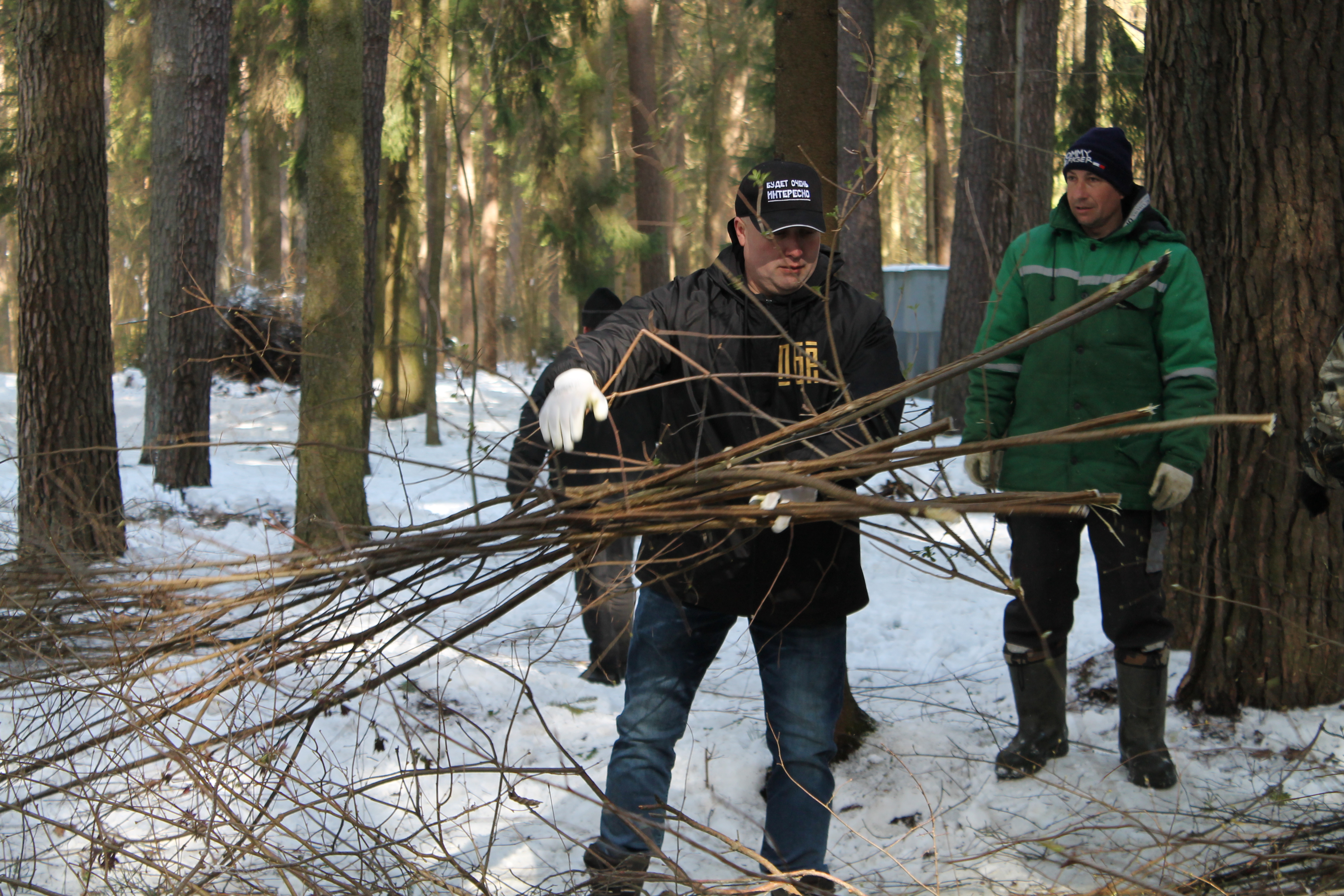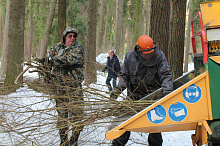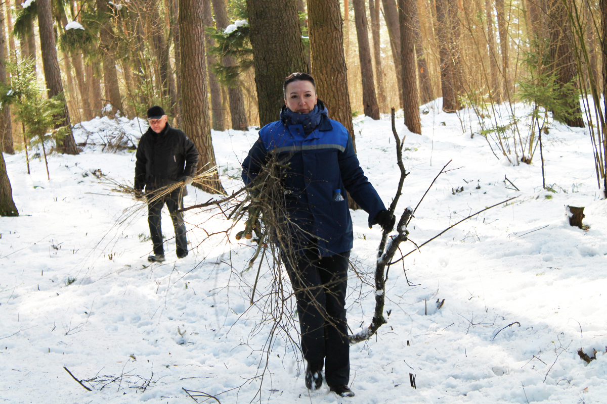 В областном центре с утра в субботу было около нуля градусов. Но снег на улицах не отменил республиканский субботник. На мемориальном комплексе «Землянка», расположенном в лесу у шоссе Могилев – Чаусы, высадился трудовой десант во главе с председателем горисполкома Сергеем Чертковым. Вместе с мэром трудились председатель Могилевского горсовета депутатов Максим Гурин, первый заместитель председателя горисполкома Игорь Бушлеков, заместитель председателя Анатолий Якубенко, представители трудовых коллективов, работники предприятия «Могилевзеленстрой», молодежь. Собралась преимущественно мужская компания, ведь накануне кронировали деревья и предстояло убирать спиленные ветки – работа не из легких. Древесину прямо на месте перерабатывали на щепу.