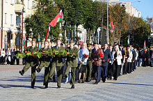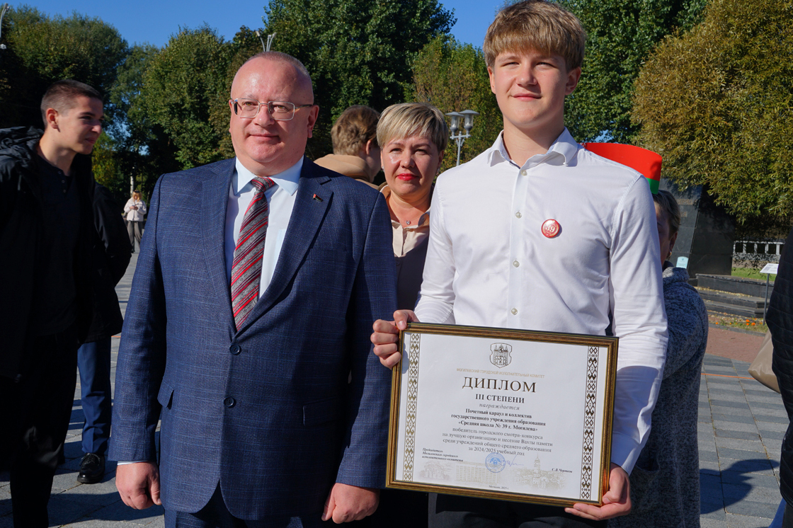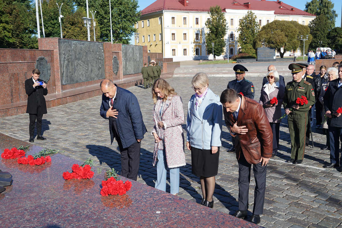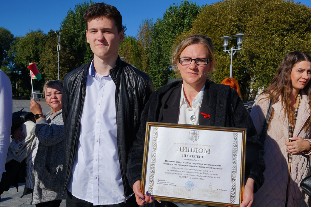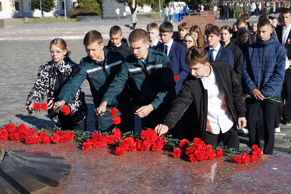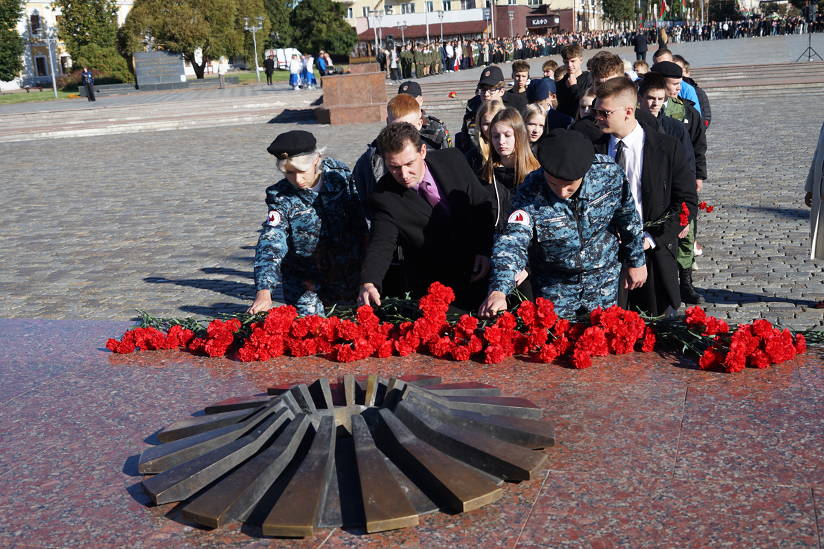 Торжественное мероприятие, посвященное открытию городской Вахты Памяти, прошло на площади Славы в Могилеве. Участие в митинге приняли представители власти и идеологического актива города, силовых структур, общественности, ветеранских организаций, учреждений образования, молодежь. Они возложили цветы к Вечному огню и почтили минутой молчания память погибших воинов, партизан и подпольщиков, которые обороняли и освобождали город на Днепре. Здесь также состоялось традиционное подведение итогов городского смотра-конкурса на лучшую организацию и несение Вахты Памяти за 2024-2025 учебный год.