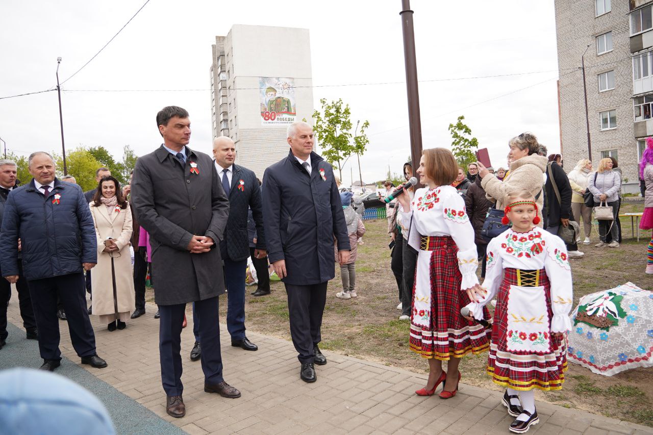 Открытие площадки стало настоящим праздником не только для жителей микрозоны, но и всего района: школы и предприятия организовали здесь тематические площадки - все в единой тематике, ведь праздник приурочили к 80-летию Великой Победы.