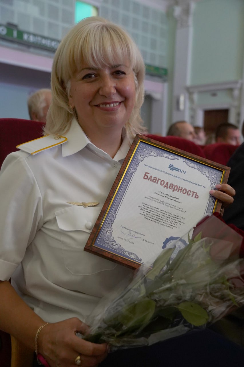 Накануне профессионального праздника труженики стальной магистрали Могилевщины получали нагрудные знаки отличия, почетные грамоты и благодарственные письма от руководства Белорусской железной дороги, области и города, администрации Ленинского района и депутатского корпуса. Приятным продолжением торжественного мероприятия стал концерт солистов, творческих коллективов региона и заслуженной артистки Беларуси Алены Ланской.