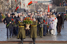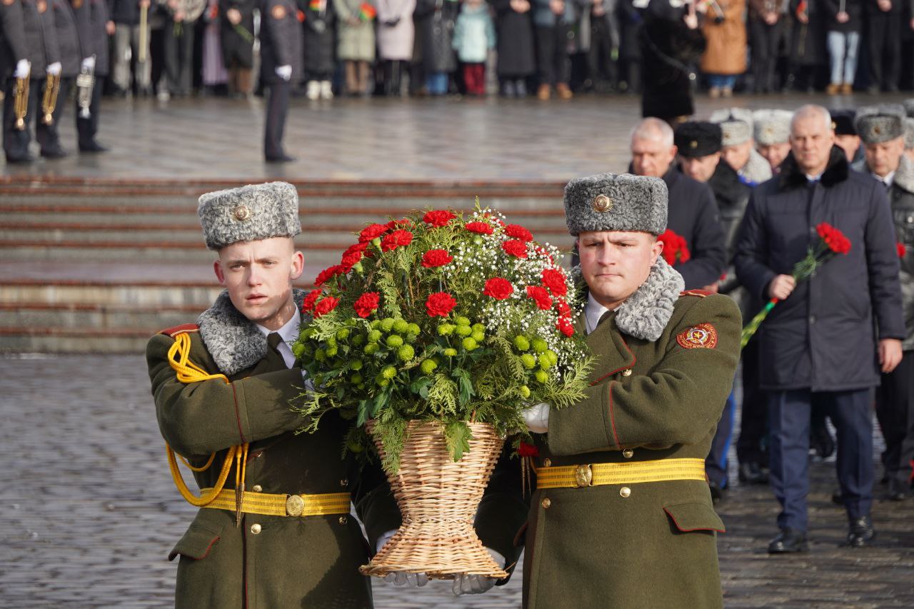 В Могилеве прошли торжественные мероприятия, приуроченные ко Дню защитников Отечества и Вооруженных Сил Республики Беларусь. Центром притяжения для тысяч горожан традиционно стала площадь Славы, где состоялась церемония возложения цветов и венков к мемориальному комплексу. В этот день у подножия монумента собрались представители областной и городской вертикали власти, депутатского корпуса, силовых структур. Затем в областной филармонии прозвучали слова благодарности в адрес тех, кто ежедневно и не понаслышке знает, что значит быть защитниками Отечества.