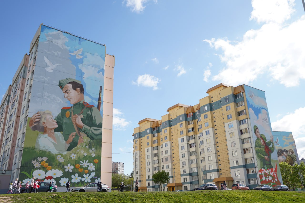 Серия муралов по случаю 80-ой годовщины Великой Победы появилась в Могилеве. Монументальные произведения искусства украсили фасады домов №77, №79, №81, №83 по улице Мовчанского. Сюжеты арт-объектов воспевают героизм и мужество нашего народа в годы войны.