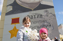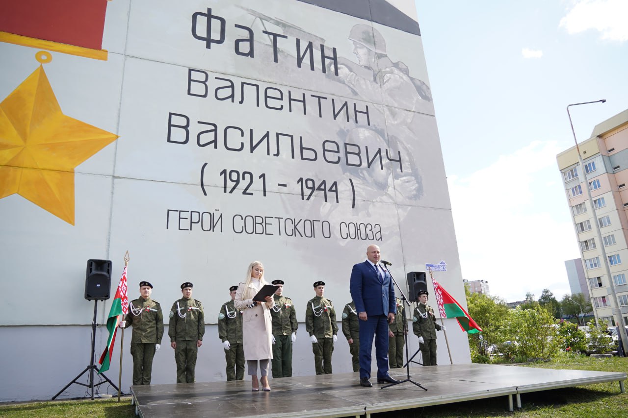 Основная фигура одного из изображений - Герой Советского Союза, капитан Валентин Васильевич Фатин. Три других мурала - о счастливых эпизодах Великой Победы.