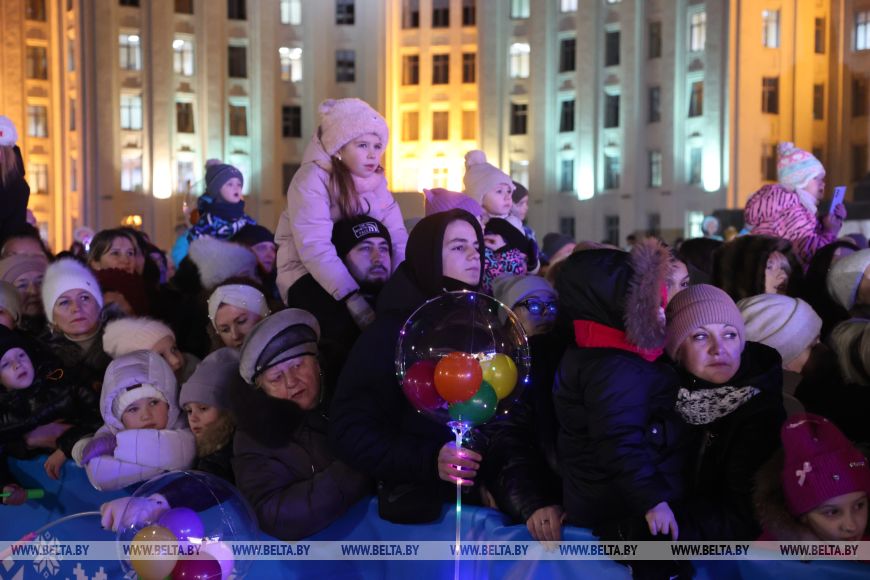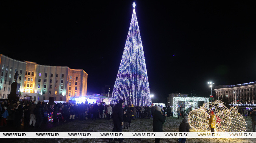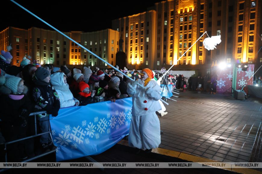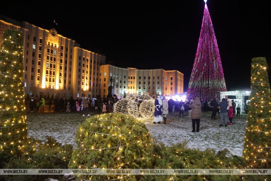 В Могилеве на площади Ленина дали старт новогодним праздникам: здесь состоялась церемония зажжения огней на главной новогодней елке области.