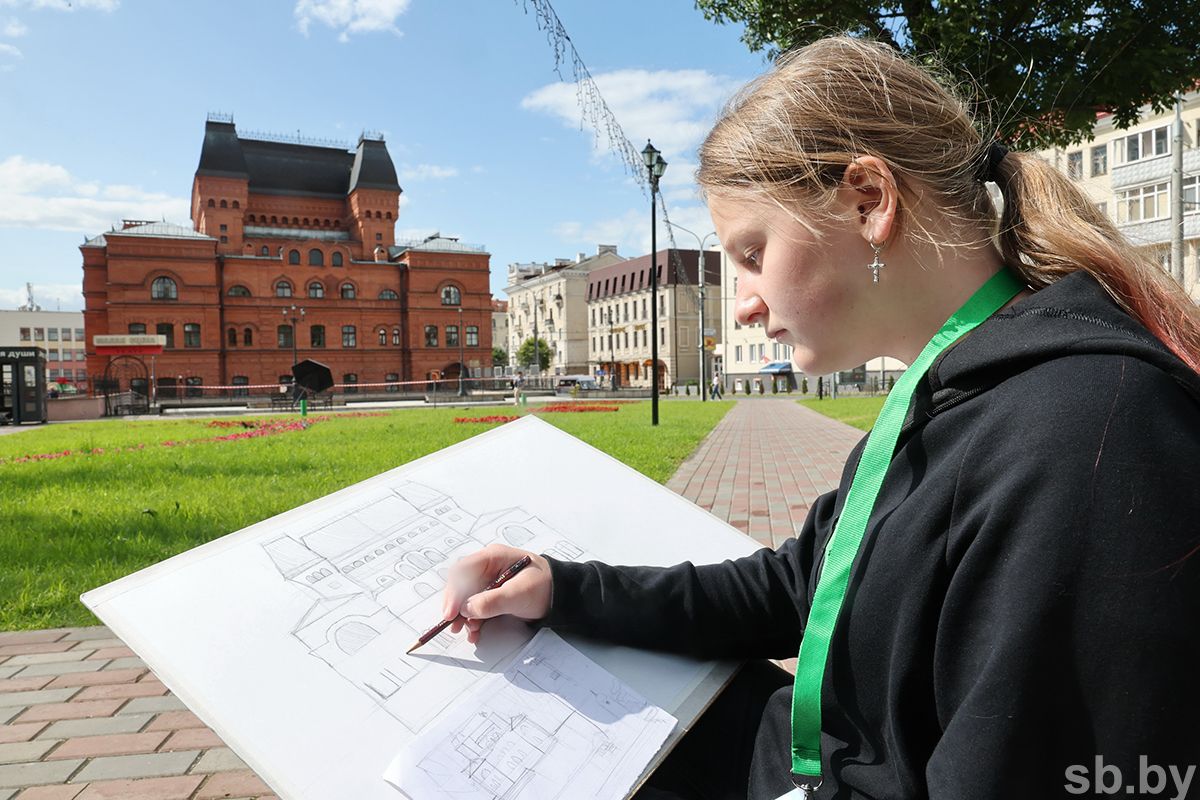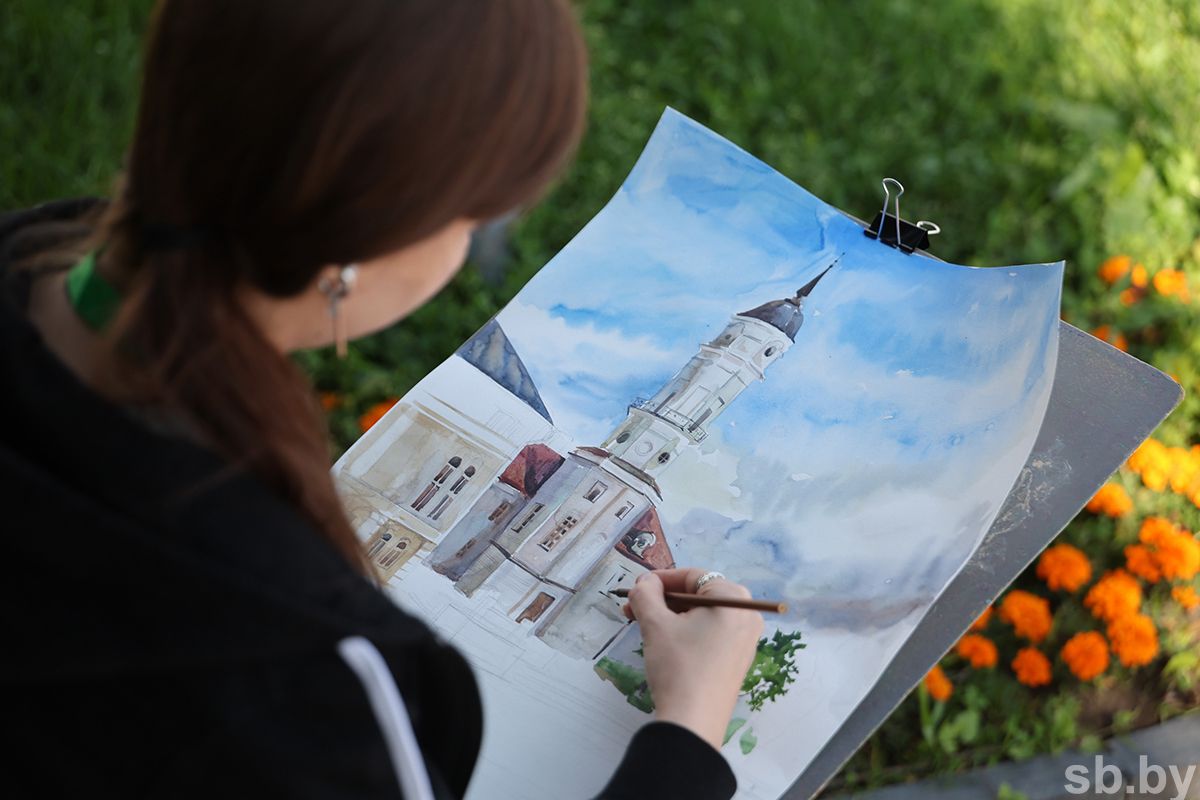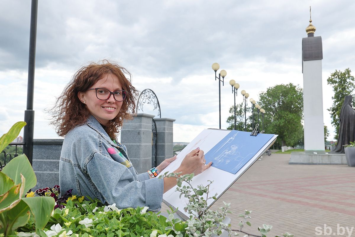 – Природа и архитектура – именно то, что я люблю рисовать, то, что цепляет! – заводит разговор София. – Сейчас рисую здание могилевского монастыря: много углов, перспектив – есть где разгуляться. Могилев вообще удивительный. Я его представляла обычным: стандартные дома и магазины. А он оказался другим – интересным и разным! С удовольствием прогулялась по центру и все рассмотрела.
