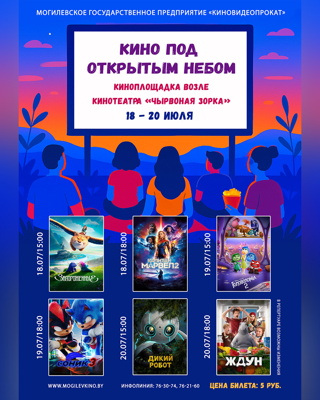 С 18 по 20 июля Могилевское государственное предприятие «Киновидеопрокат» приглашает на кинопоказы «Кино под открытым небом» у кинотеатра «Чырвоная Зорка».