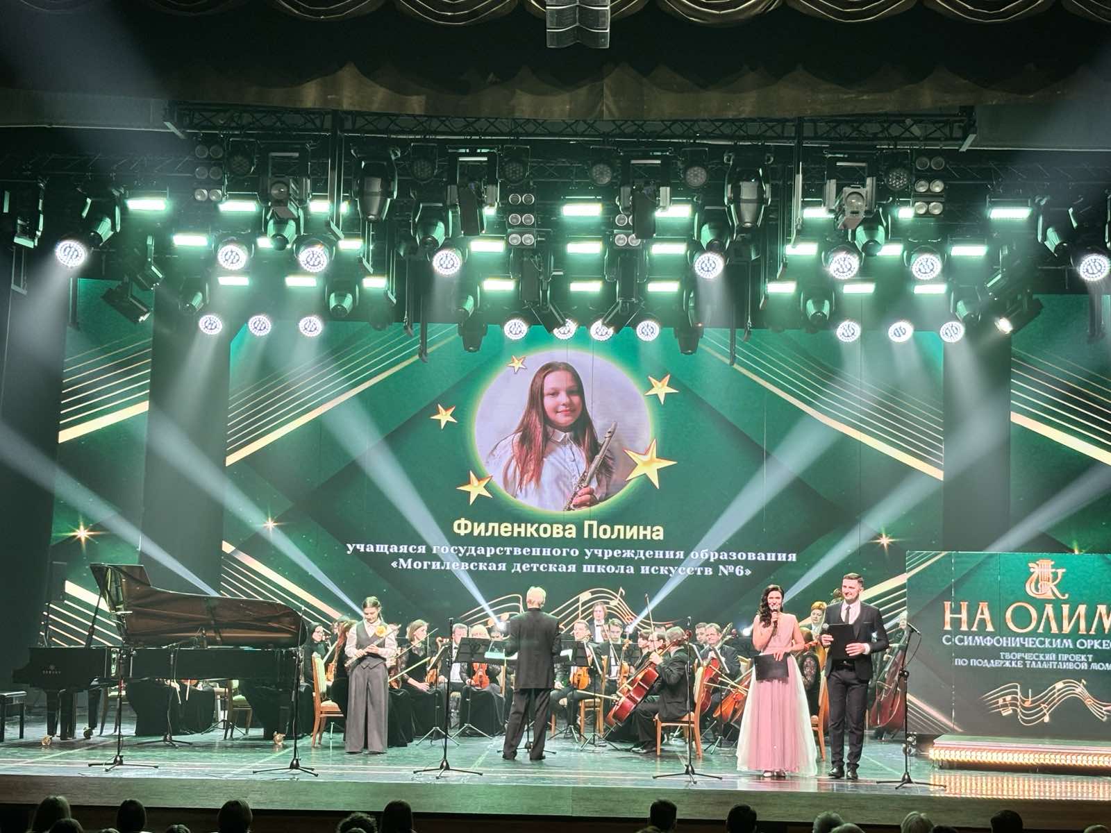 14 января состоялся Гала-концерт в рамках творческого проекта «На Олимп с симфоническим оркестром» в зале учреждения культуры «Могилевский областной методический центр народного творчества и культурно-просветительской работы», на сцене которого выступили 22 юных могилевчанина – лауреата международных конкурсов и стипендиаты президентского фонда.
